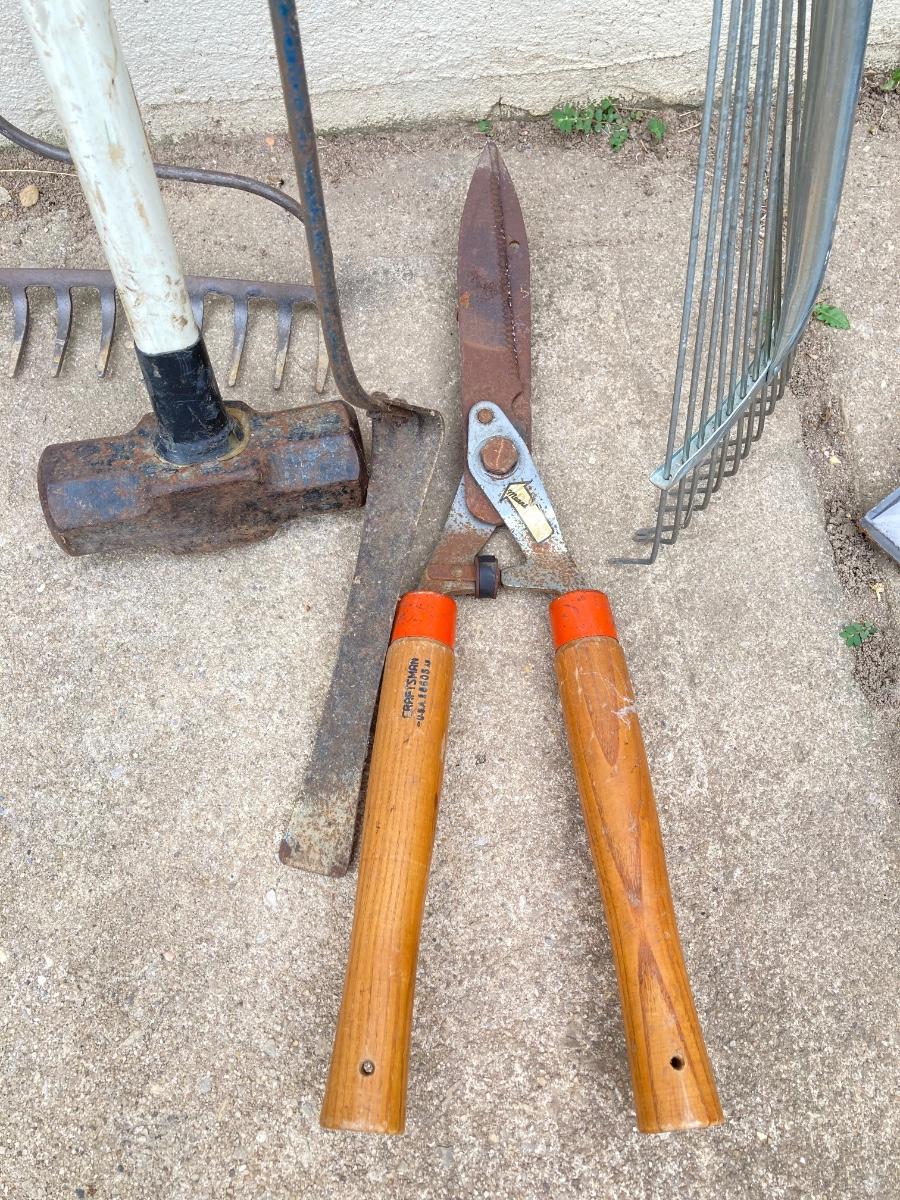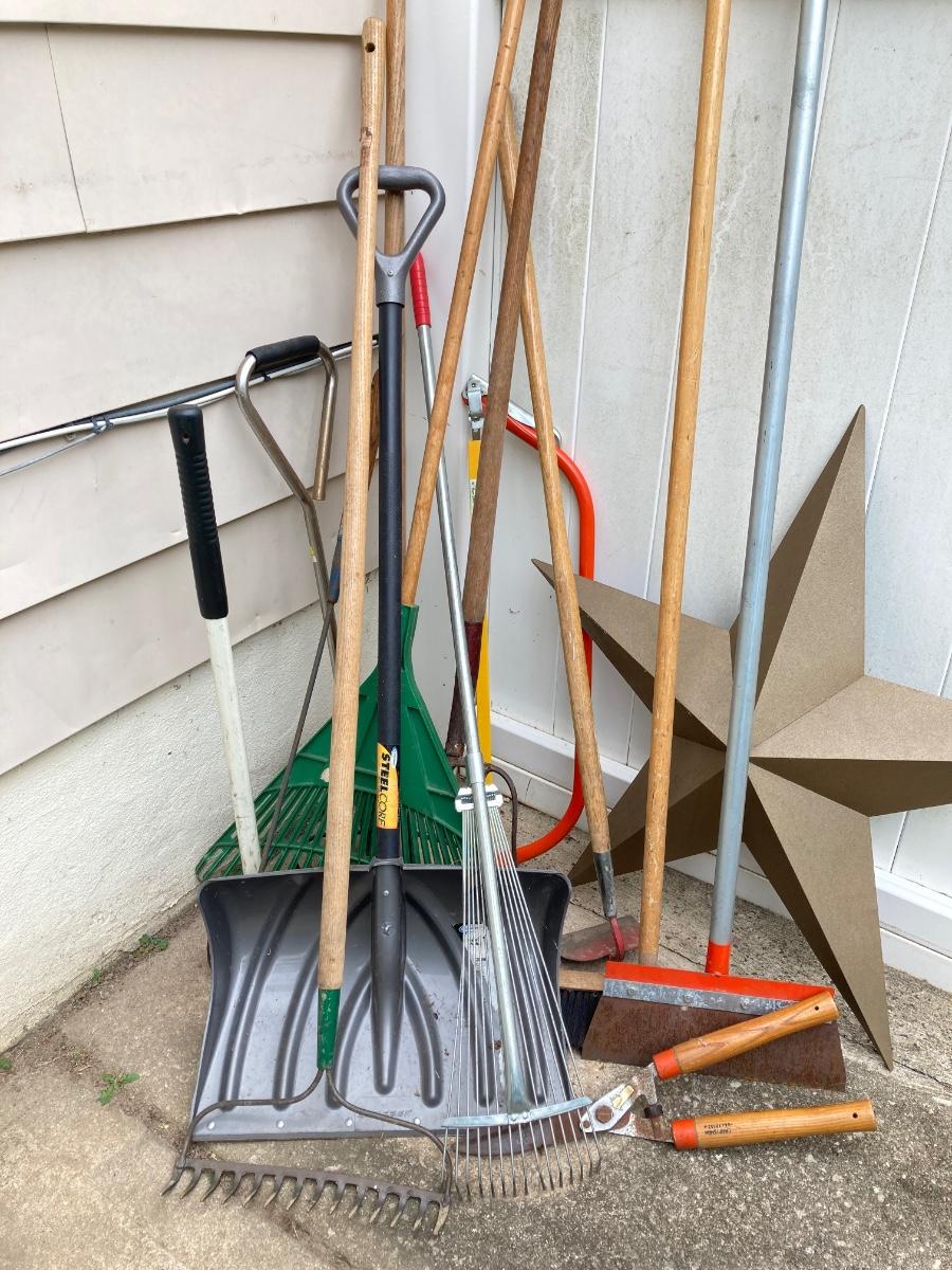 LOT 30G: Rustic Barn Decorative Star, Outdoor Yard Tools and More