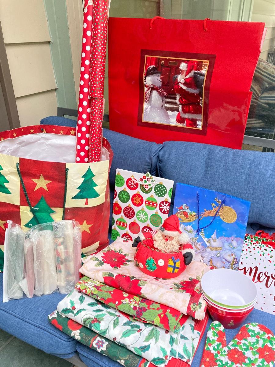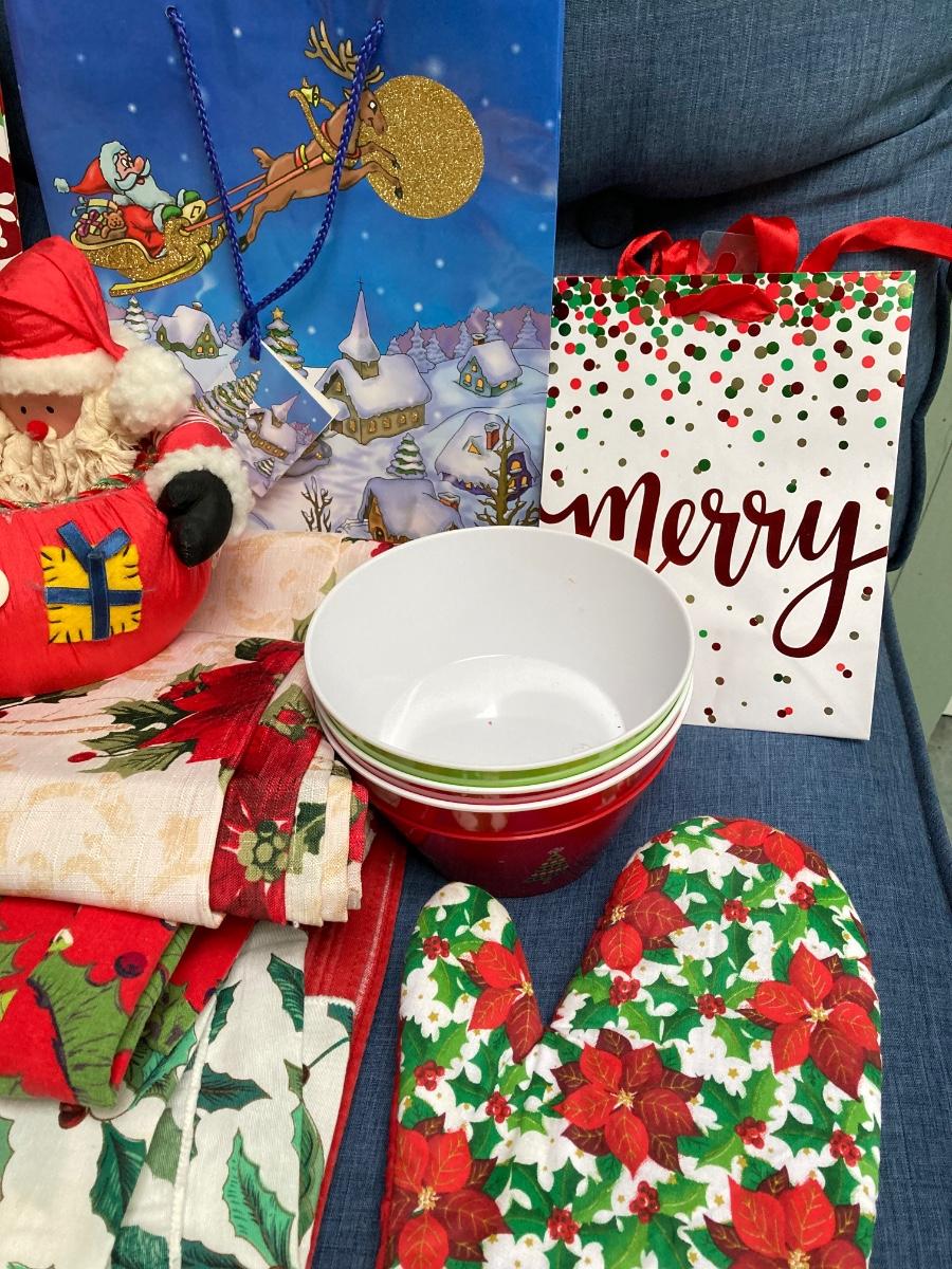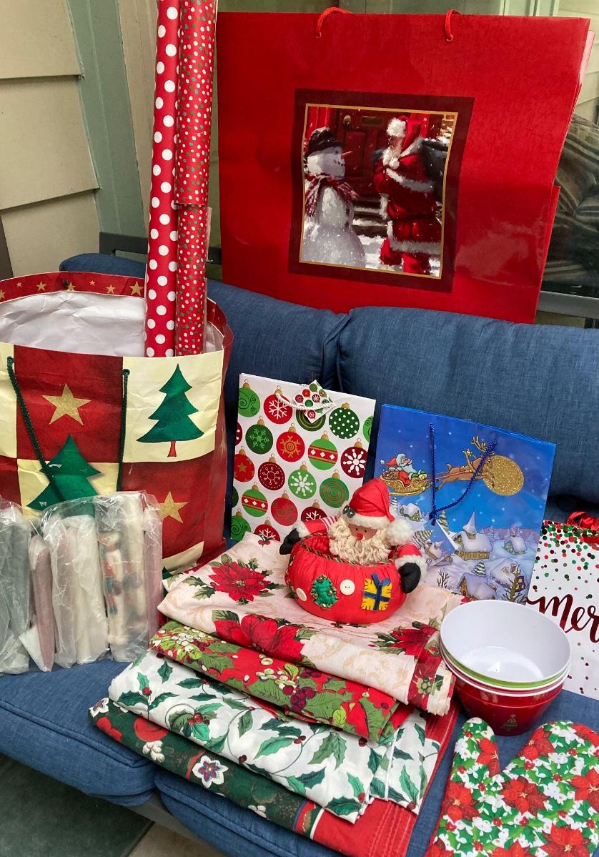 LOT 67P: Christmas Table Cloths, Gift Bags and More