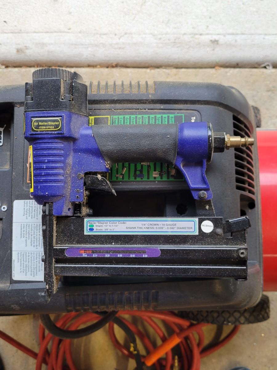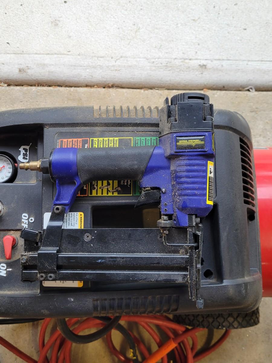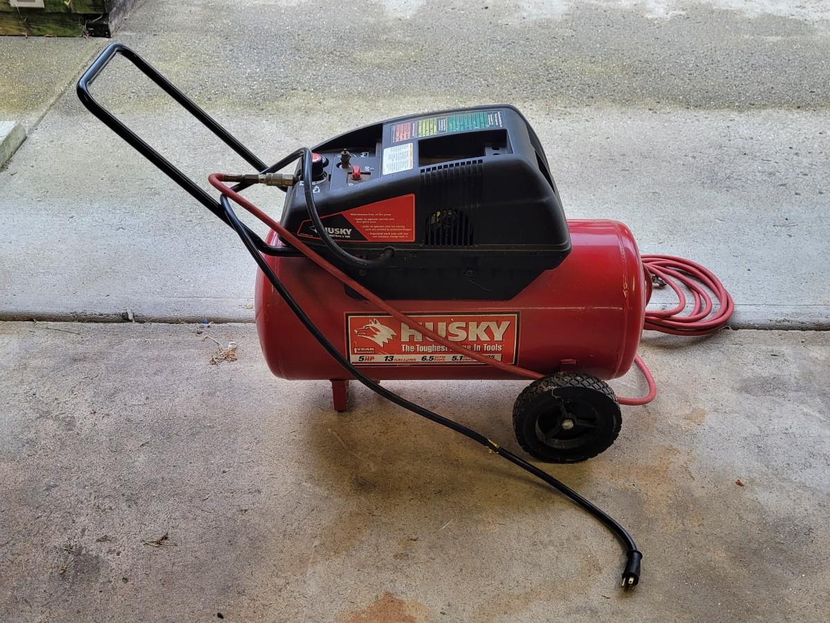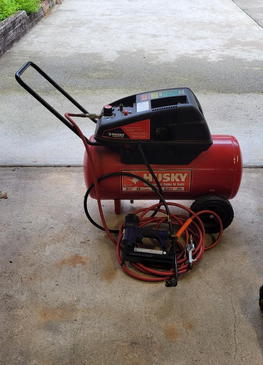 LOT 109G: Husky Air Compressor with Nailer & Nozzle