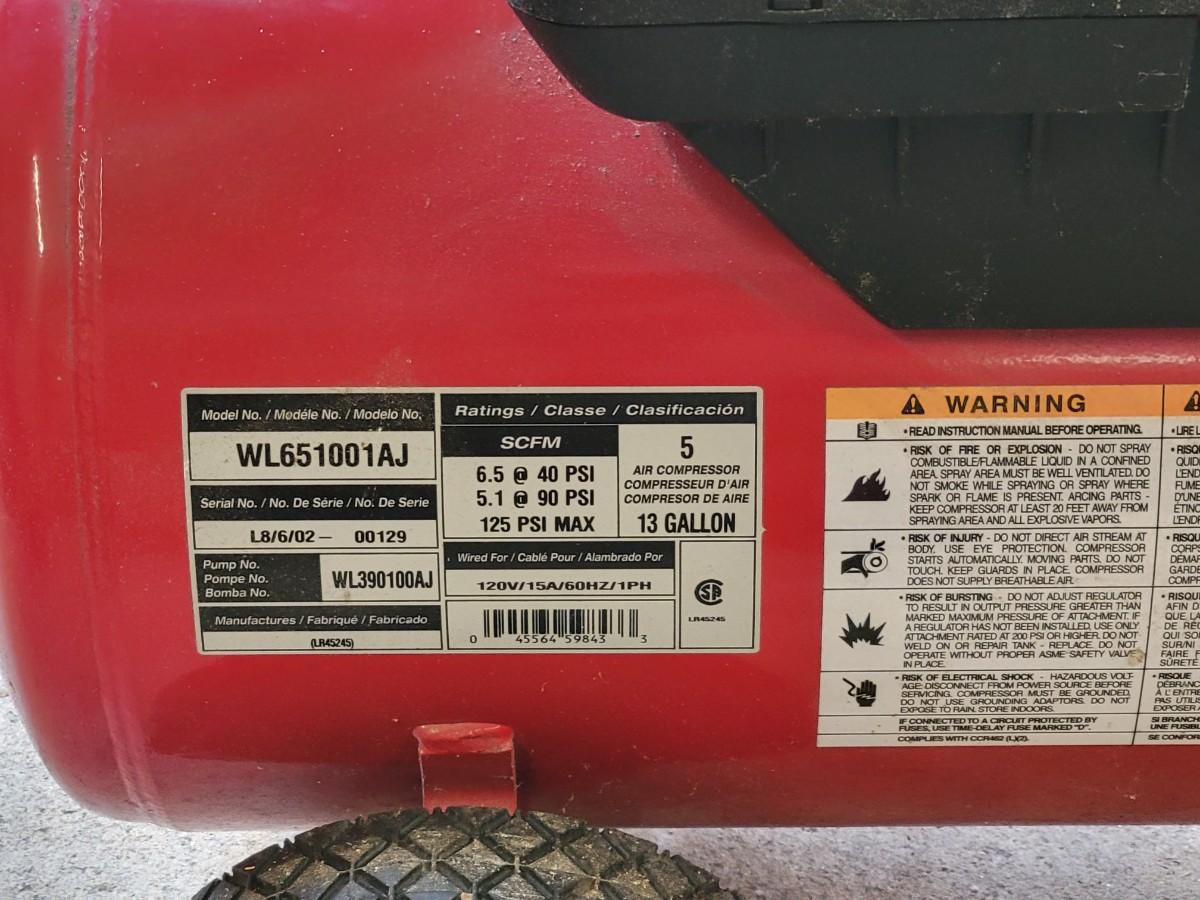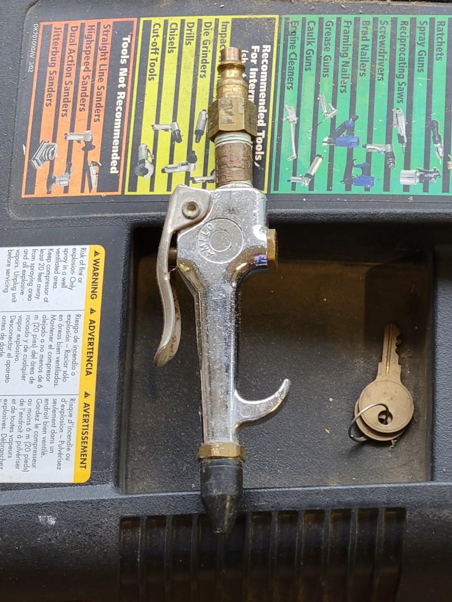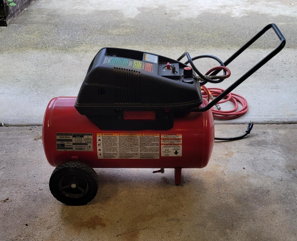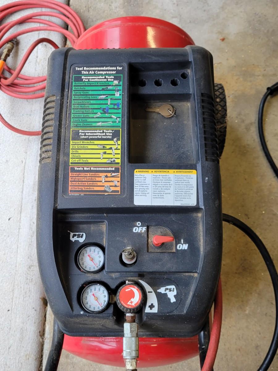 LOT 109G: Husky Air Compressor with Nailer & Nozzle