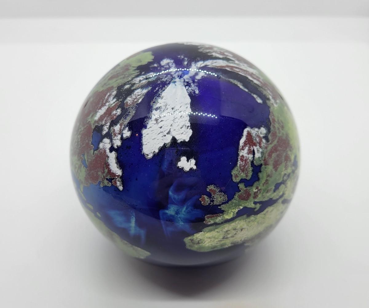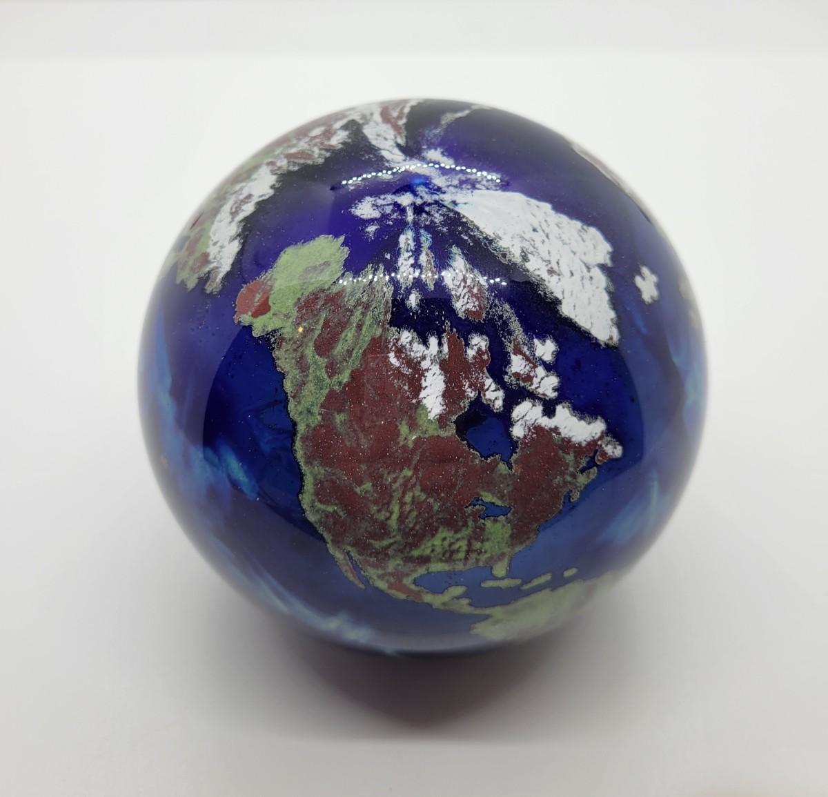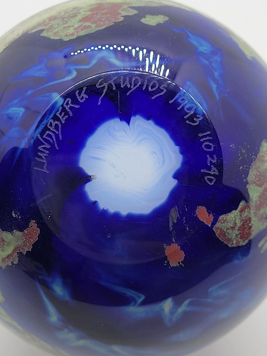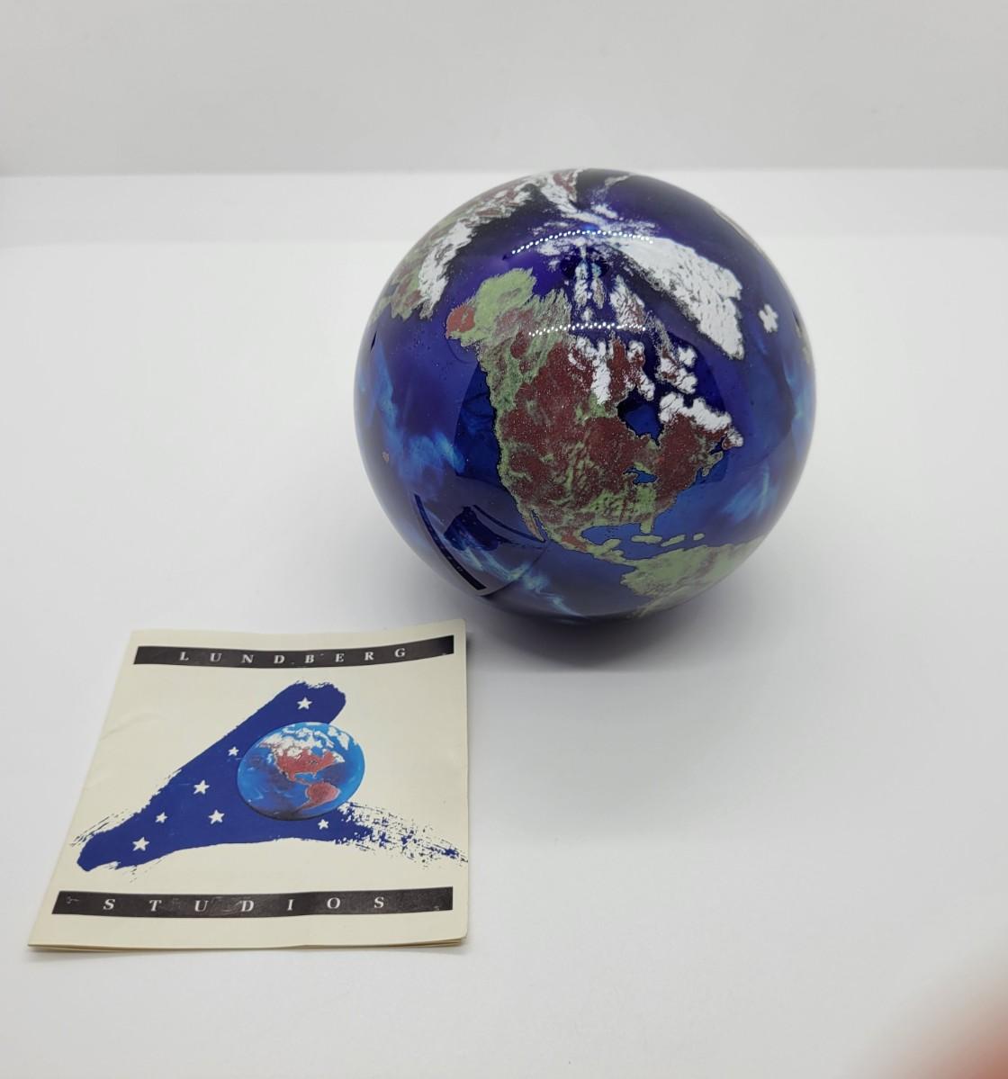 LOT 138L: Lunderberg Studios 1993 "World Globe" Glass Paperweight