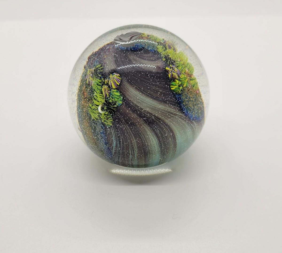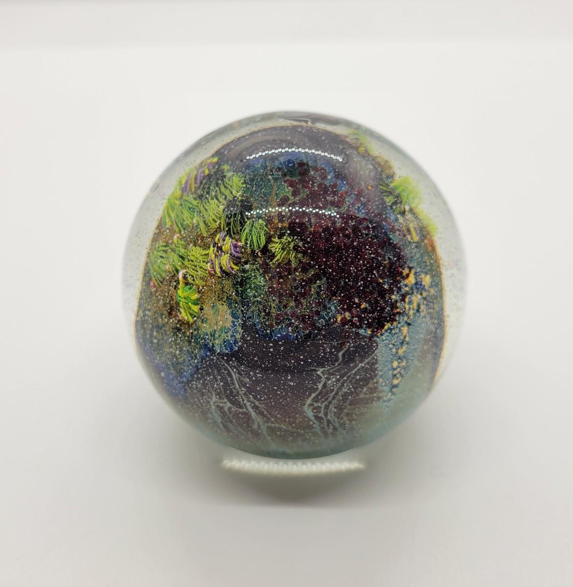 LOT 139L: Josh Simpson "Possibly Inhabited Planet" 1990 Signed Glass Paperweight