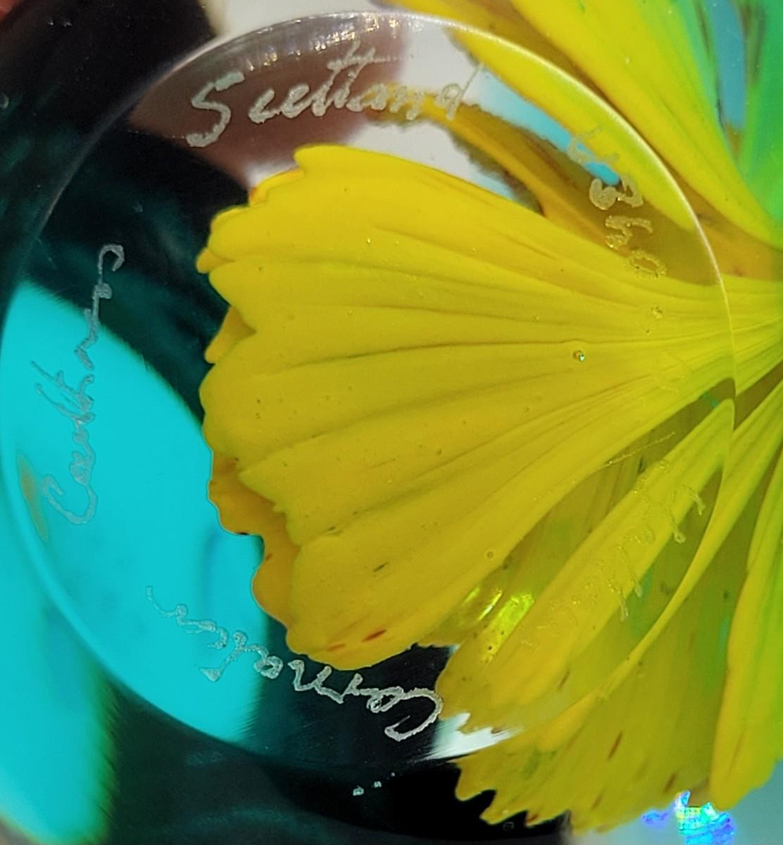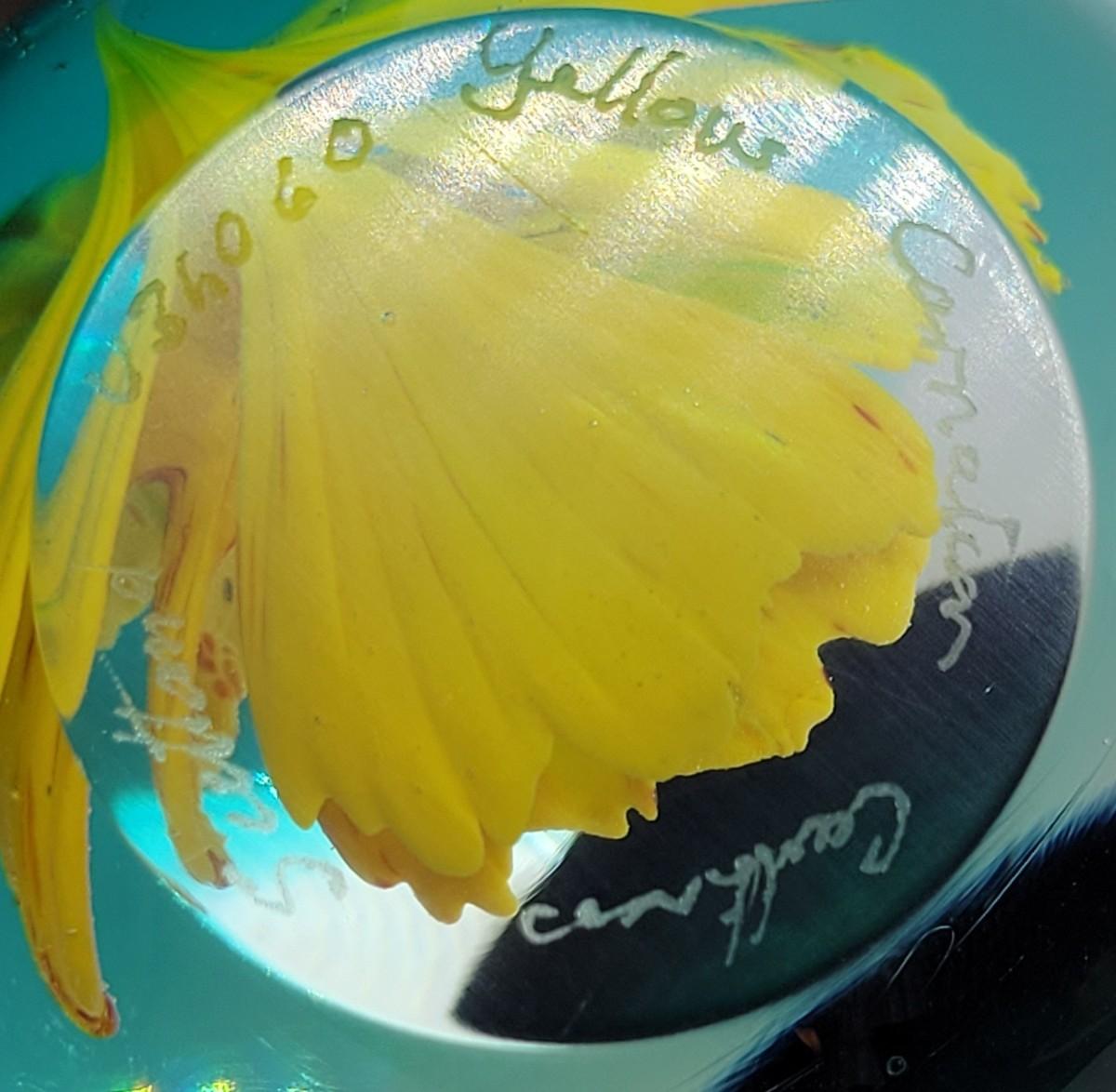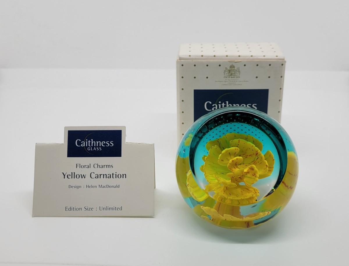 LOT 169L: Caithness Glass Scotland "Yellow Carnation" Glass Paperweight