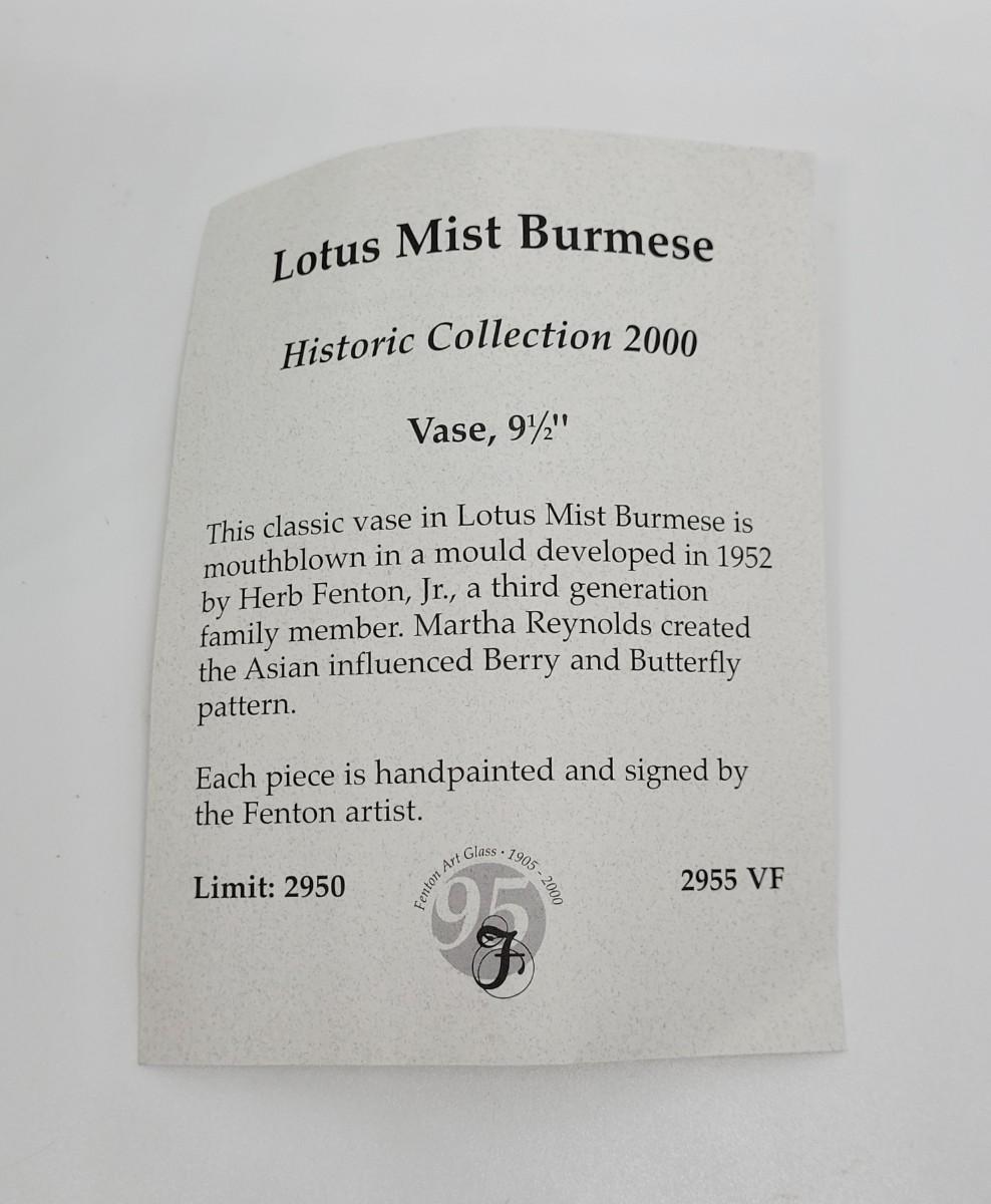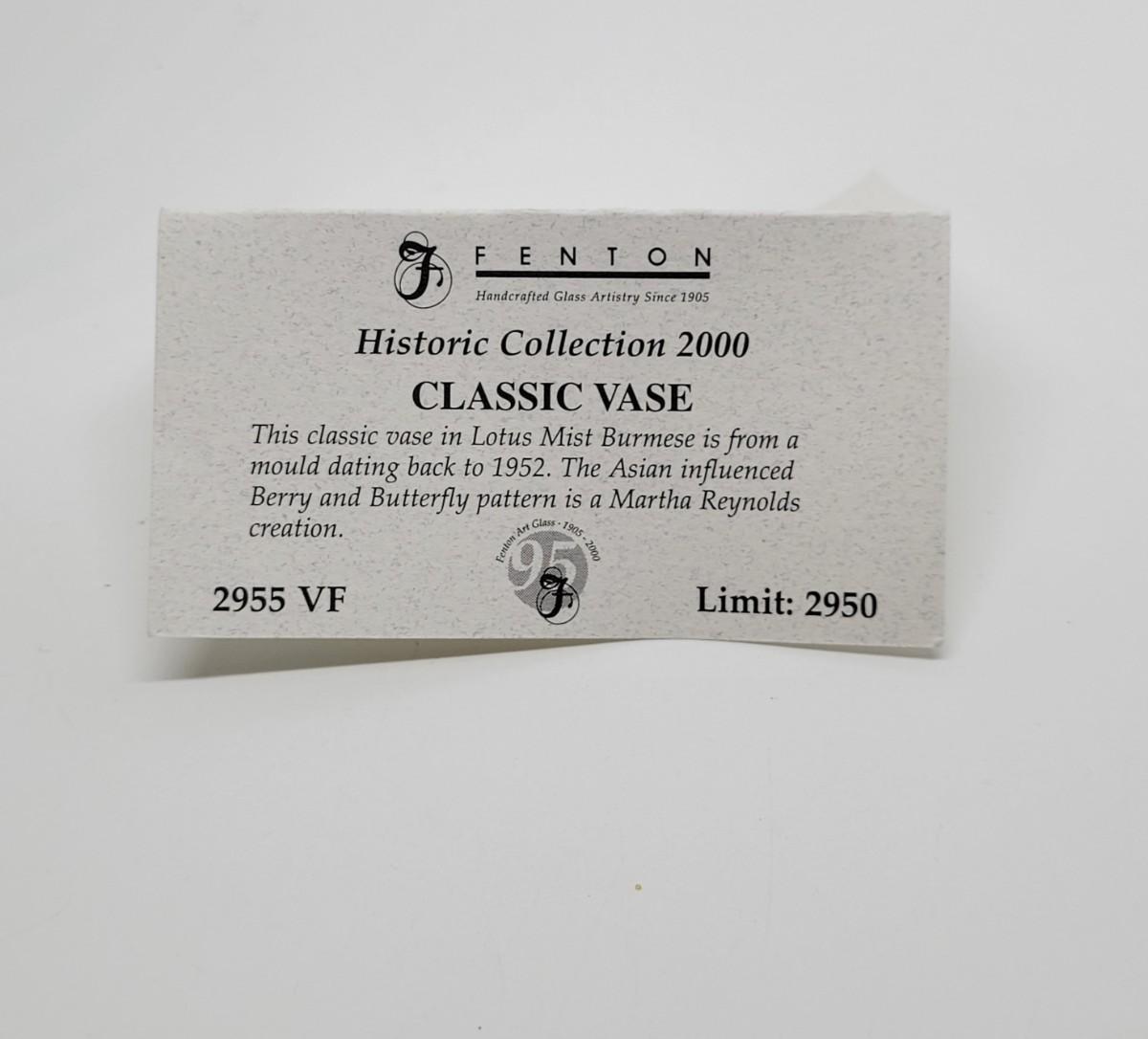 LOT 187L: Fenton Historic Collection 2000 Classic Vase