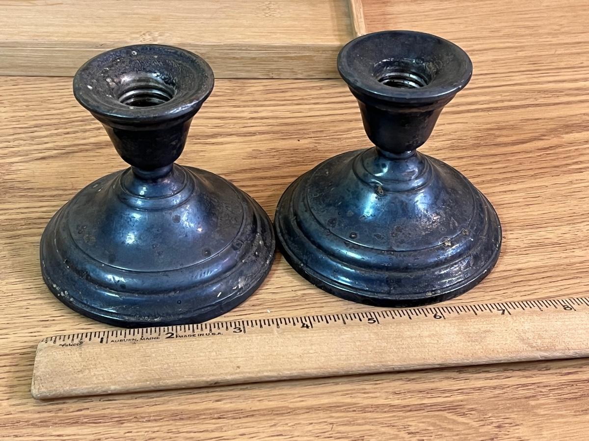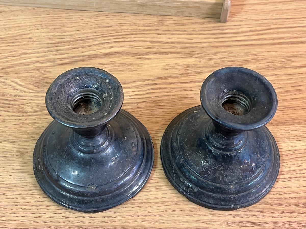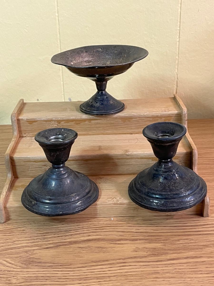 LOT 219B: Weighted Base Sterling Silver Pieces - Watrous Candlestick Holders, Crown Footed Compote Dish