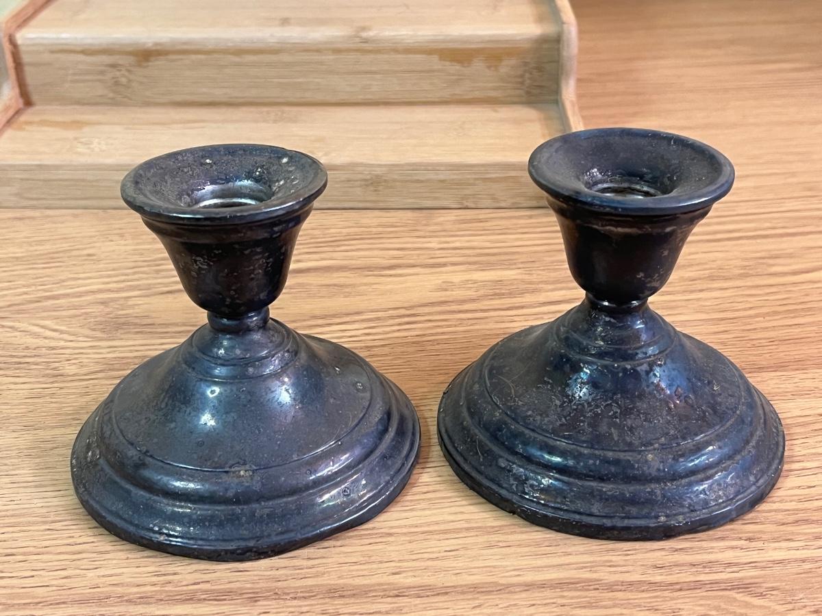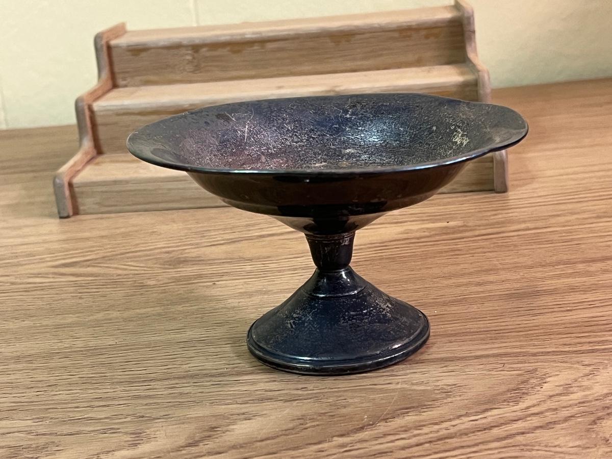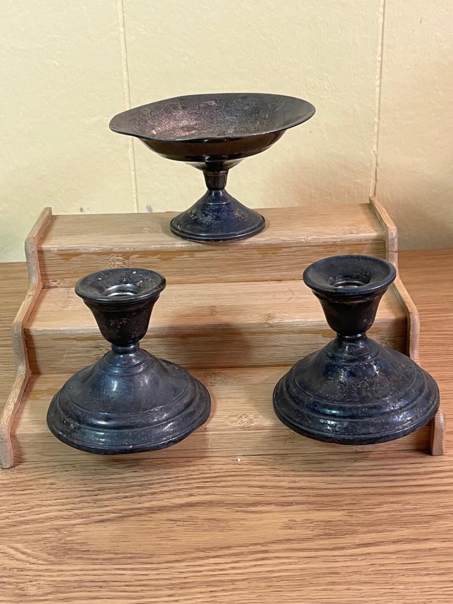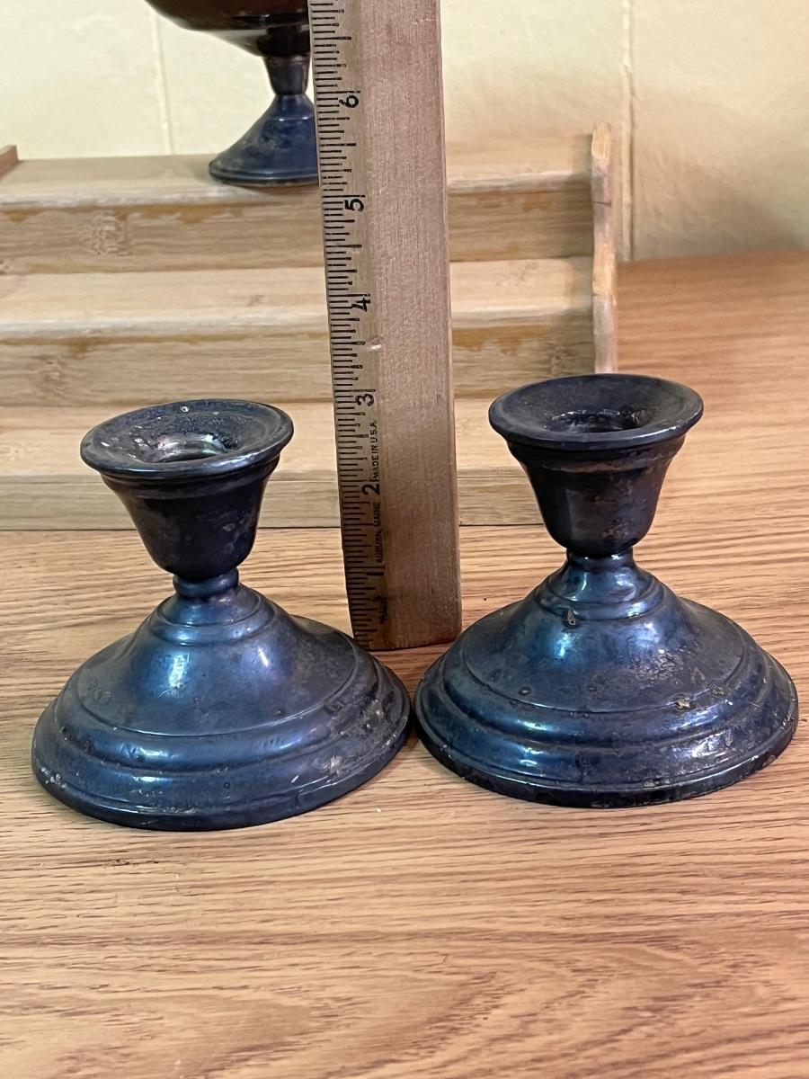 LOT 219B: Weighted Base Sterling Silver Pieces - Watrous Candlestick Holders, Crown Footed Compote Dish