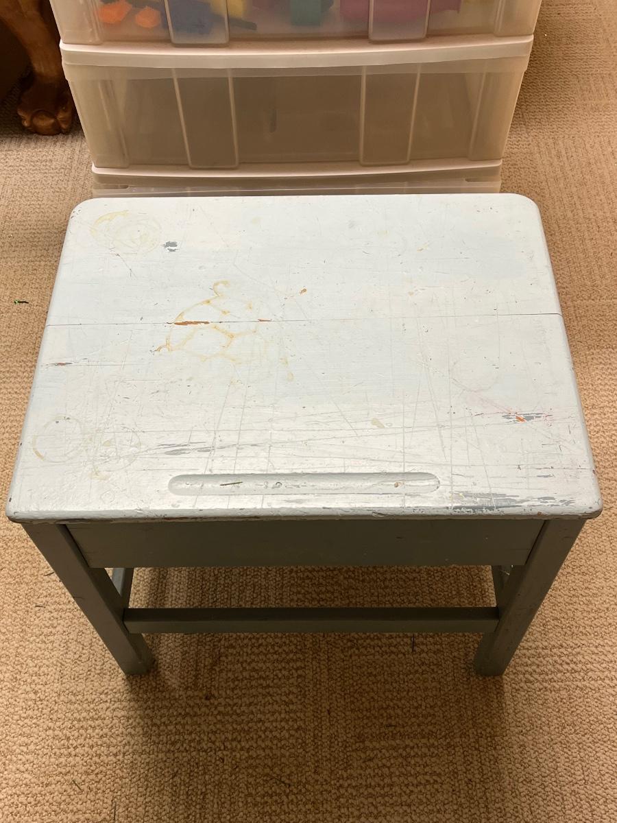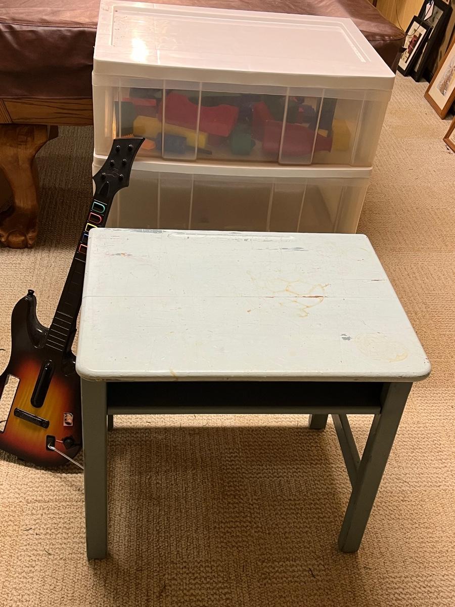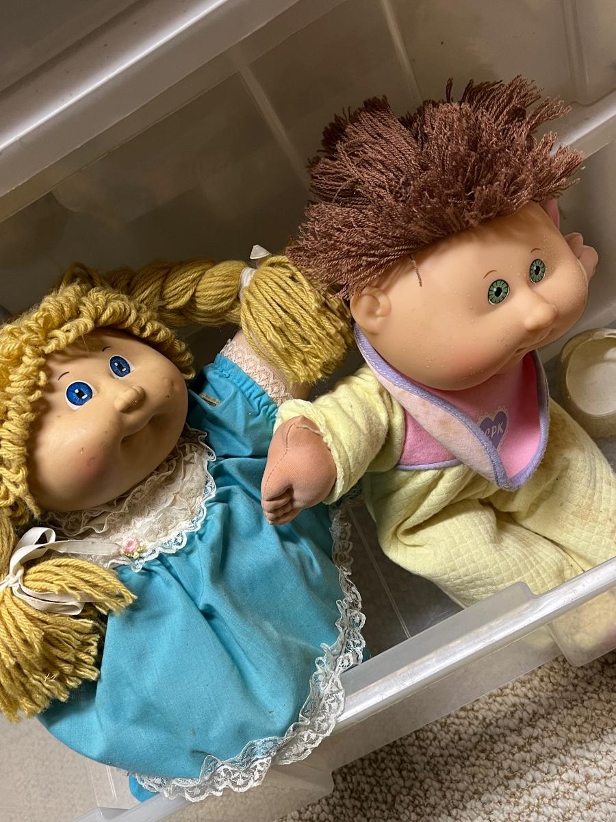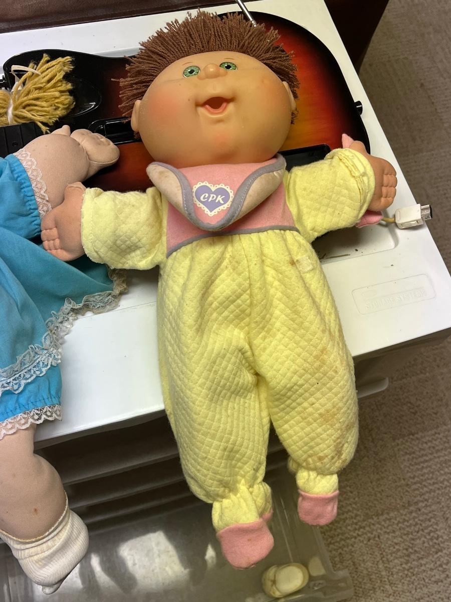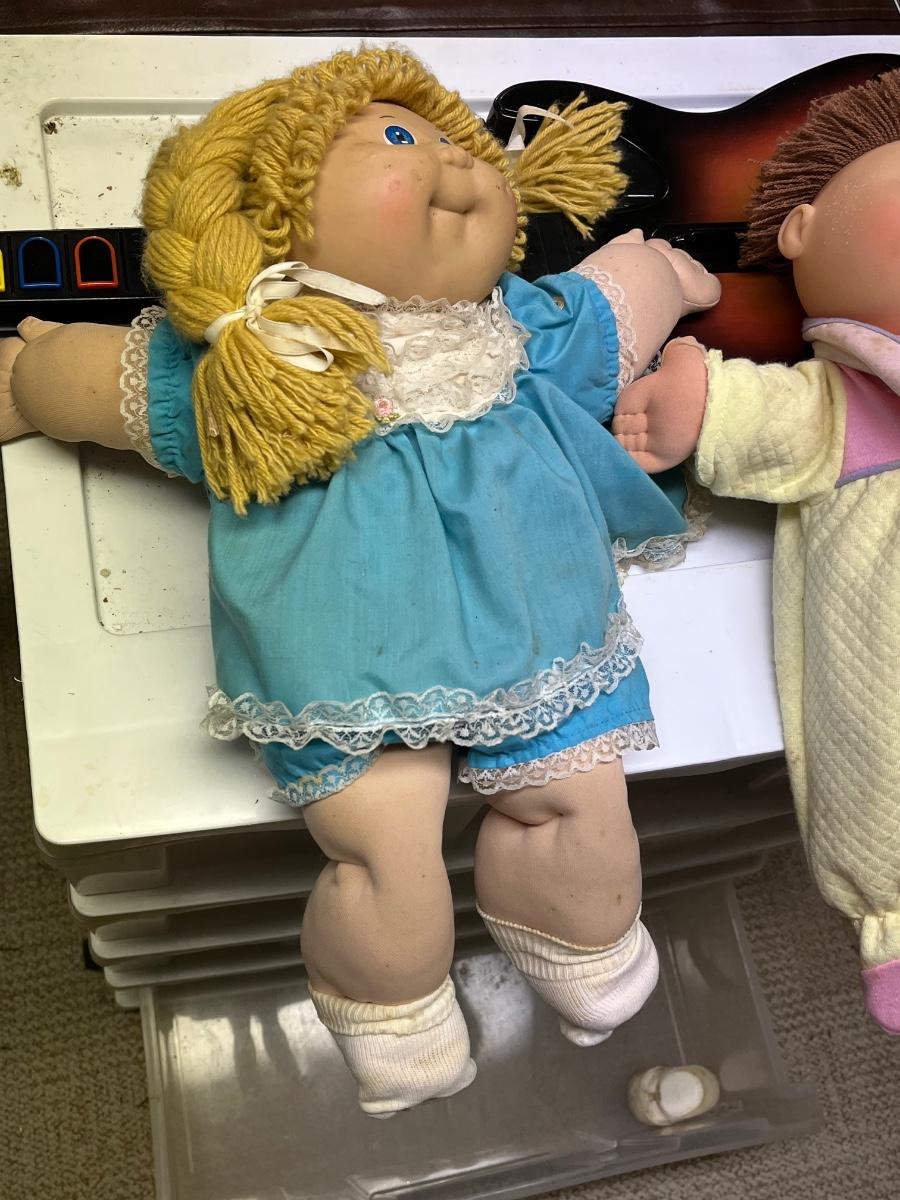 LOT 268B: Vintage School Desk, Plastic Drawers and Toys - Cabbage Patch Dolls