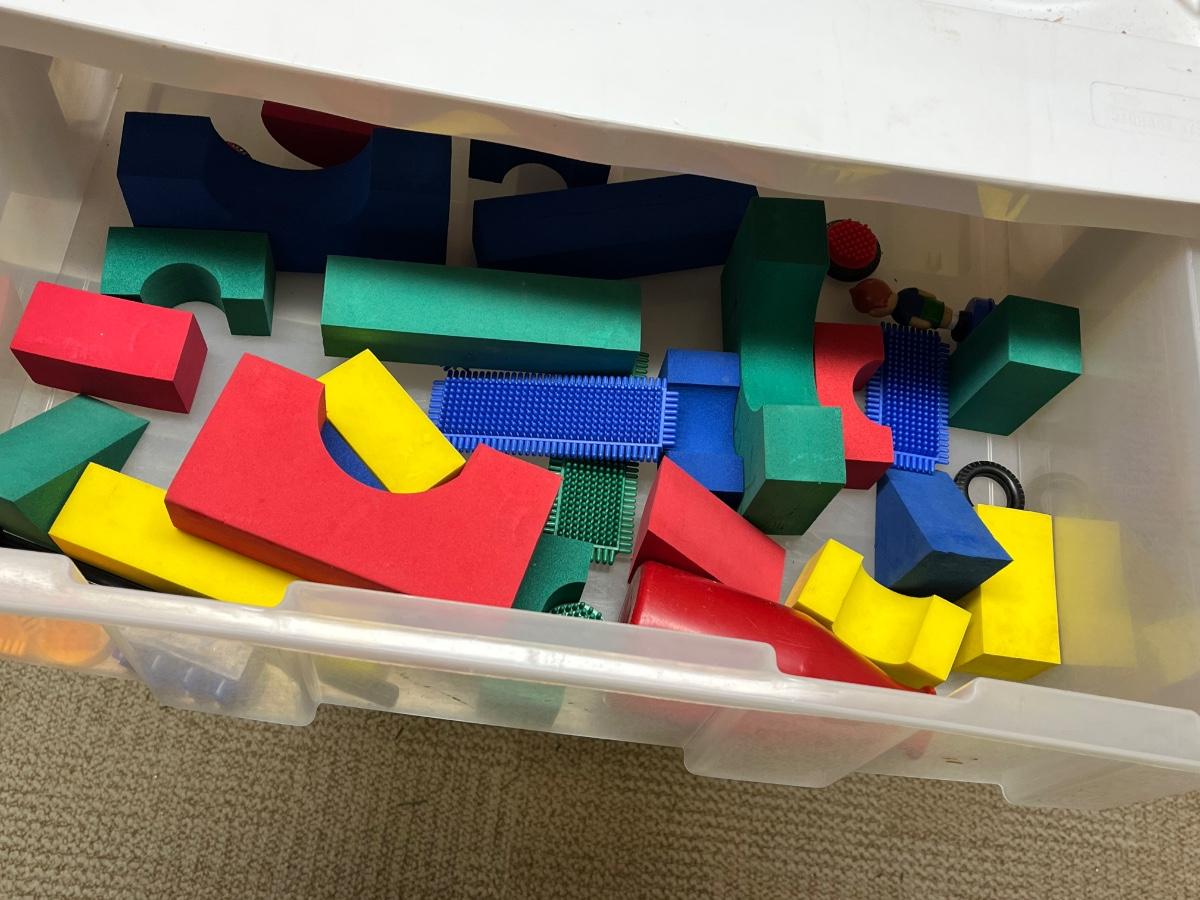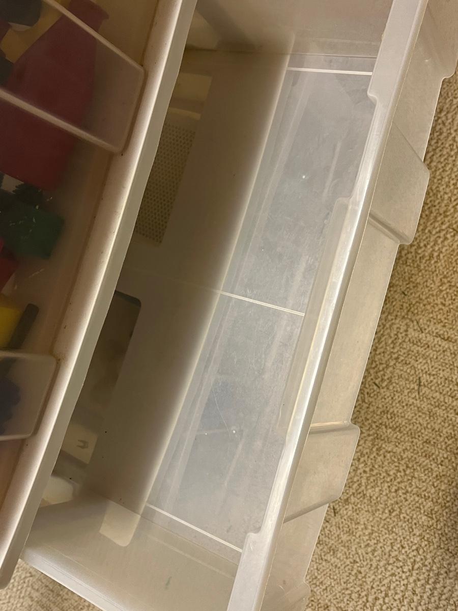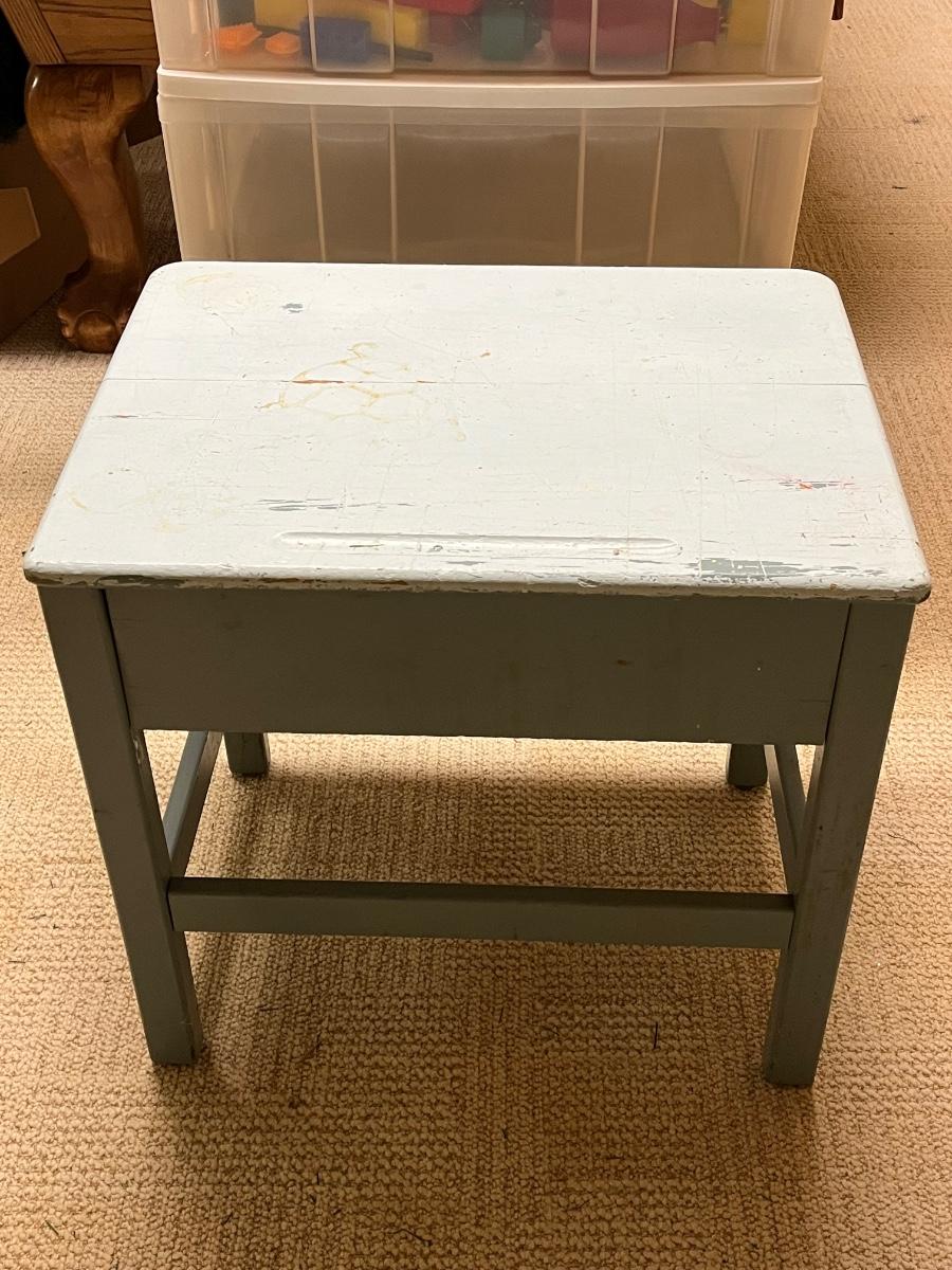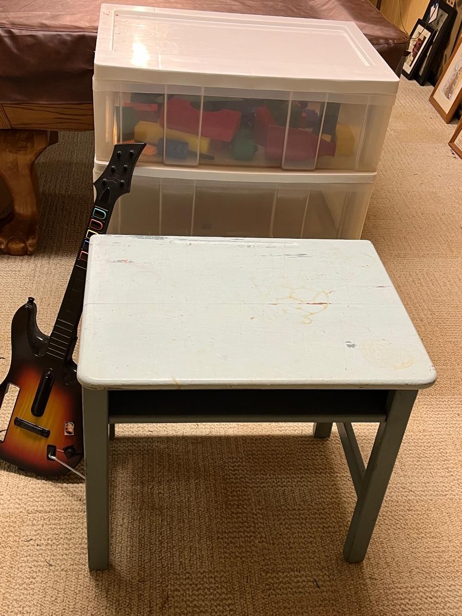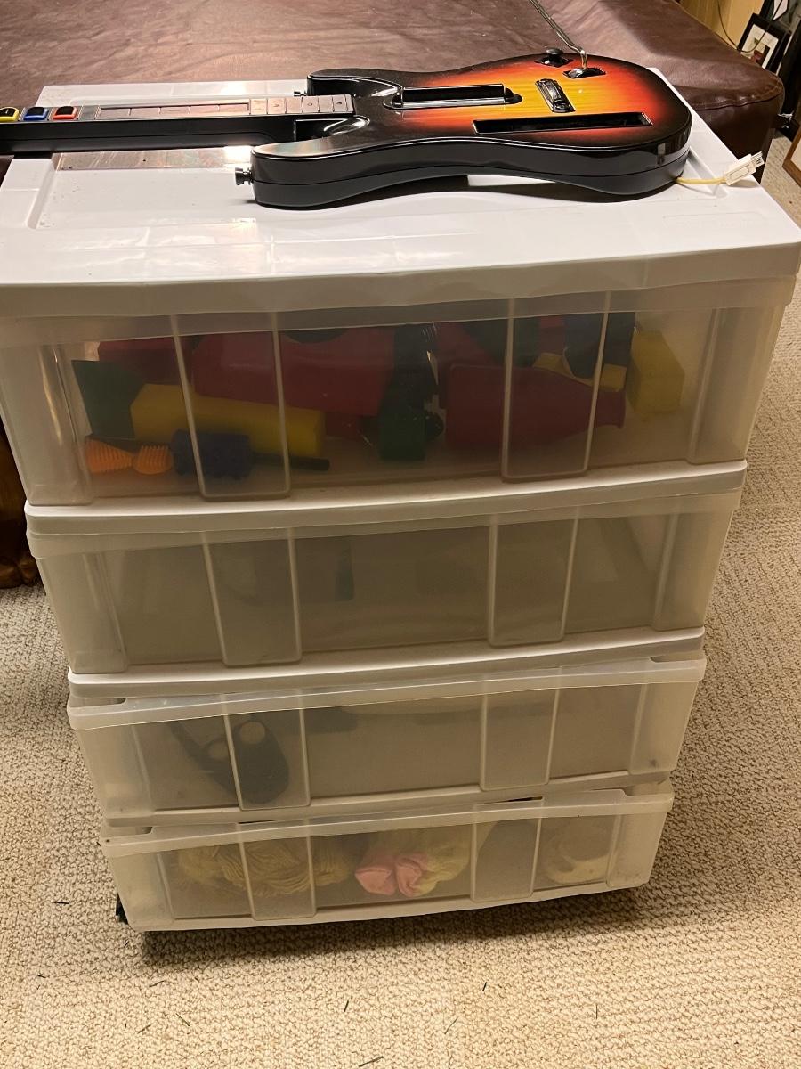 LOT 268B: Vintage School Desk, Plastic Drawers and Toys - Cabbage Patch Dolls