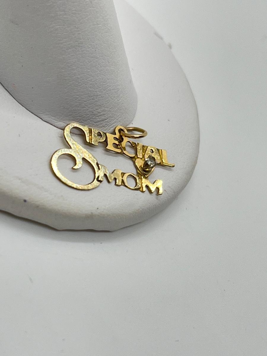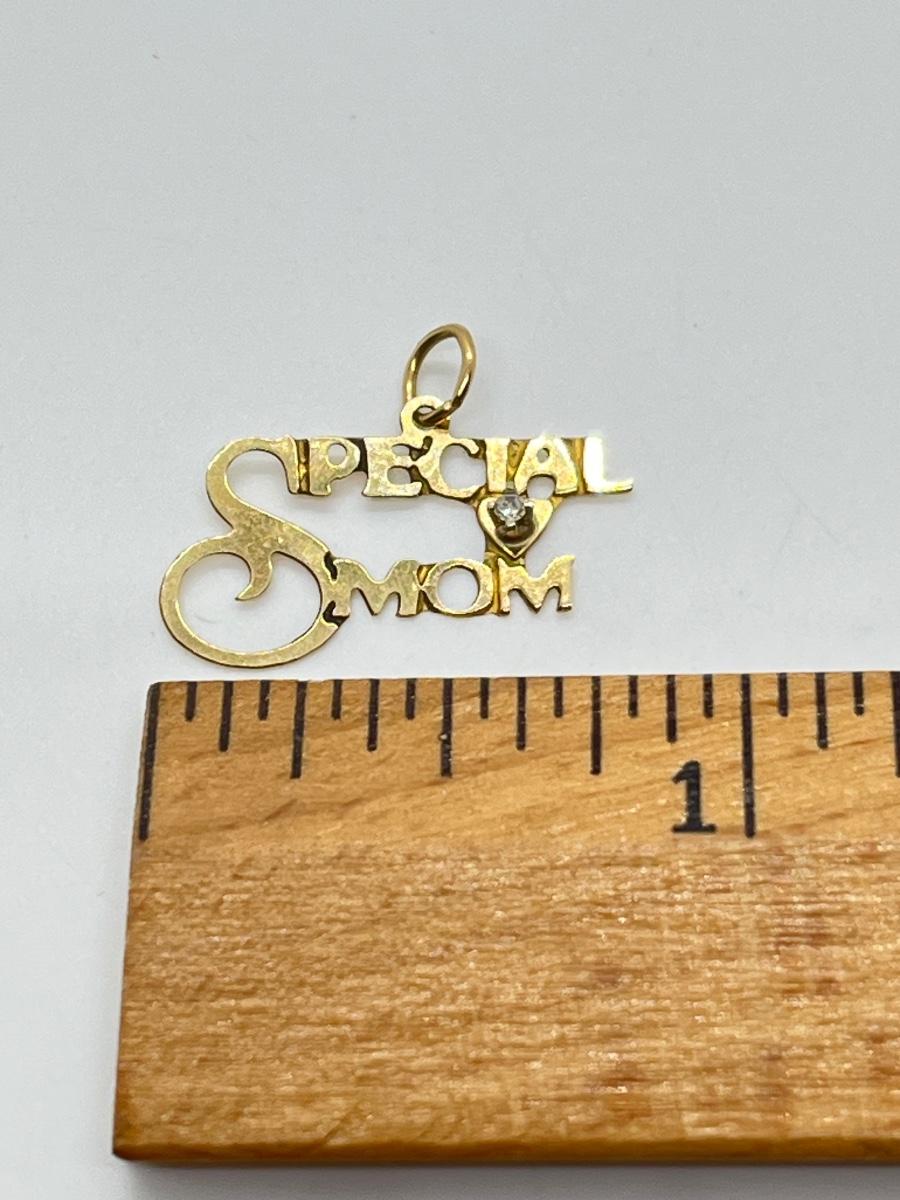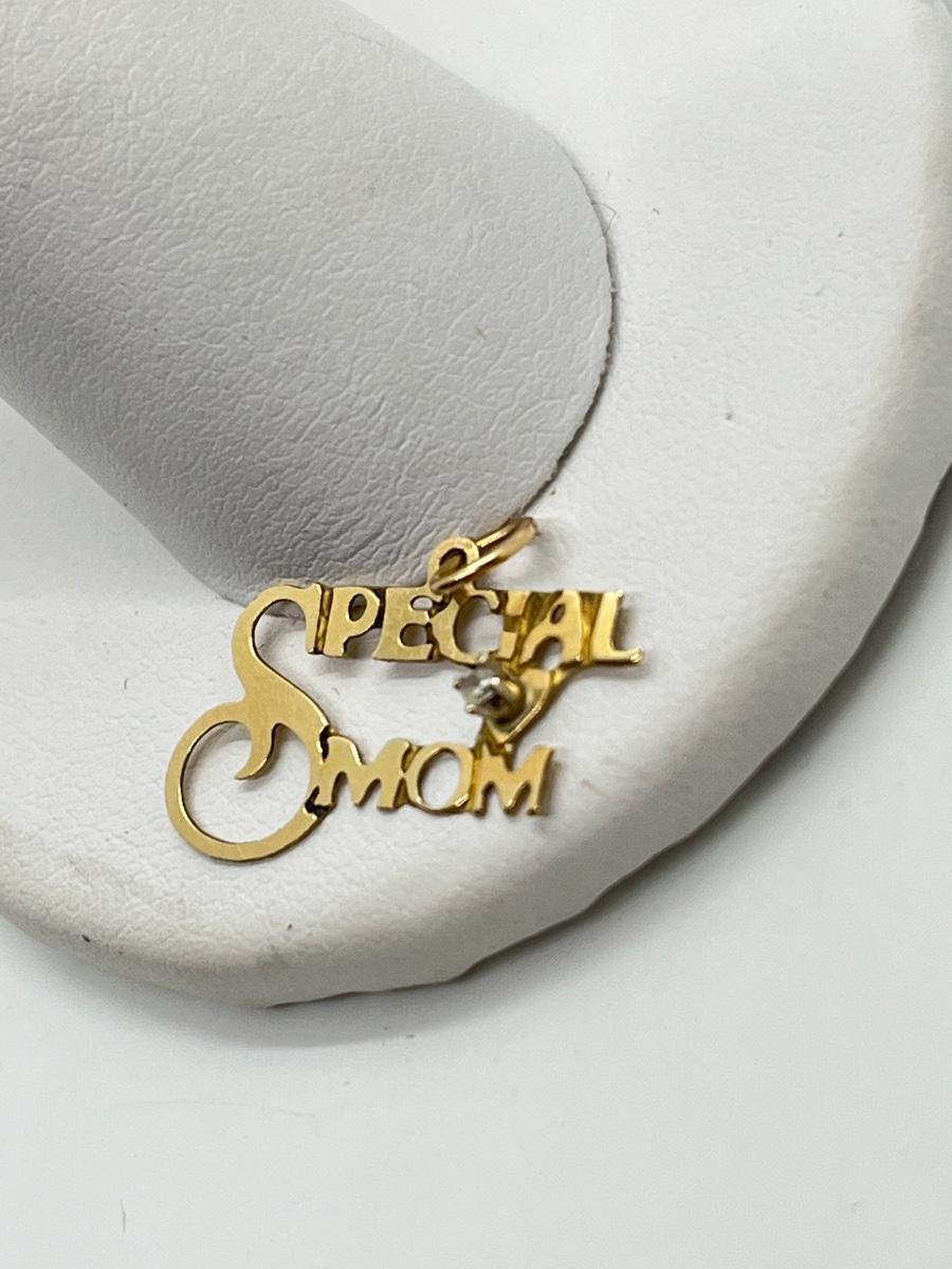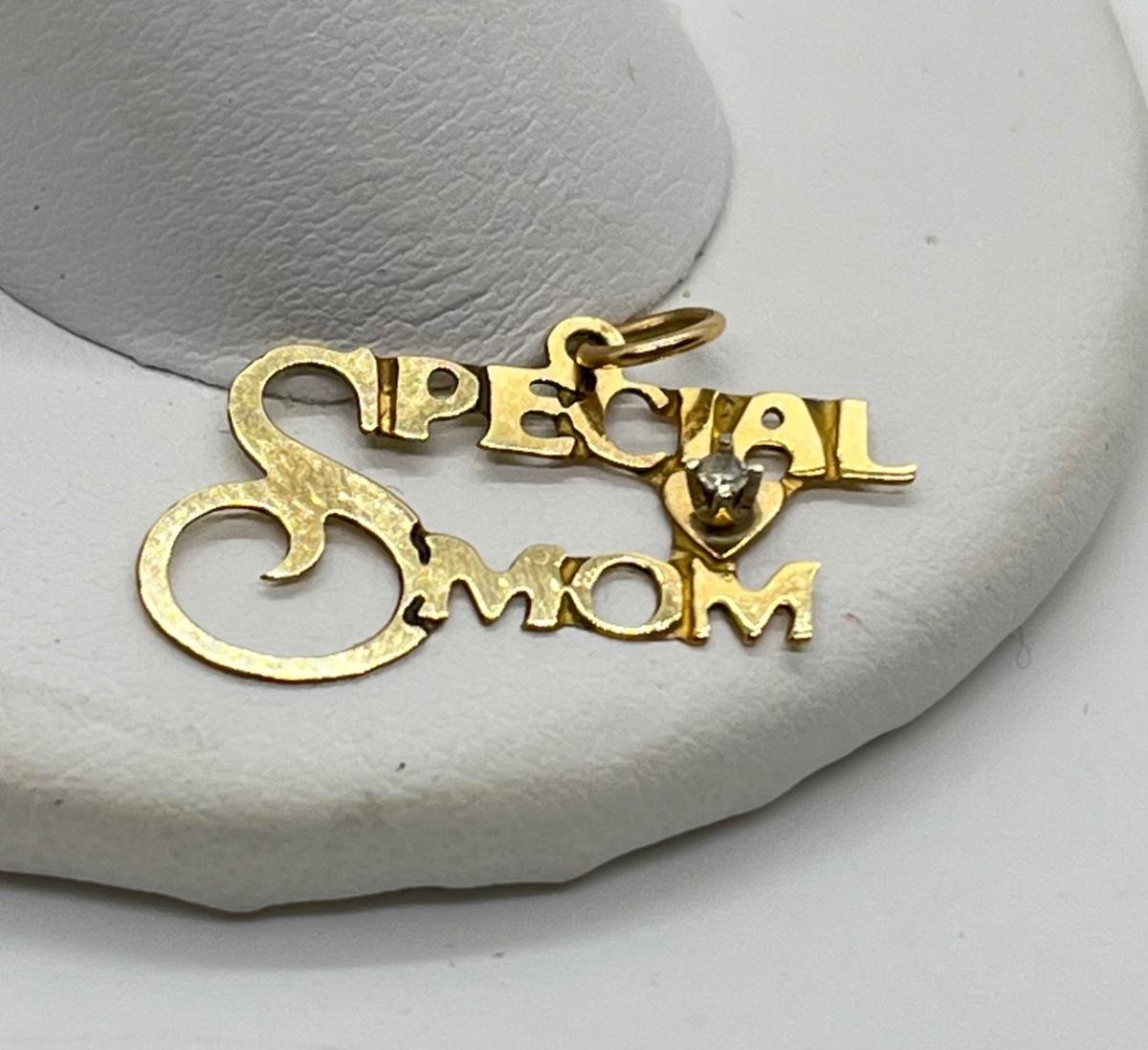 LOT 294J: 14K Gold "Special Mom" Pendant 0.39 gtw w/ Diamond Chip