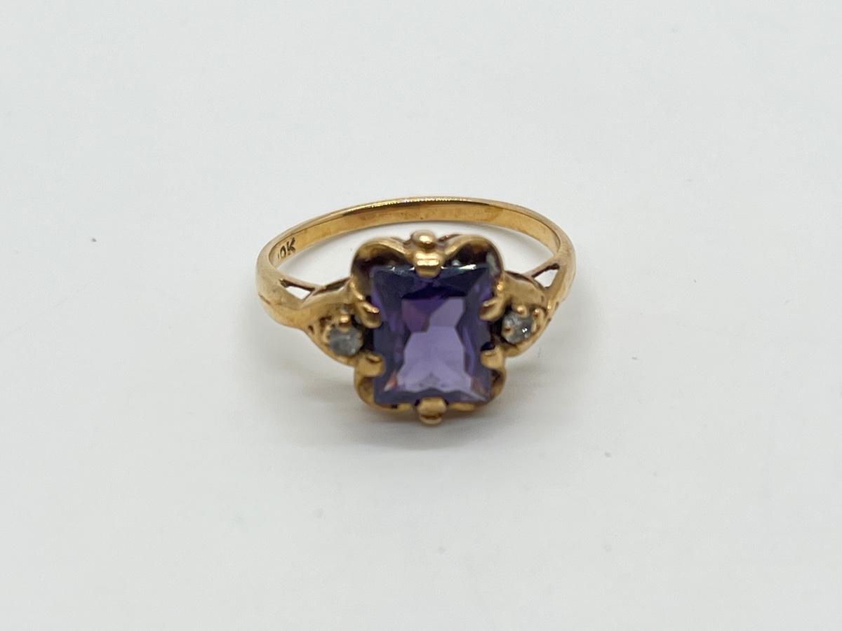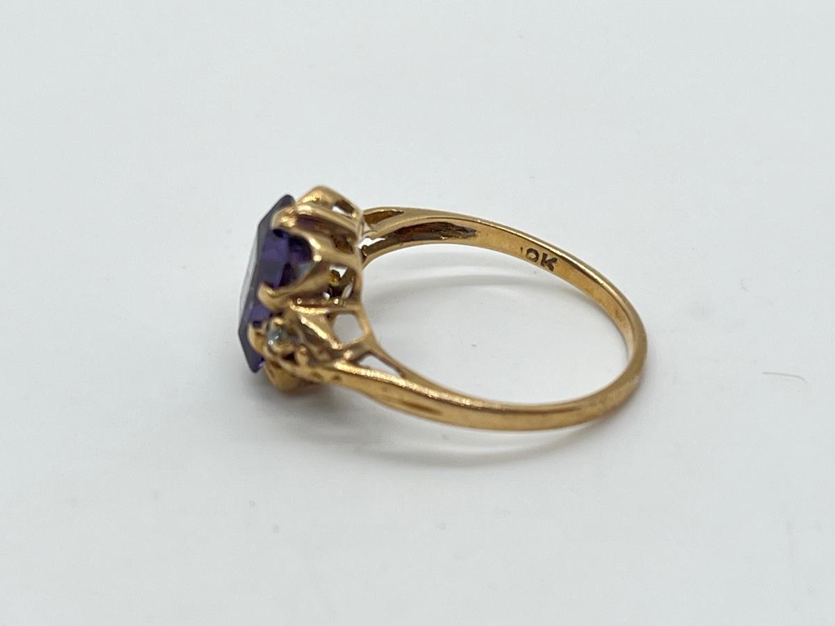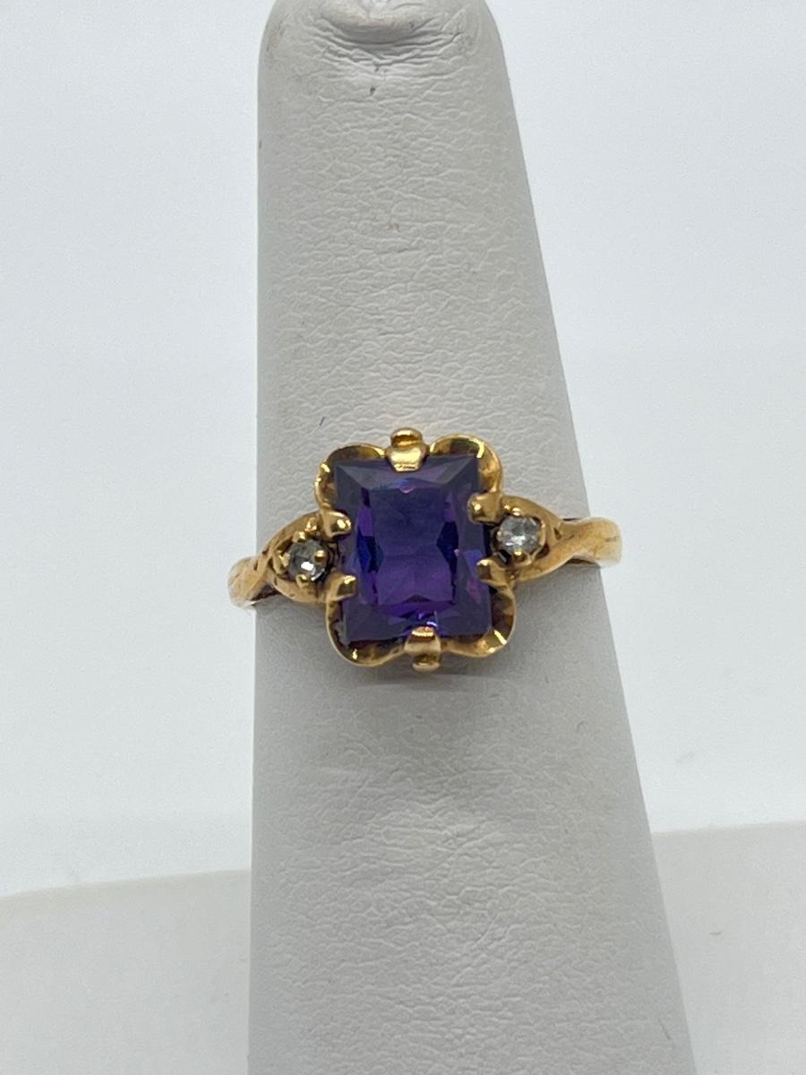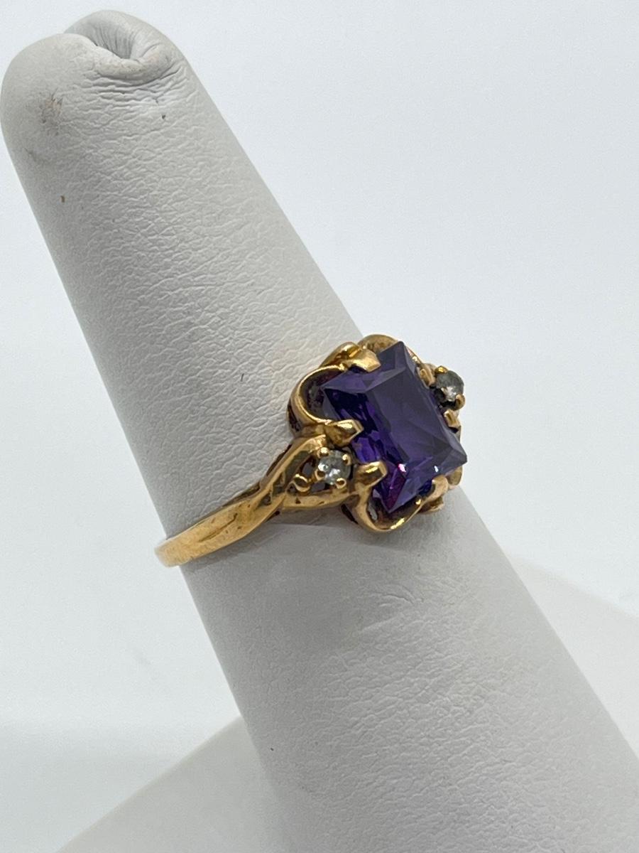 LOT 295: 10K Gold Amethyst and Diamond Size 8 Ring - 2.30 gtw