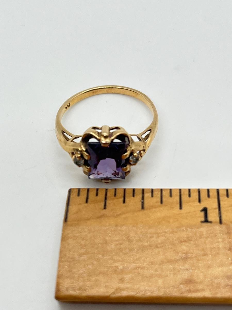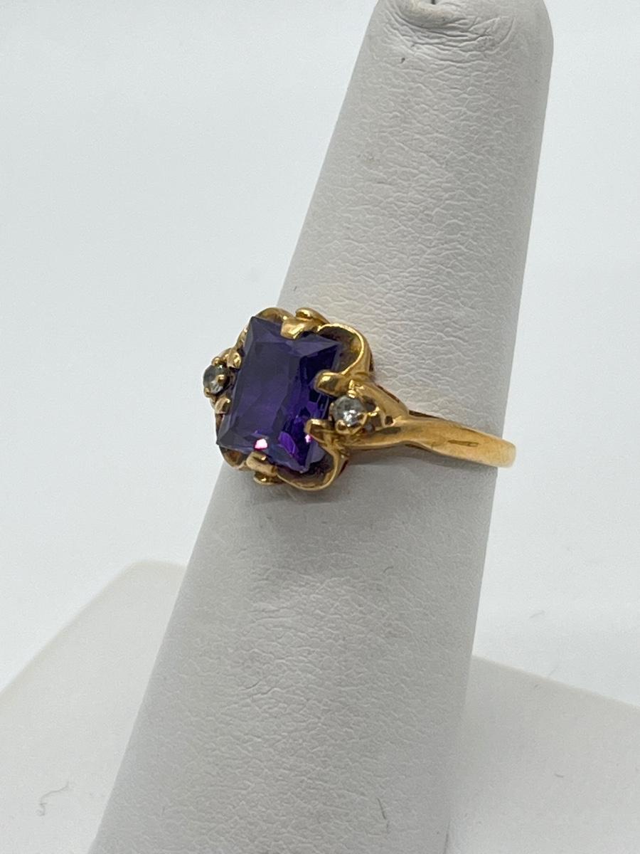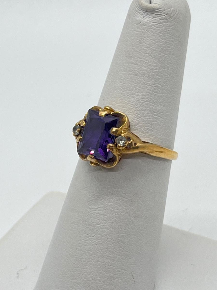 LOT 295: 10K Gold Amethyst and Diamond Size 8 Ring -  2.30 gtw