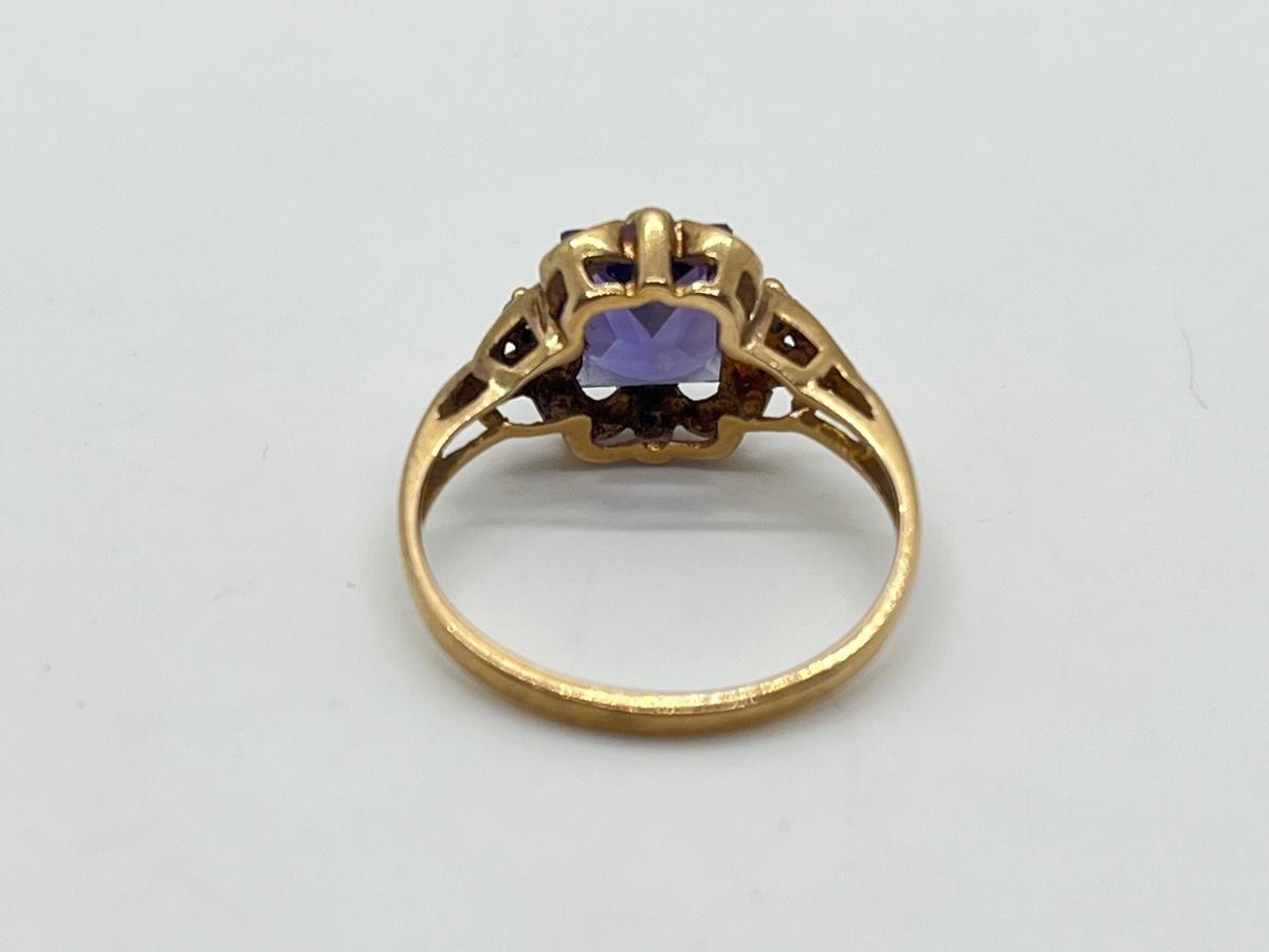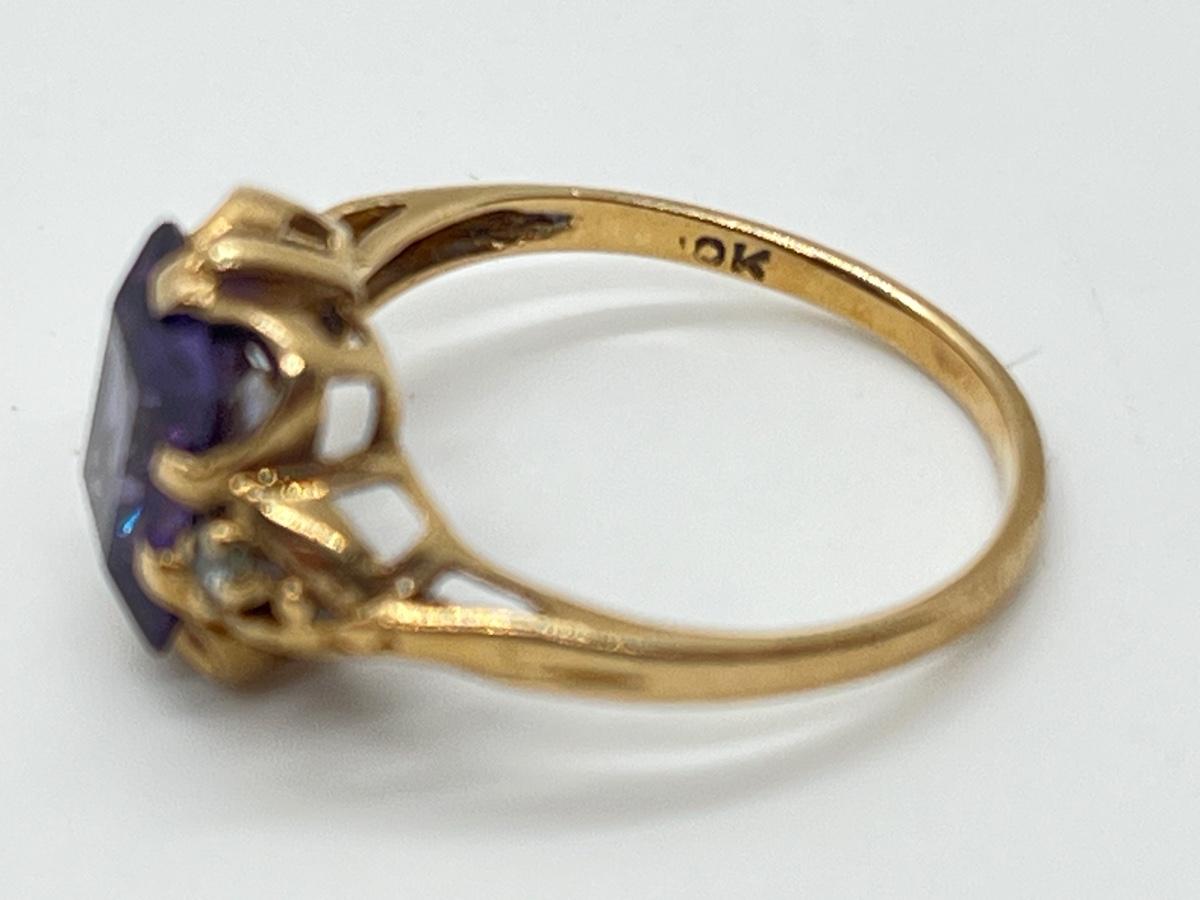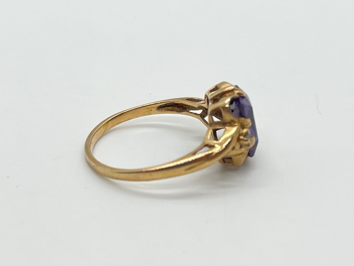 LOT 295: 10K Gold Amethyst and Diamond Size 8 Ring -  2.30 gtw