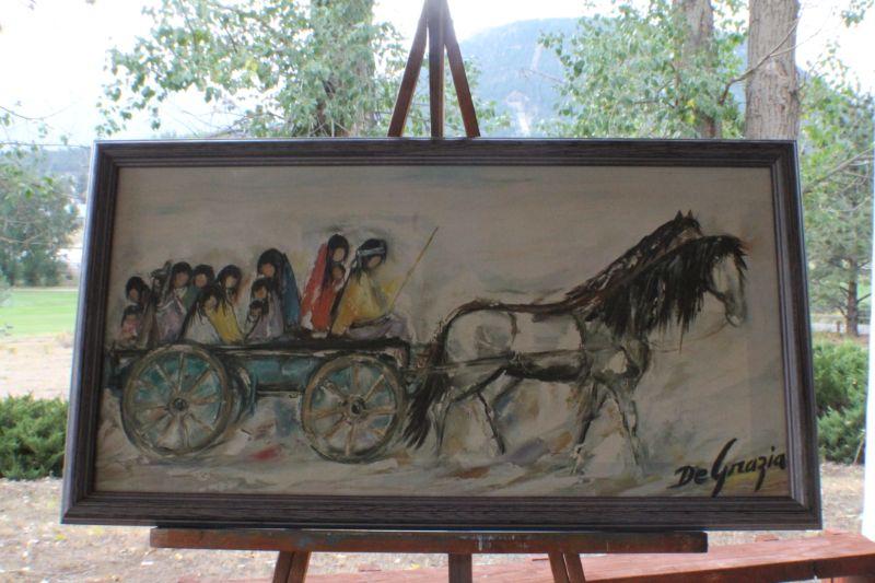 Lot #97: Vintage Ted De Grazia Oil Painting Framed 32" x 17"