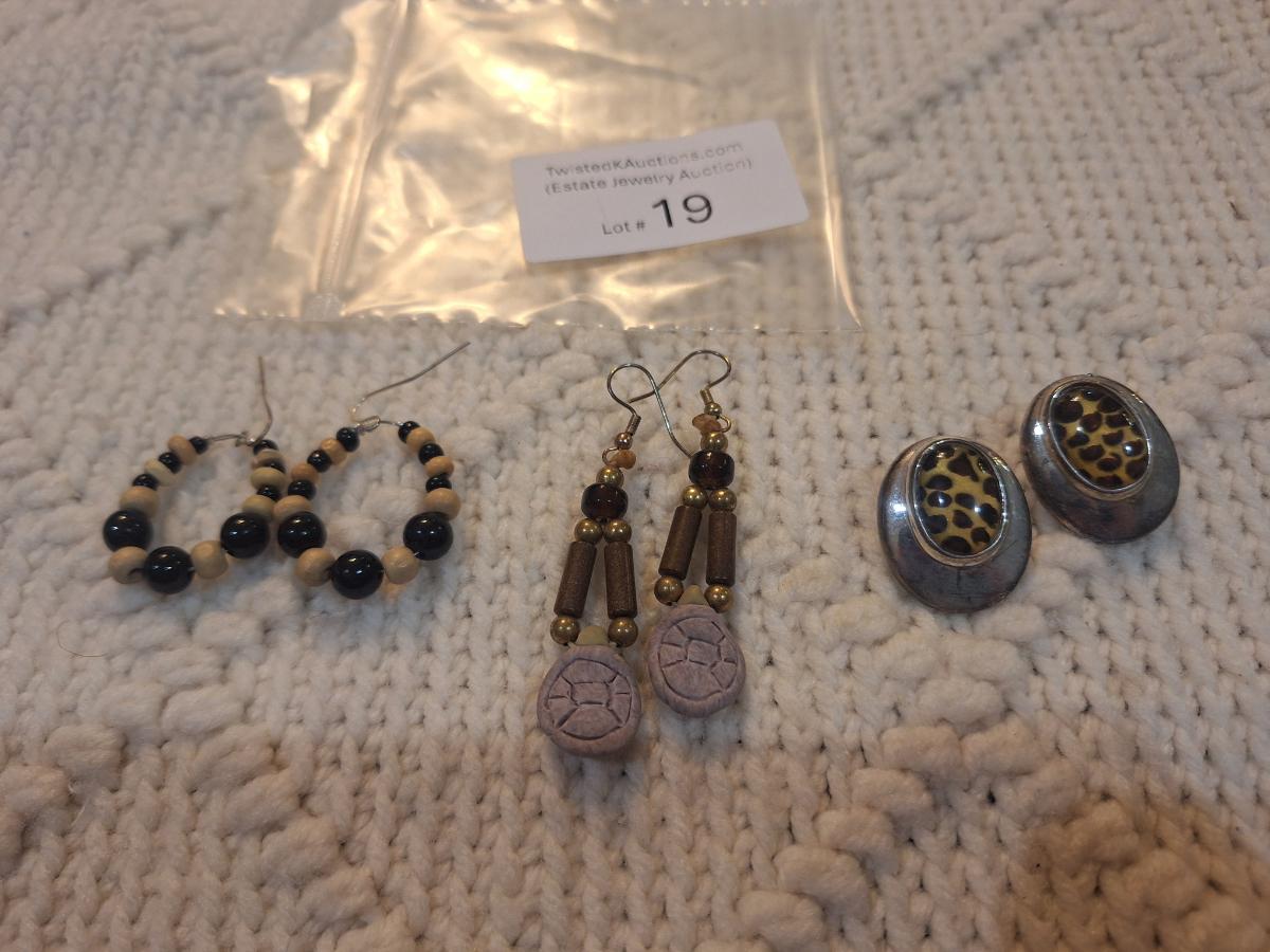 Lot of 3 earrings- browns and neutral colors