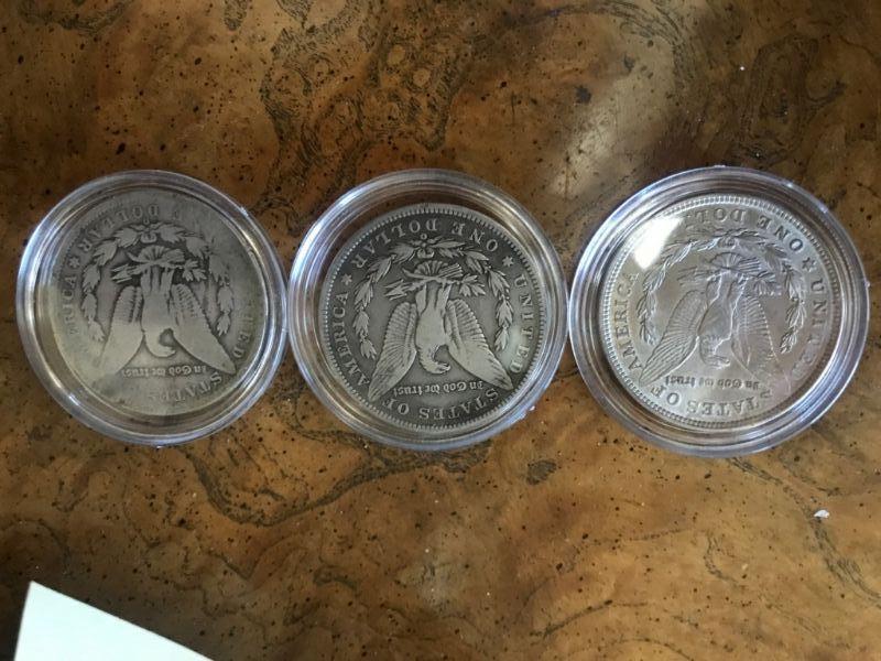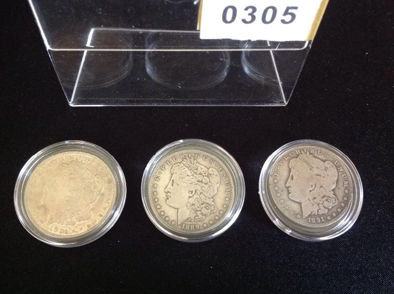 Lot of 3 Morgan Dollars; 1889, 1891, 1921 Circulated Condition