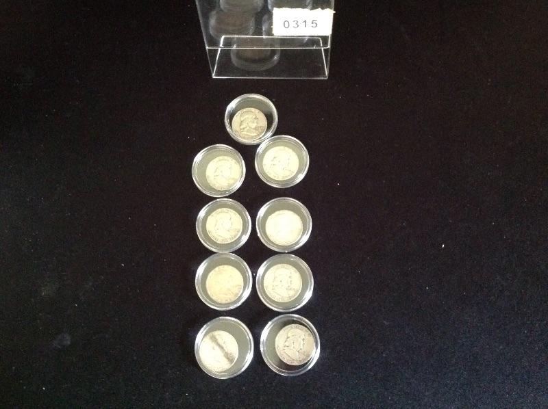 Lot of 9 Franklin Half Dollars. Circulated