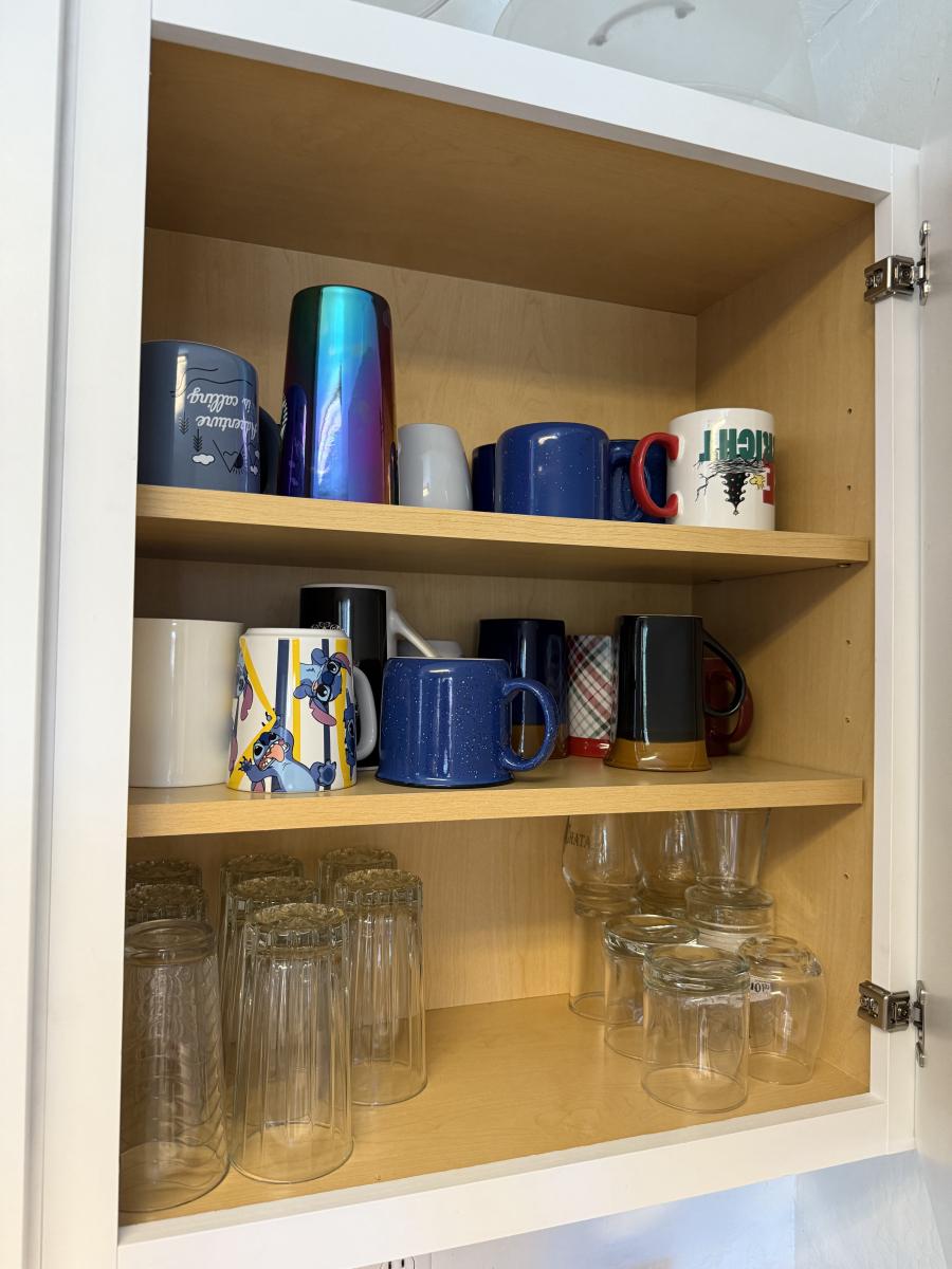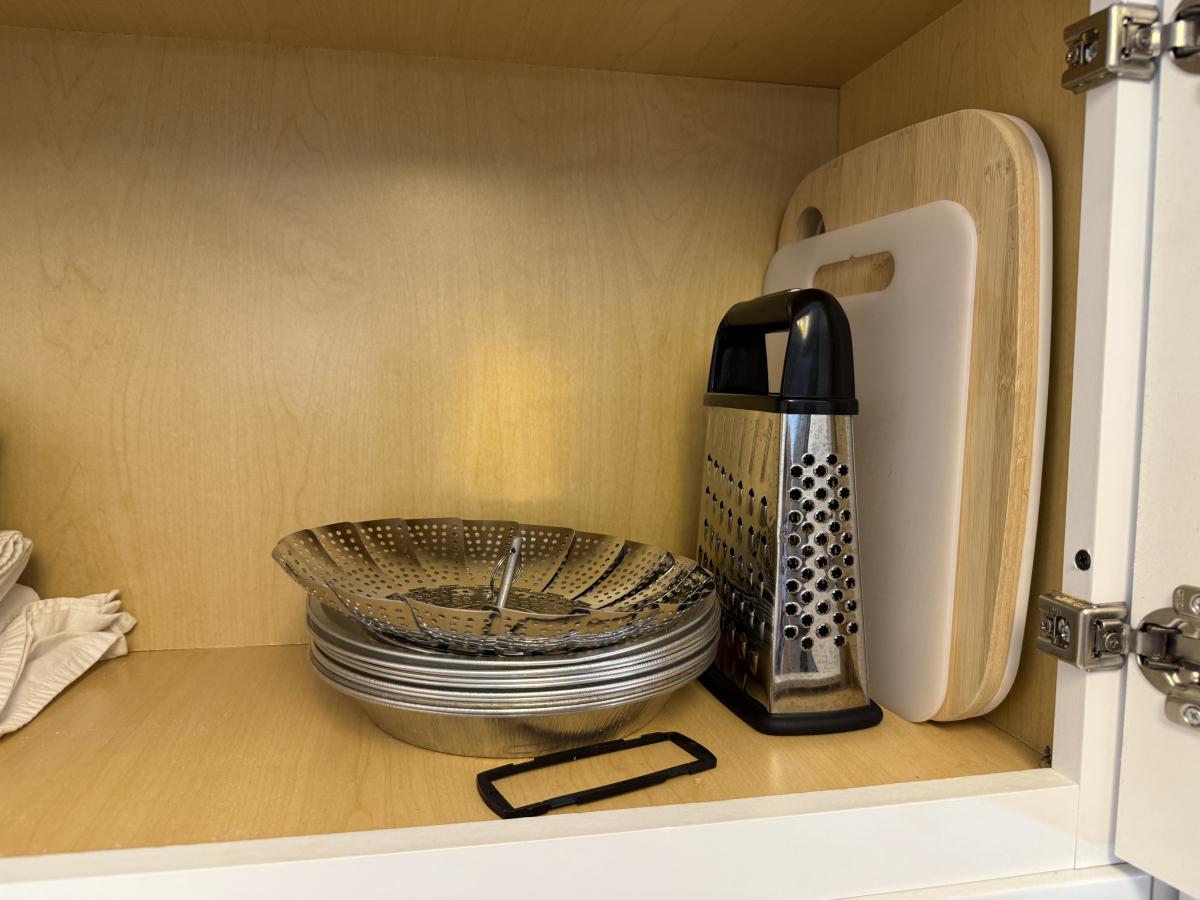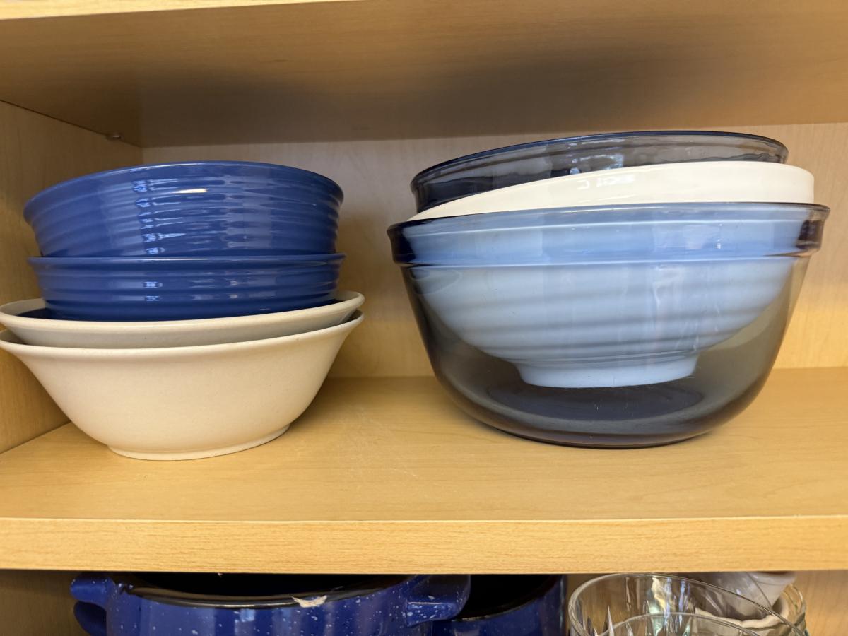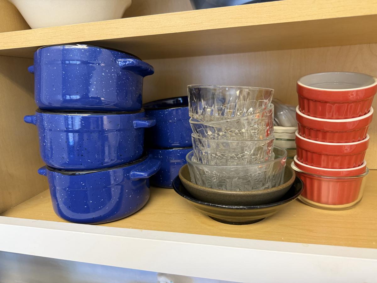 Little bit of everything, cups, dishes utensils, cutting boards, cooking sheets