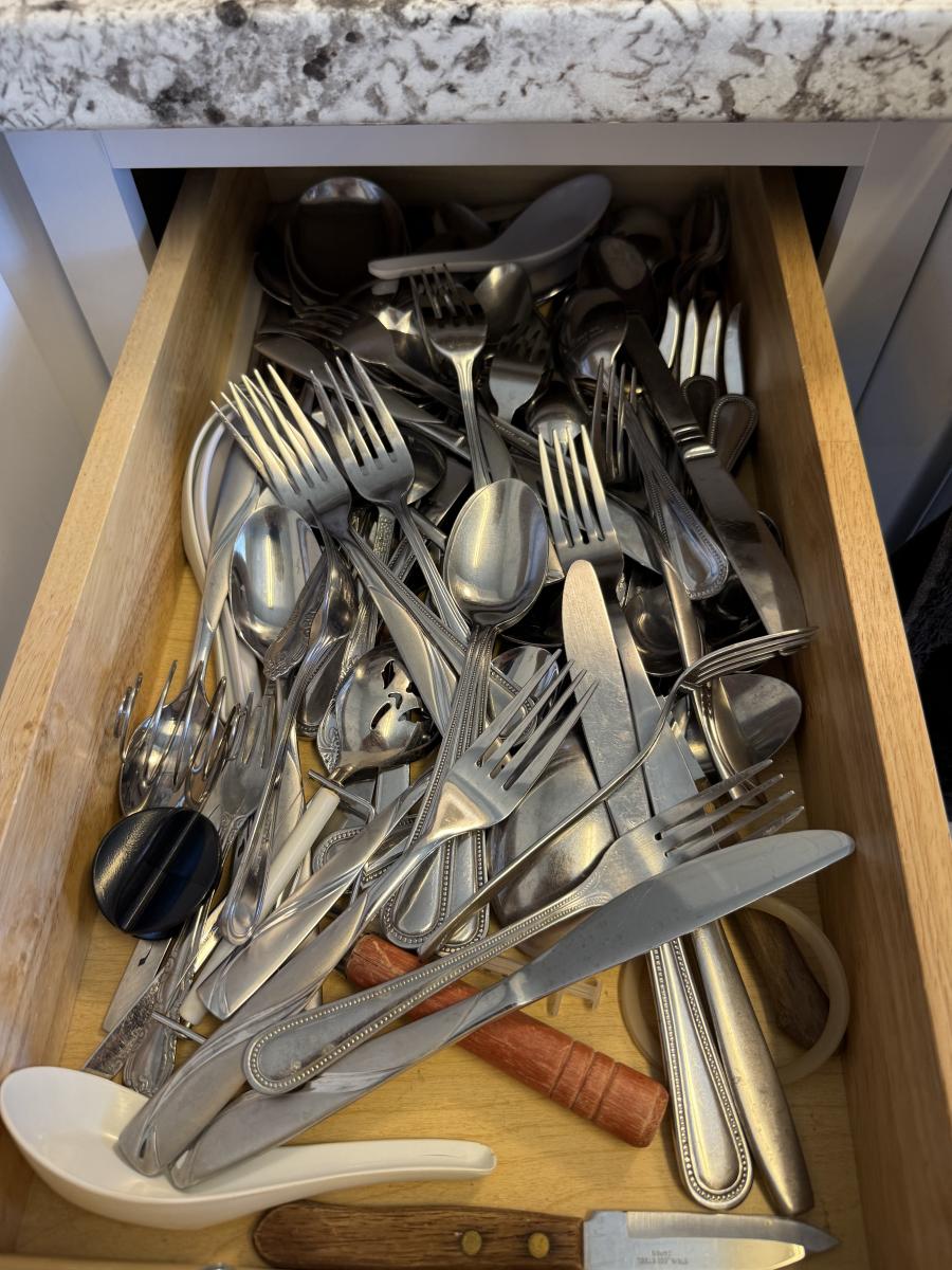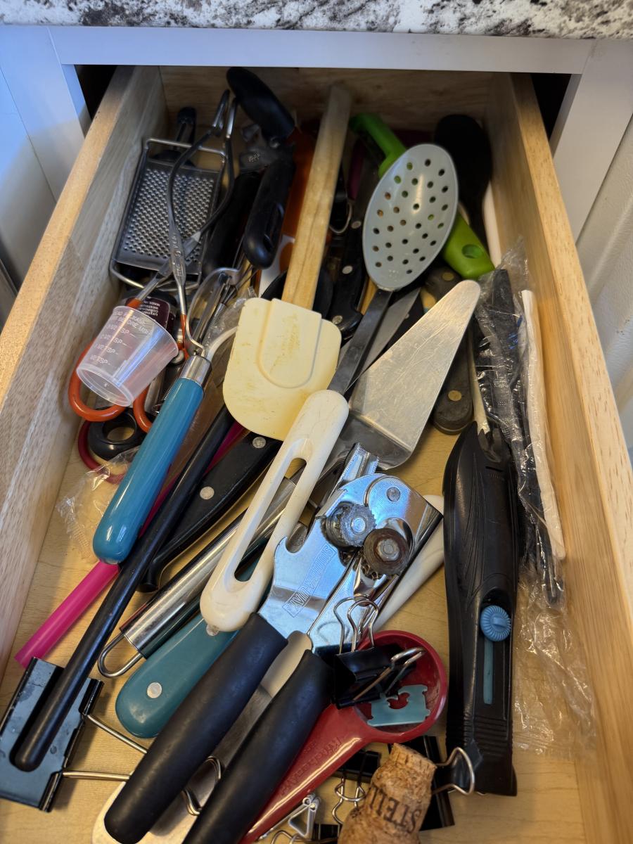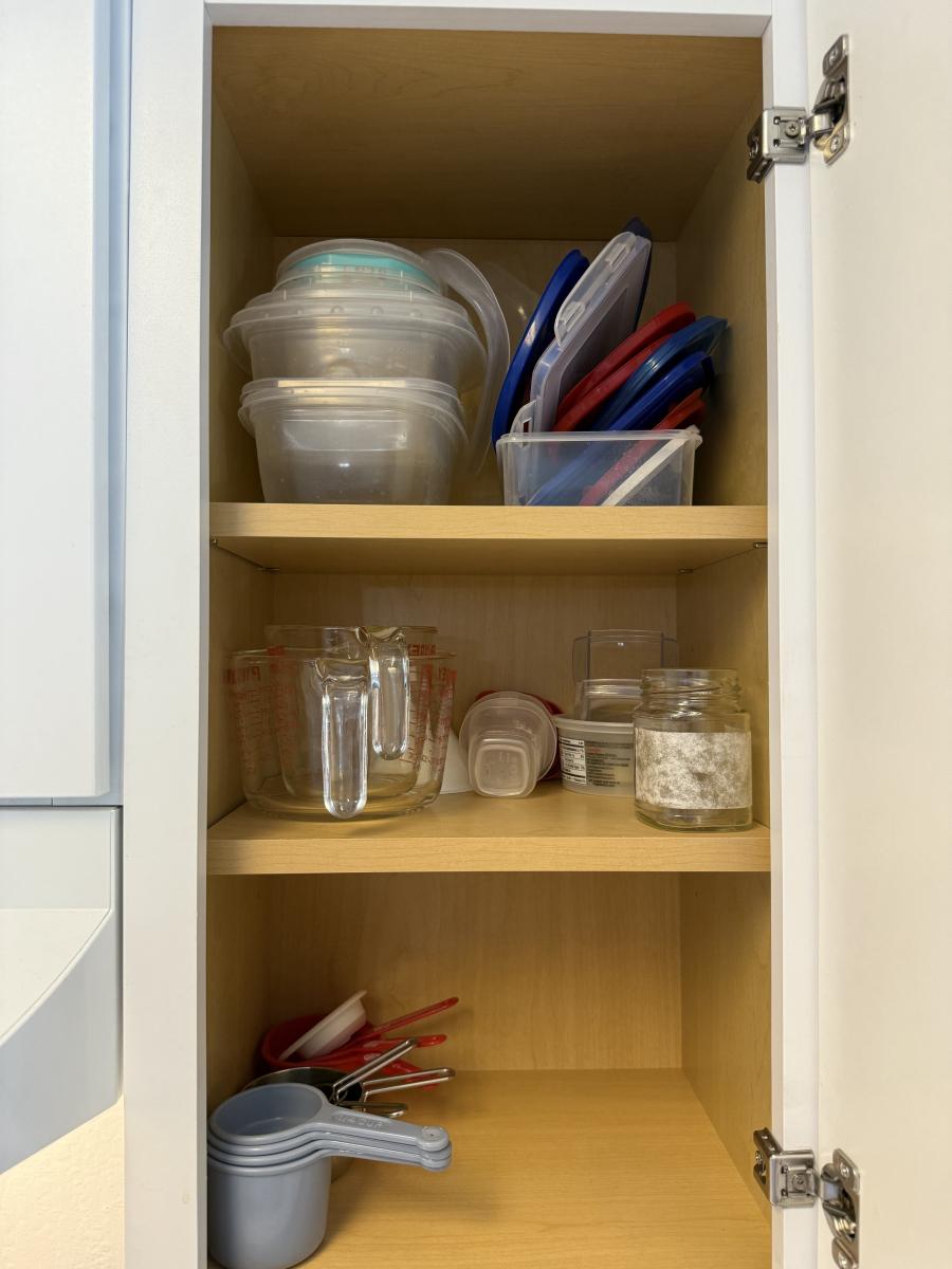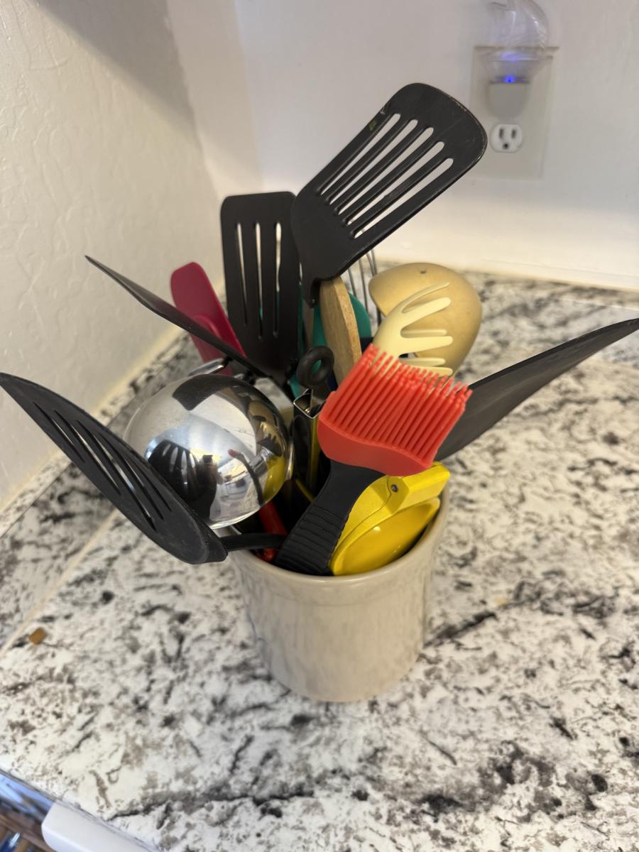 Little bit of everything, cups, dishes utensils, cutting boards, cooking sheets