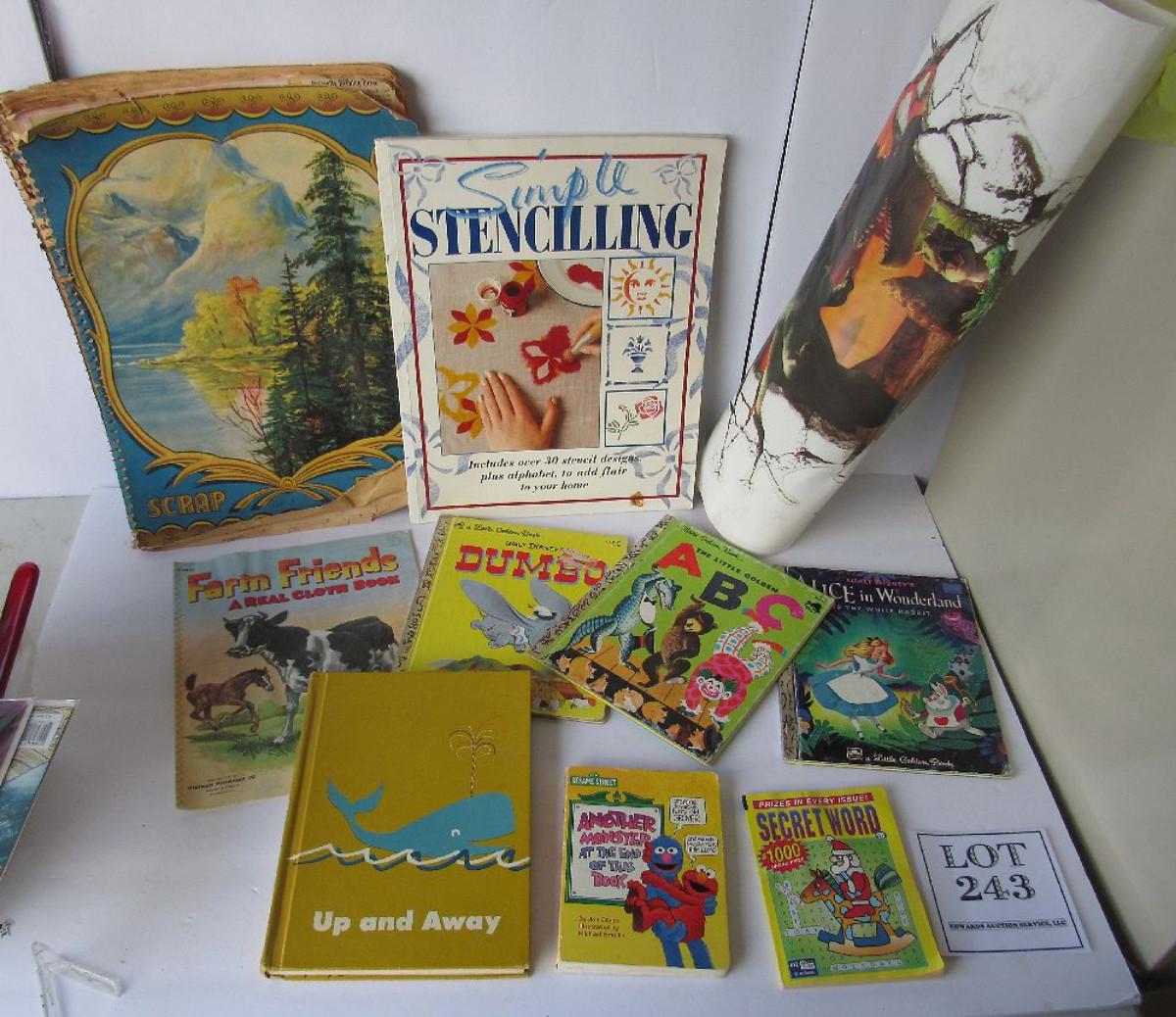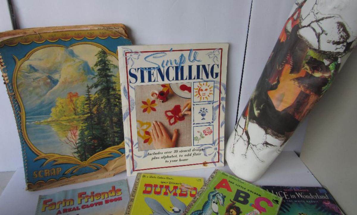 Lot of Misc Child's Books, Dino Clings, Scrapbook, Stenciling Booklet