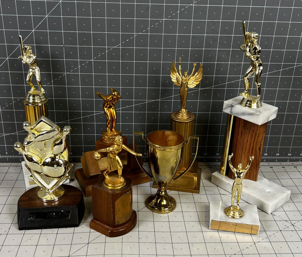 LOT of Various Trophy's: Baseball, Swimming, Bowling