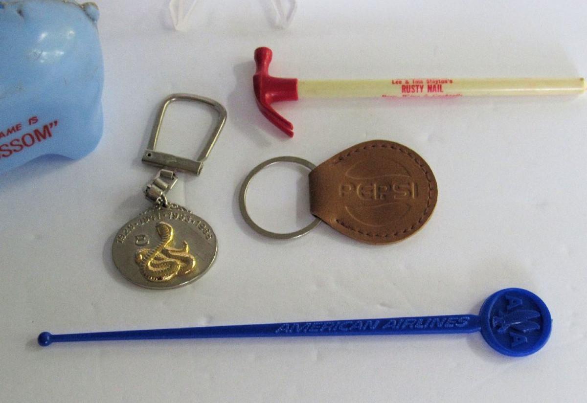 Lot of Vintage Advertising Smalls, American Airlines Swizzle Stick, Pepsi Key Ring, More