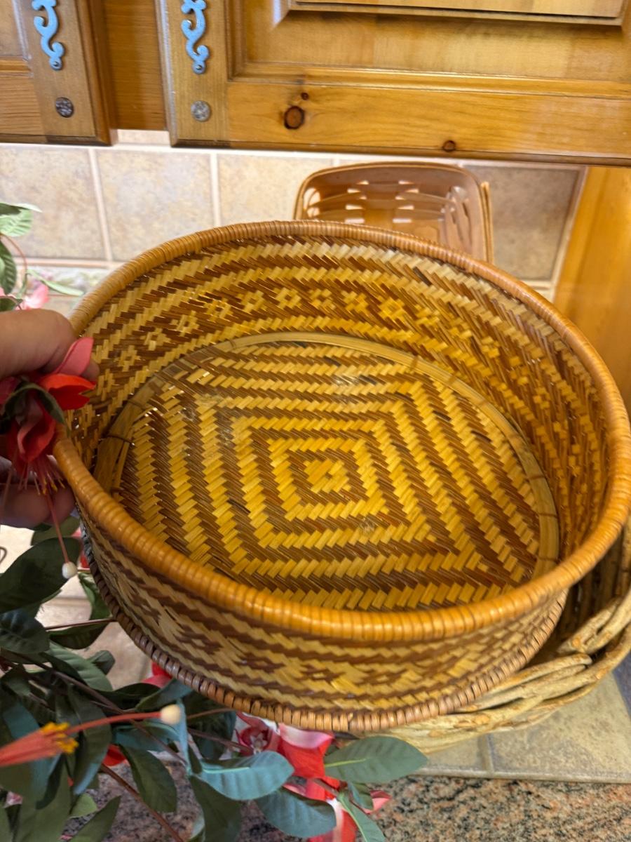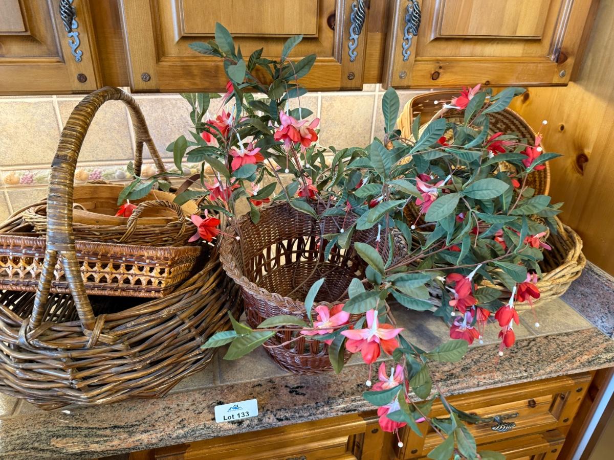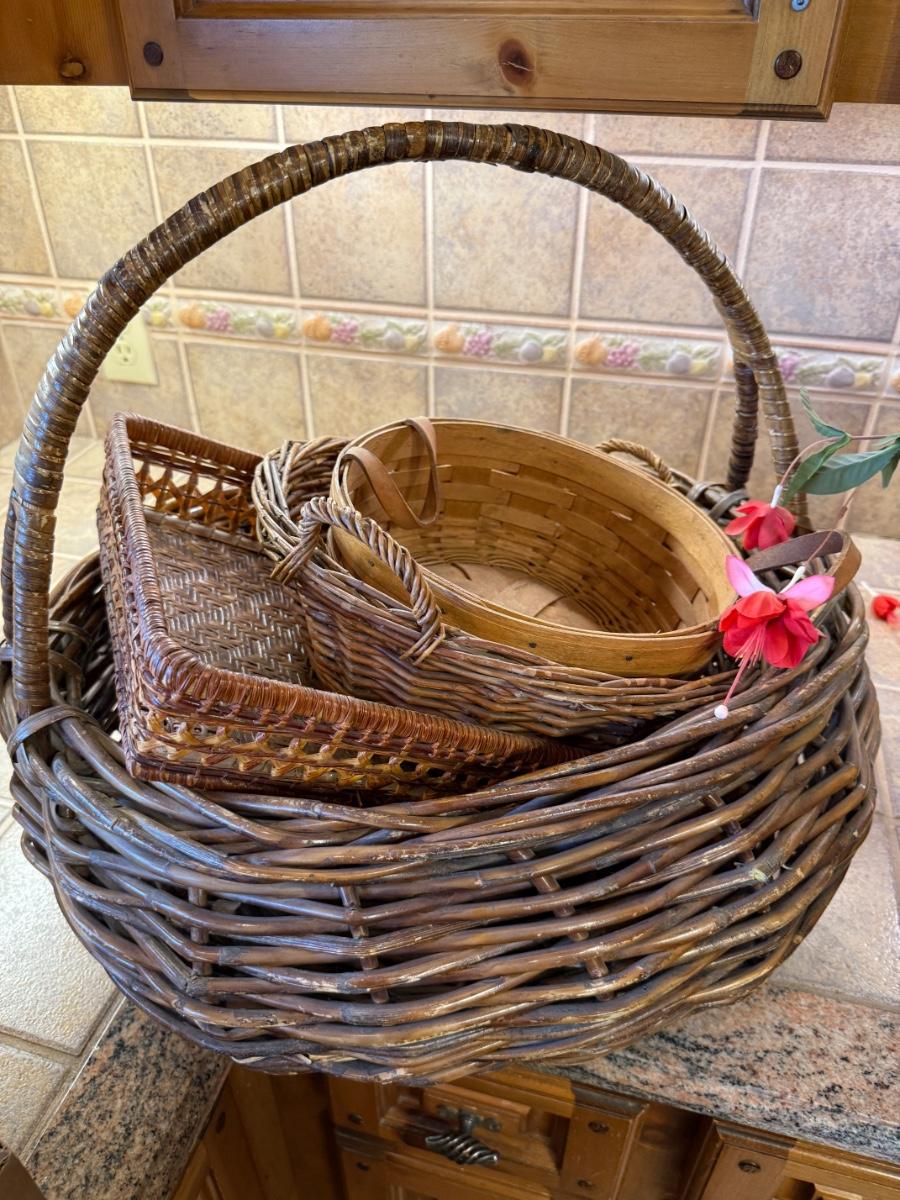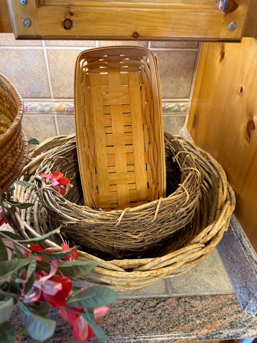 Lot of wicker/woven baskets in various sizes & shapes - think 9 total