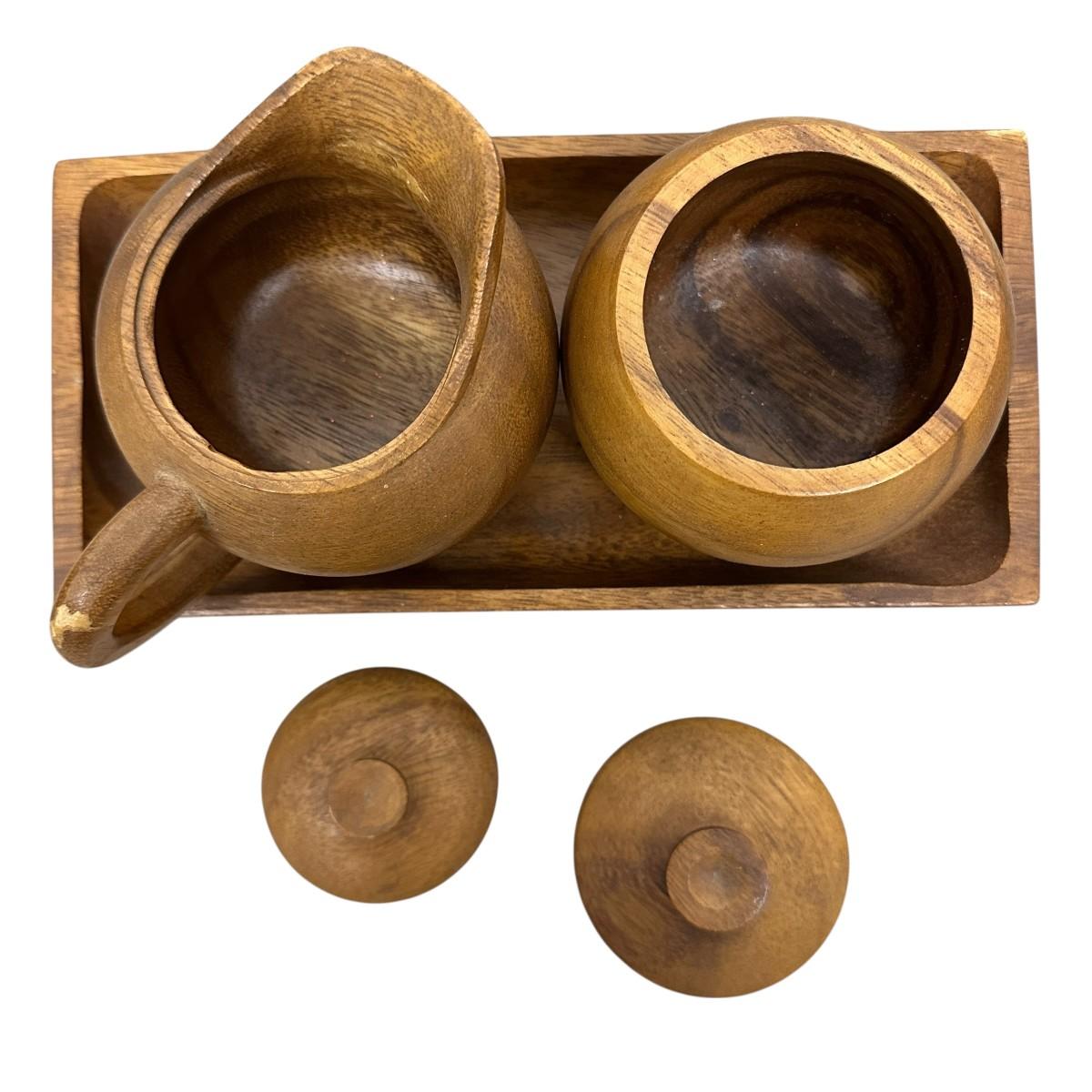 Lot of Wood Decor, Bowls, Cream and Sugar with Tray