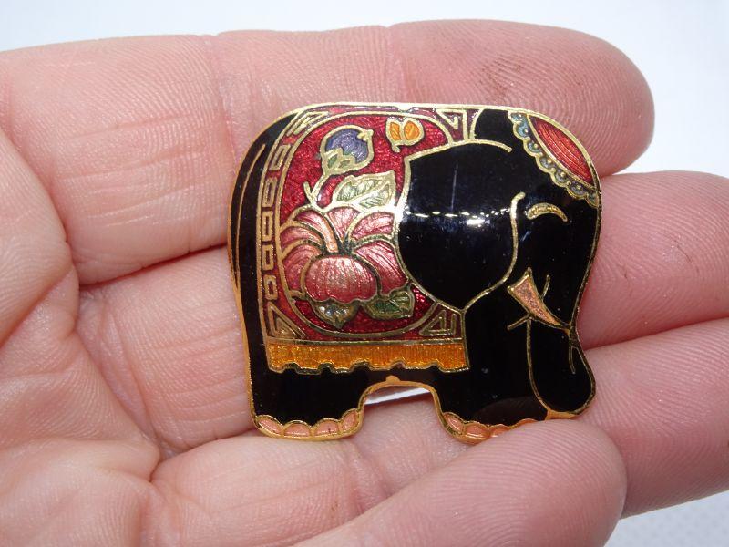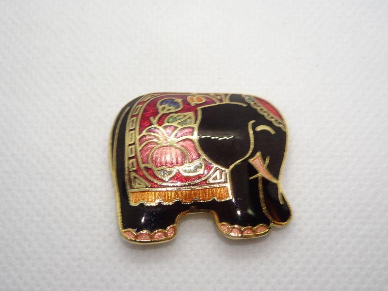 Lucky Elephant Pin, Cloisonné Black Enamel