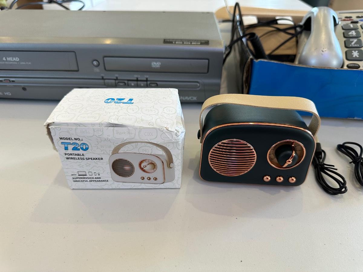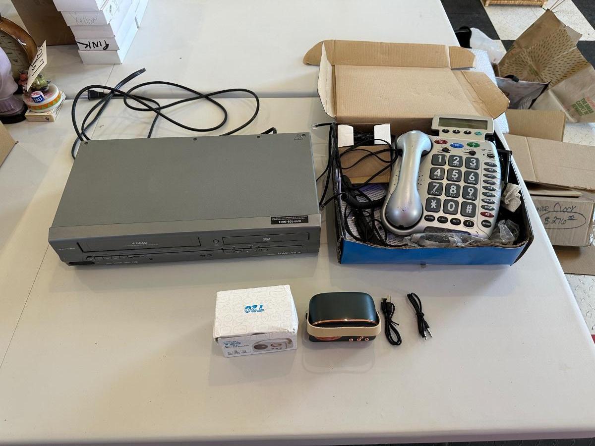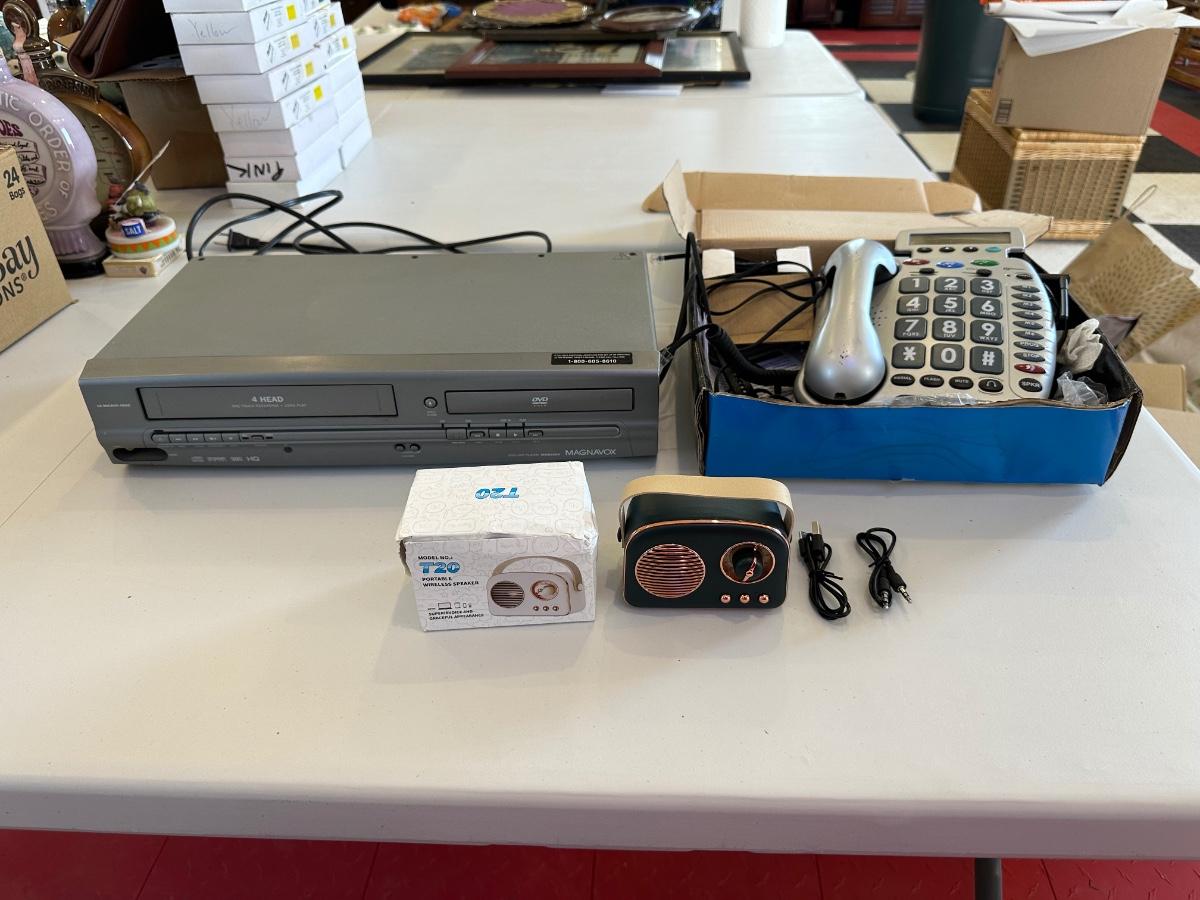 MAGNAVOX COMBO VHS/DVD PLAYER, TELEPHONE AND A SMALL BLUETOOTH RADIO