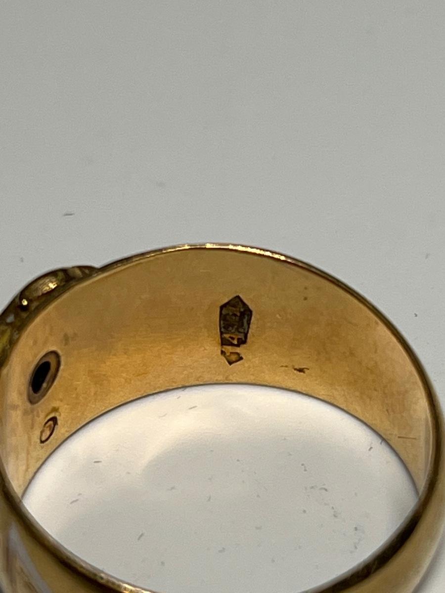 Just verified it is 14k gold Has a marking inside but incredibly small and unable to read. Has signs of wear.