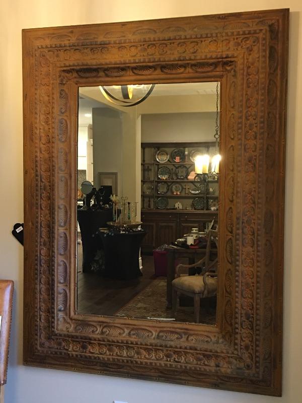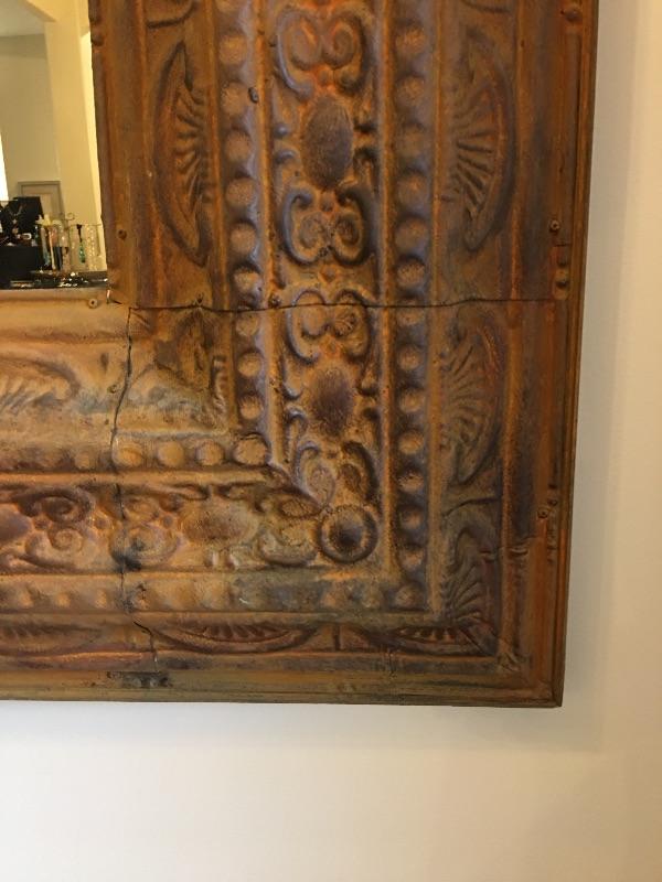 Massive Antiqued Metal Tin Hanging Wall Mirror. Item# 67