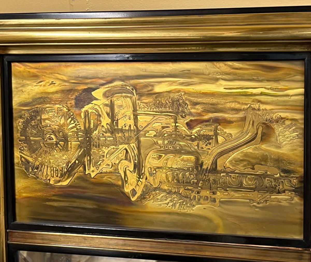 Bernhard Rohne Mastercraft Acid Etched Brass Tall Wall Mirror, likely from the 1970's Mid-century modern Hollywood Regency Style Mirror. 19.75"x57"