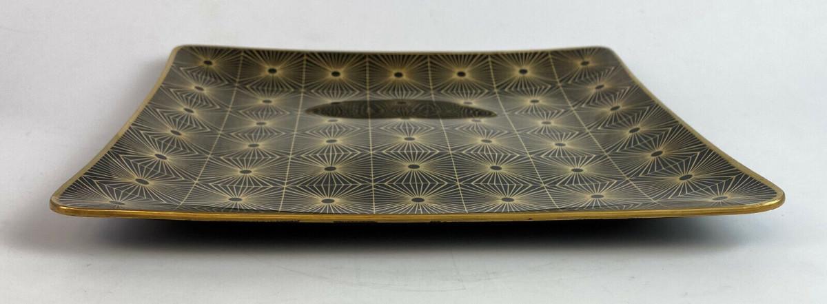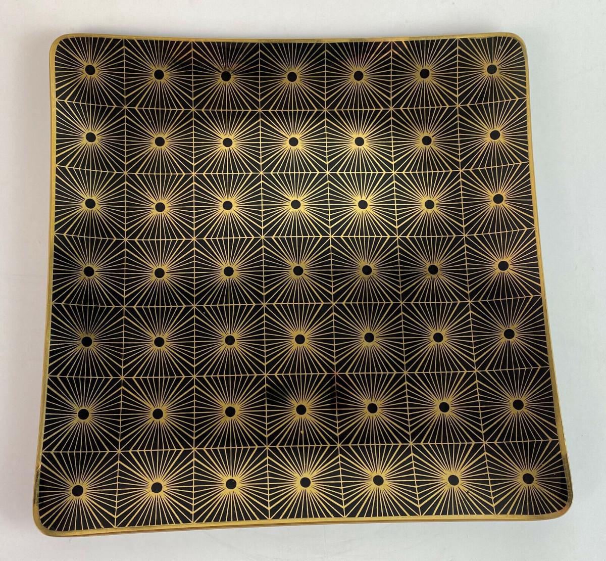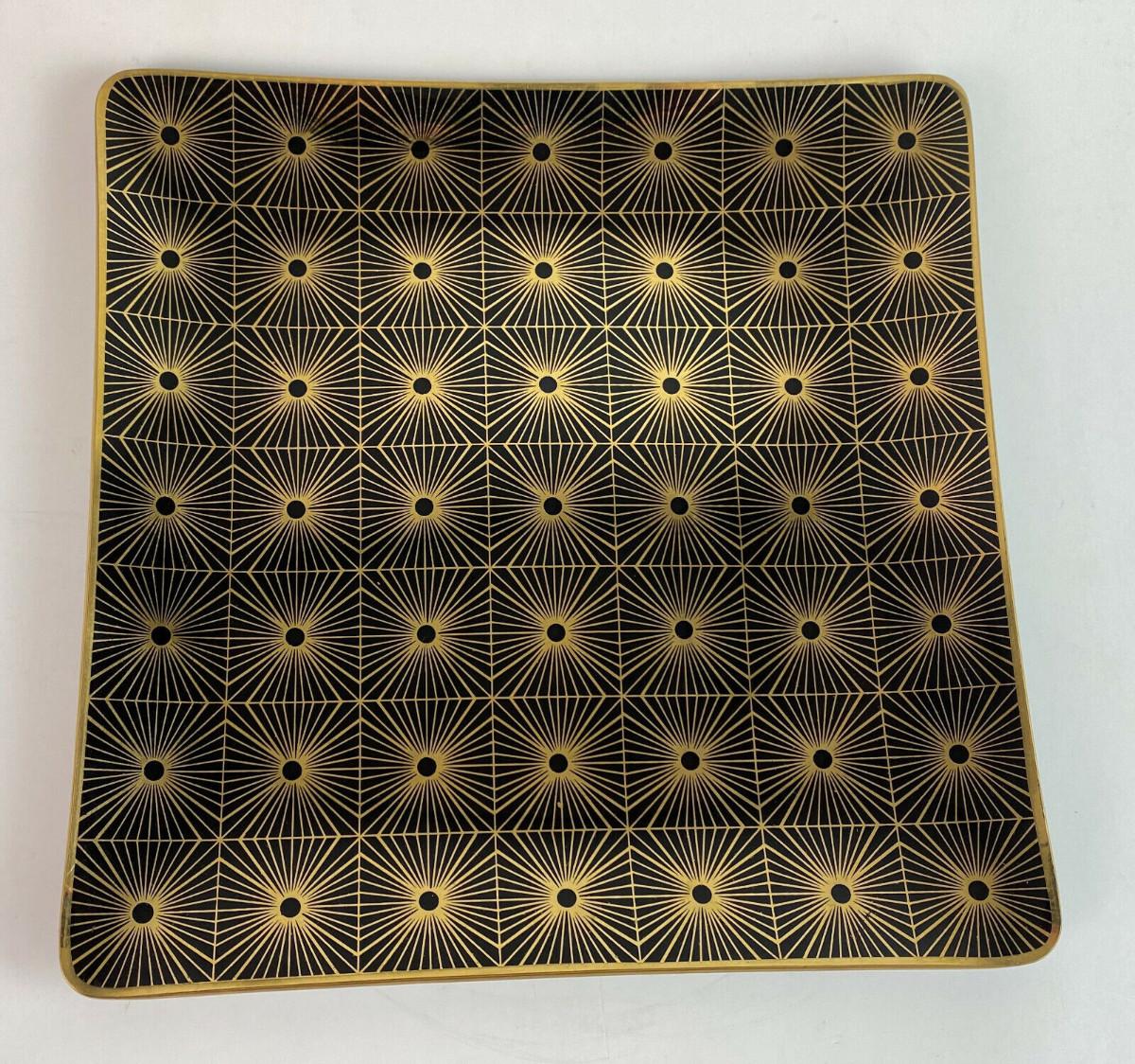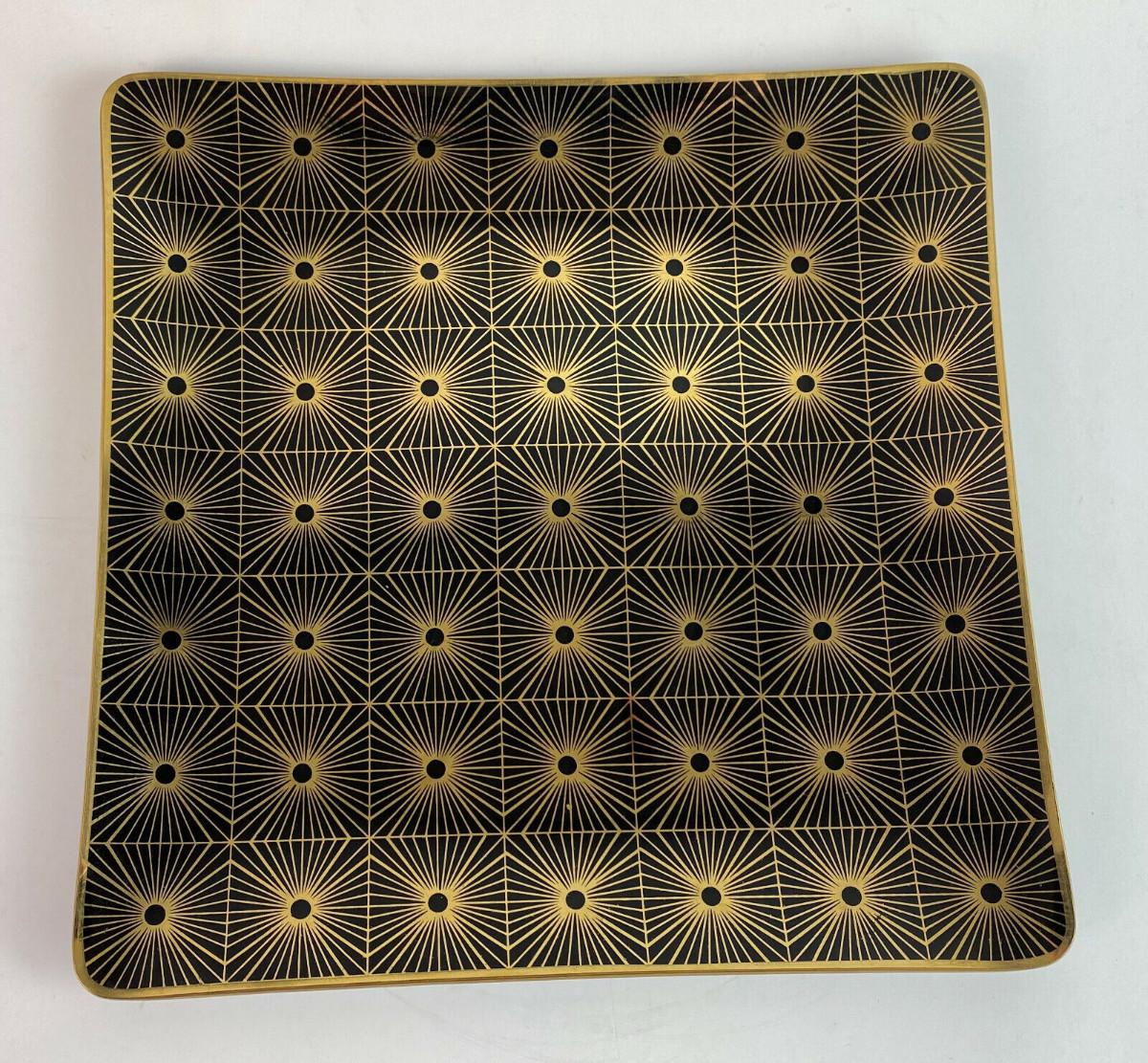 Here is a 10 x 10" square gold geomtric accent tray...Mid Century Modern design...Unknown maker..Very slight use wear.