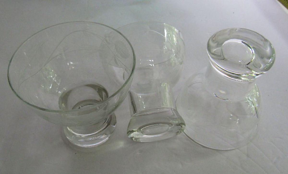 Nice shape. The clear ones have a nice etching. Shipping is available at shipping cost plus $5.00 handling fee on one box, $10.00 handling fee on two boxes, $15.00 handling fee on 3 boxes. Helps cover shipping materials and labor cost.