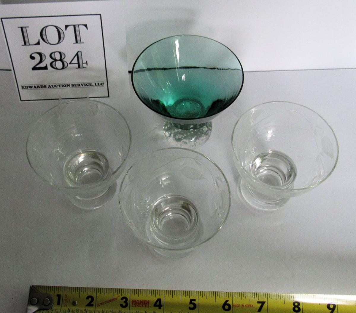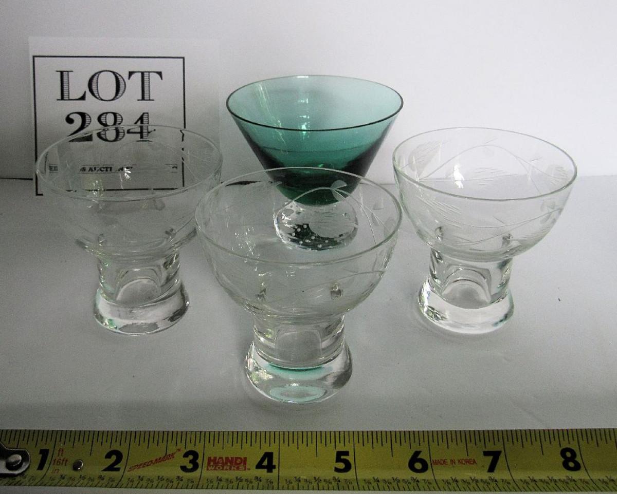 MCM Lot of Cocktail Glasses, Teal and Clear Paperweight Glass