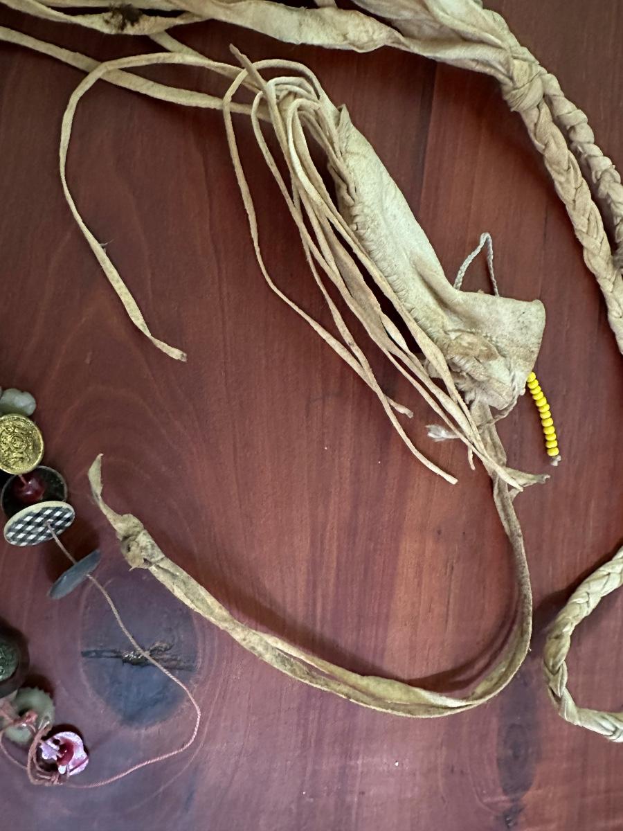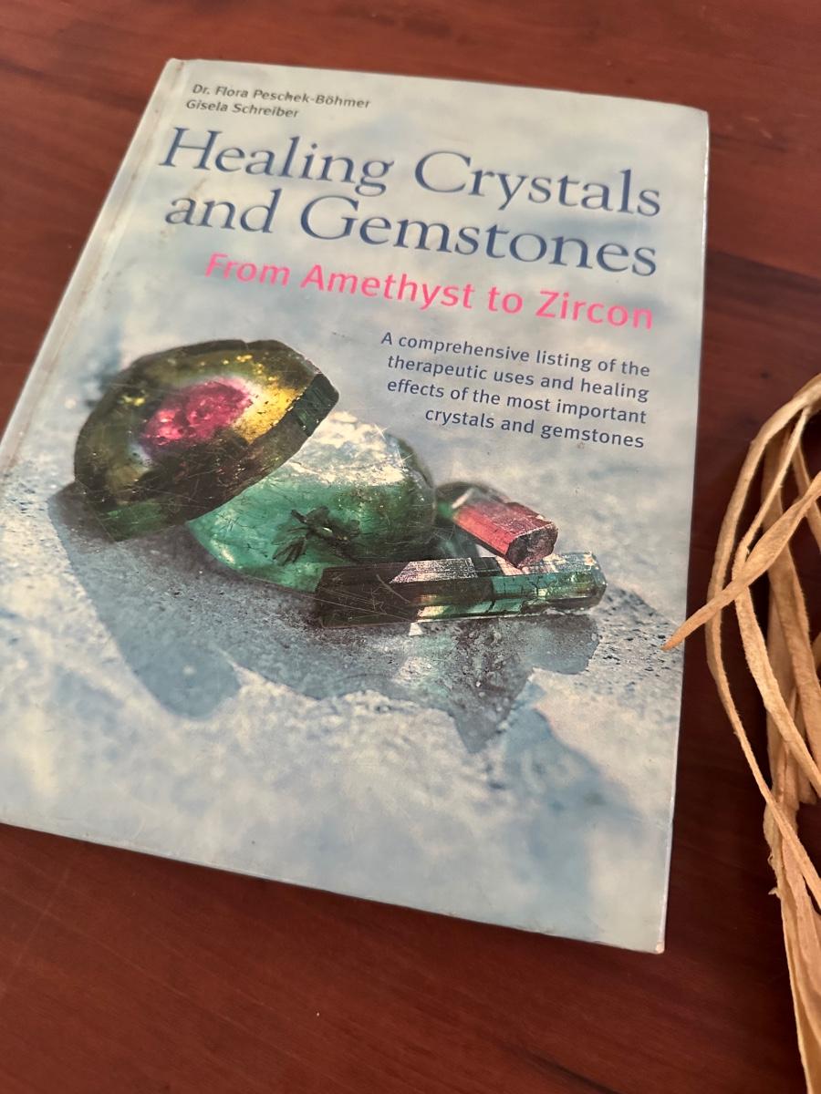 MEDICINE POUCH, VINTAGE BUTTON NECKLACE, HEALING CRYSTALS BOOK, BRAIDED SWEETGRASS