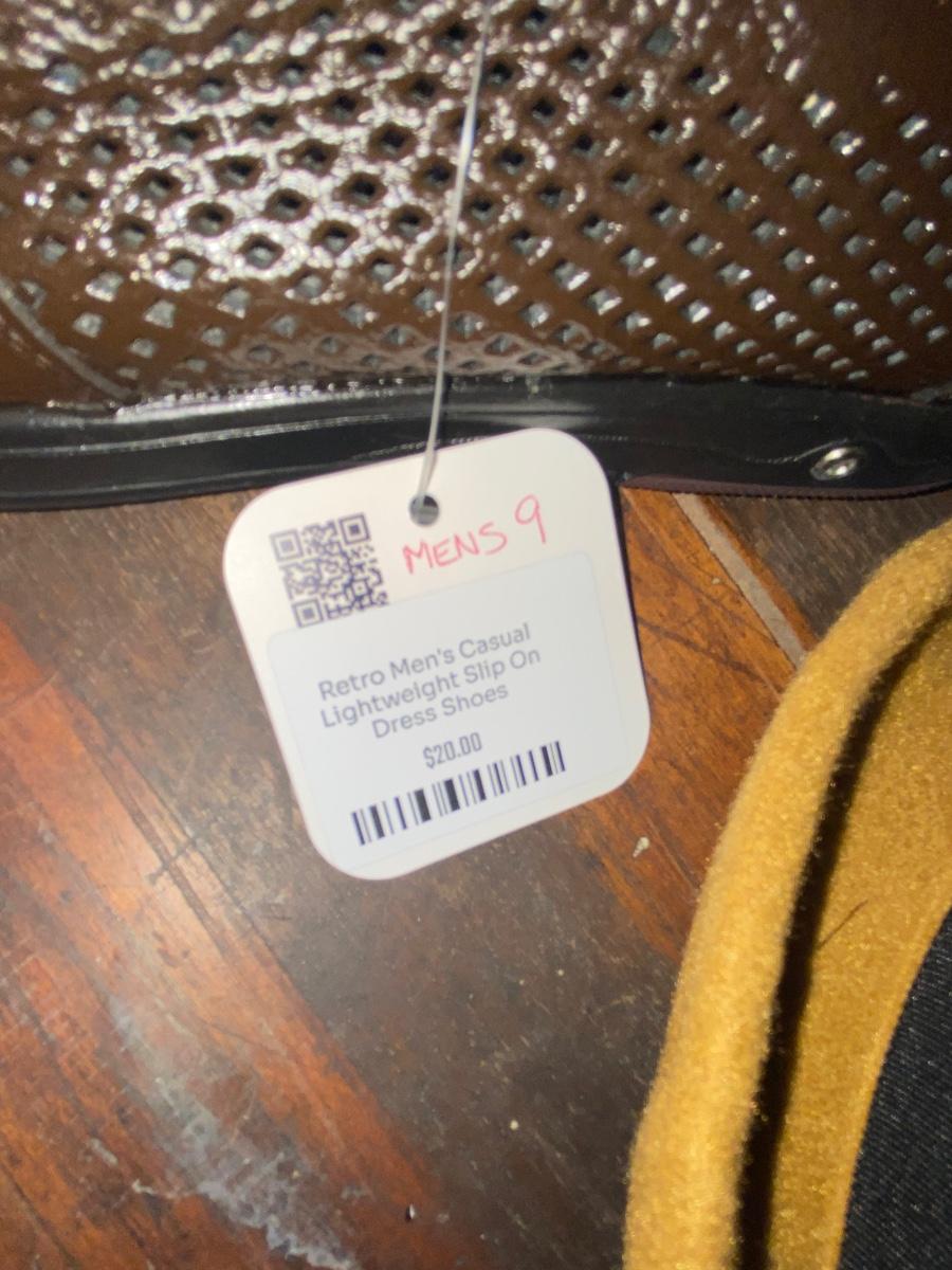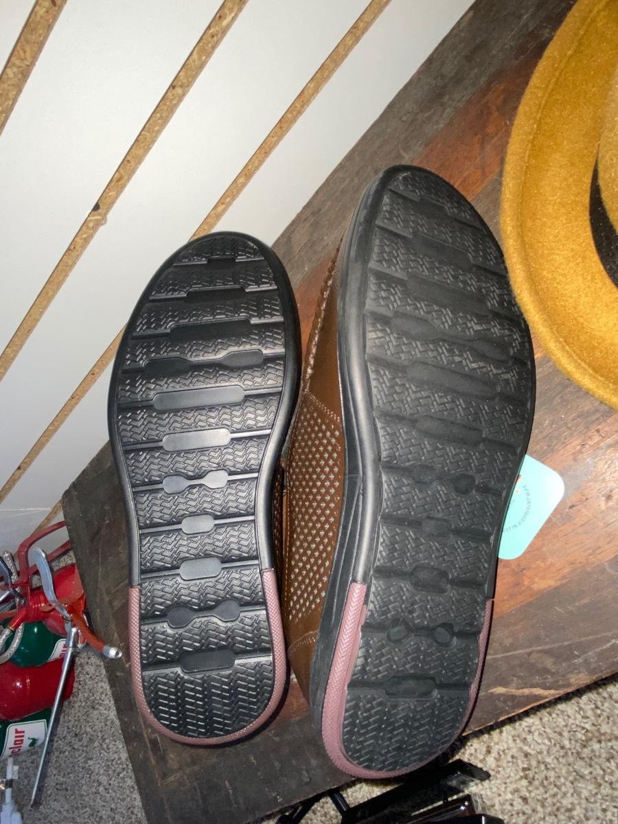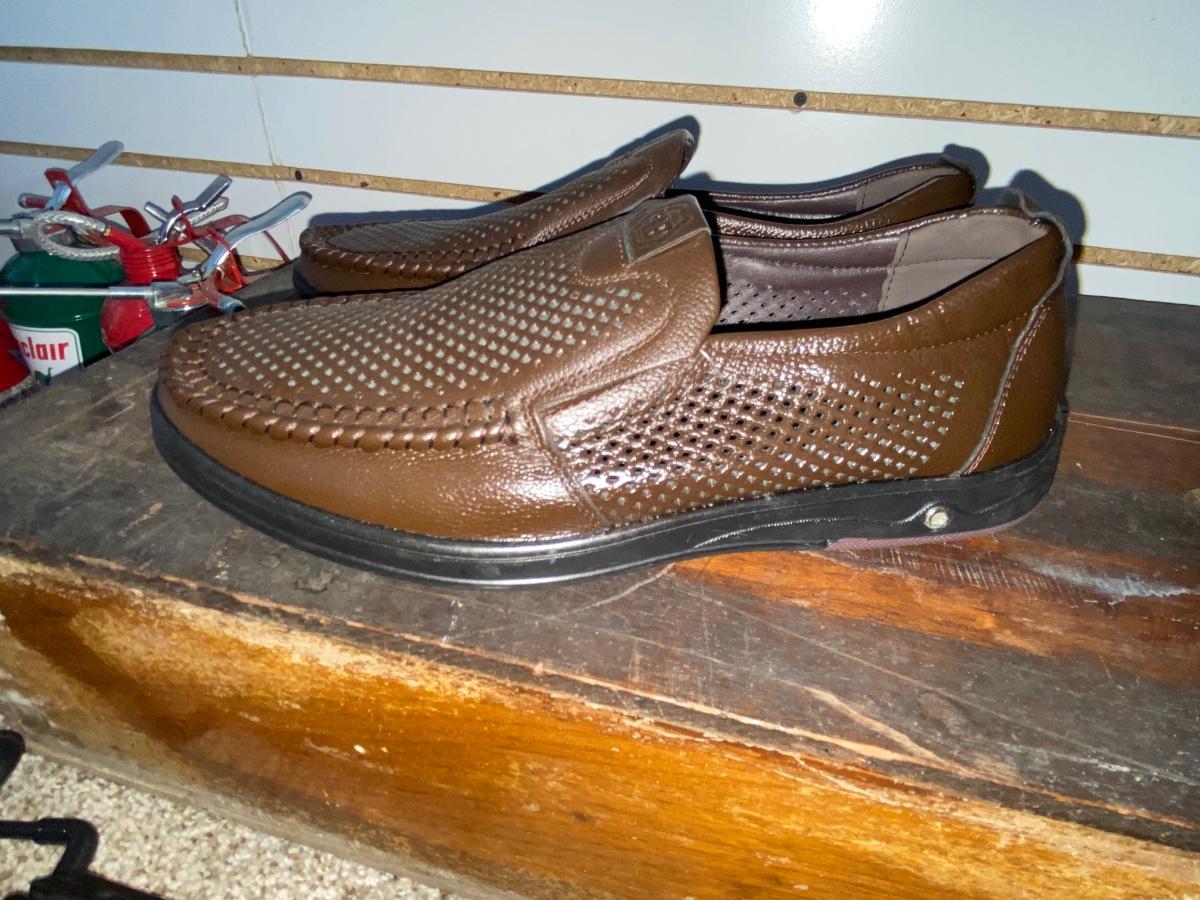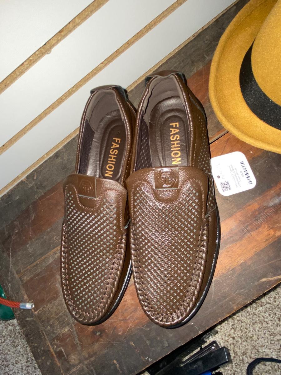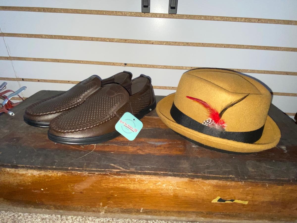 MEN’S CASUAL LIGHTWEIGHT SLIP ON DRESS SHOES SIZE 9 AND CLASSIC FEDORA HAT WITH FEATHER