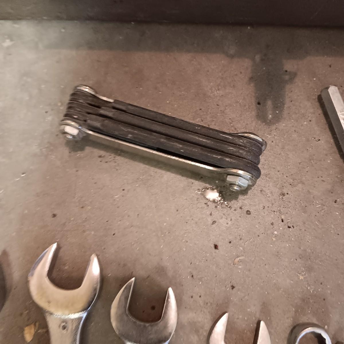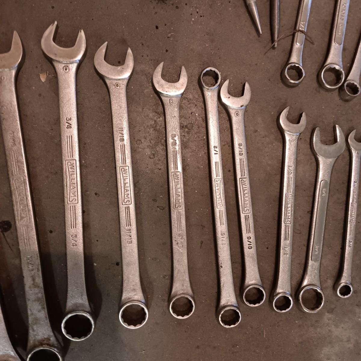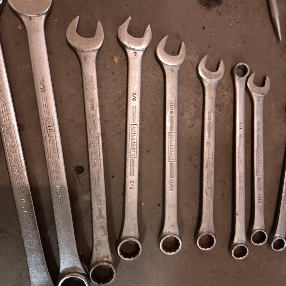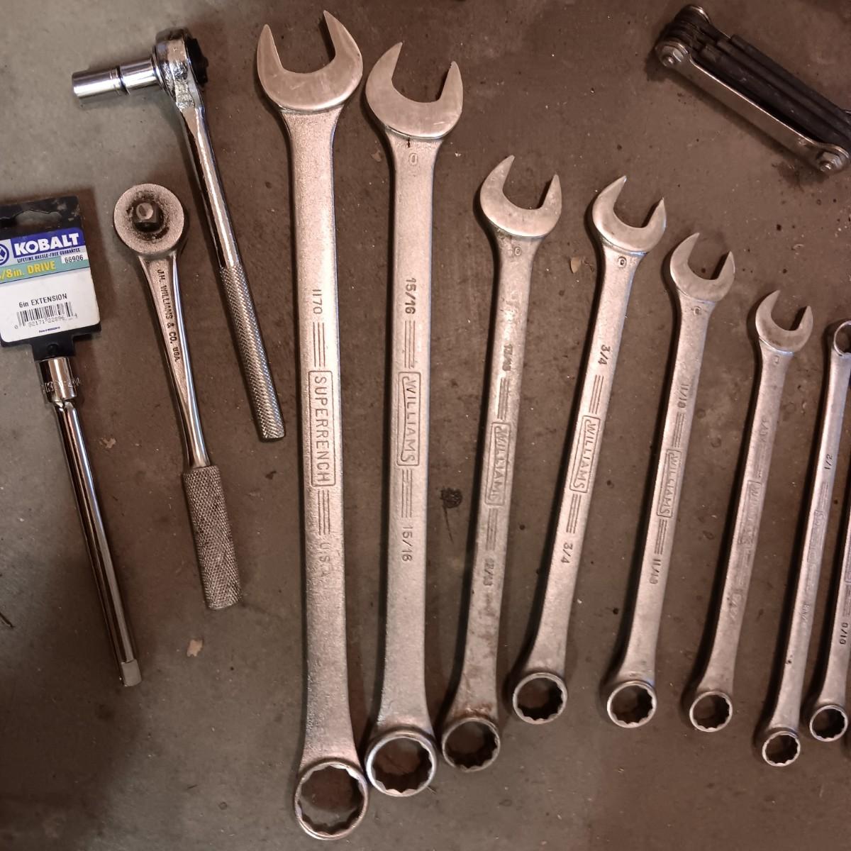 METAL TOOL BOX WITH SHELF AND A SET OF COMBINATION WRENCHES AND MORE