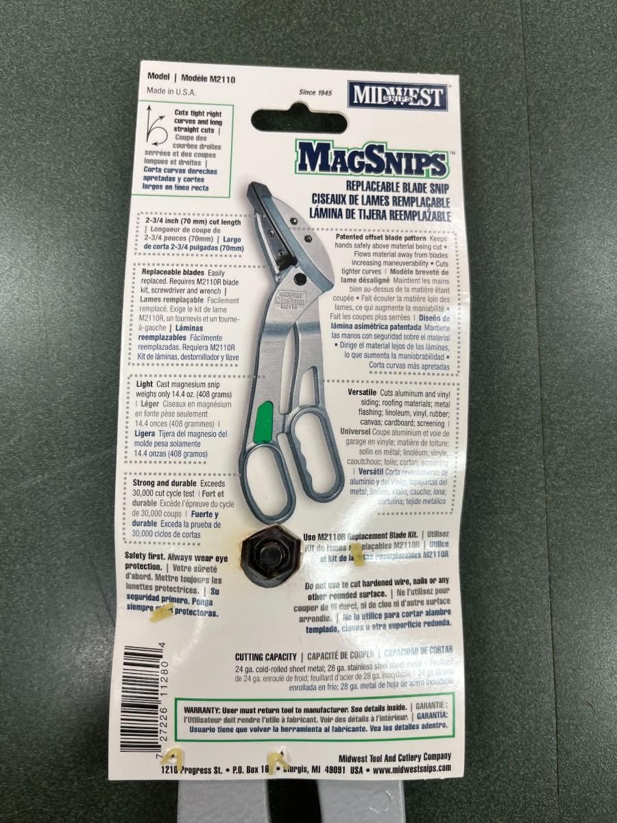Midwest Angled Snips MagSnips Model M2110 New. Replaceable Blade Snips Made in the USA