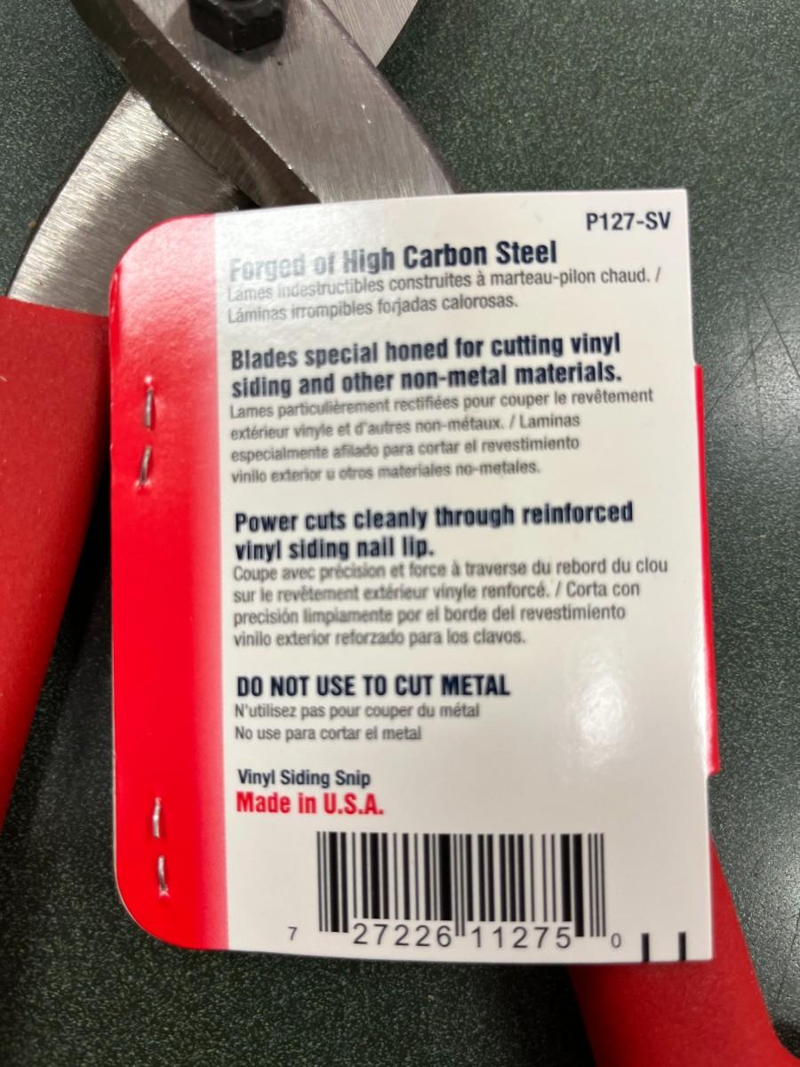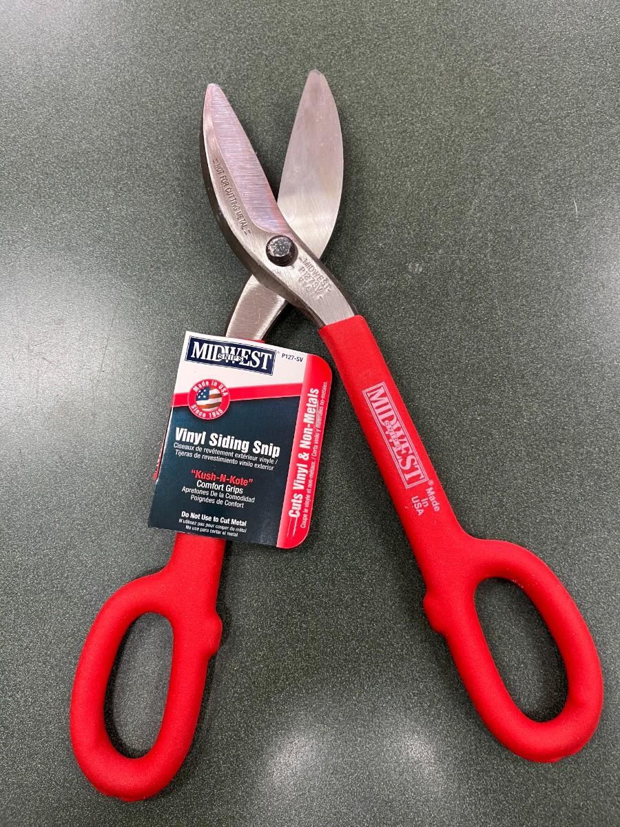 Midwest Snips Vinyl Siding Snips Model P127-SV Cuts vinyl and non metals. Cushion grip handles. Made in the USA. NEW