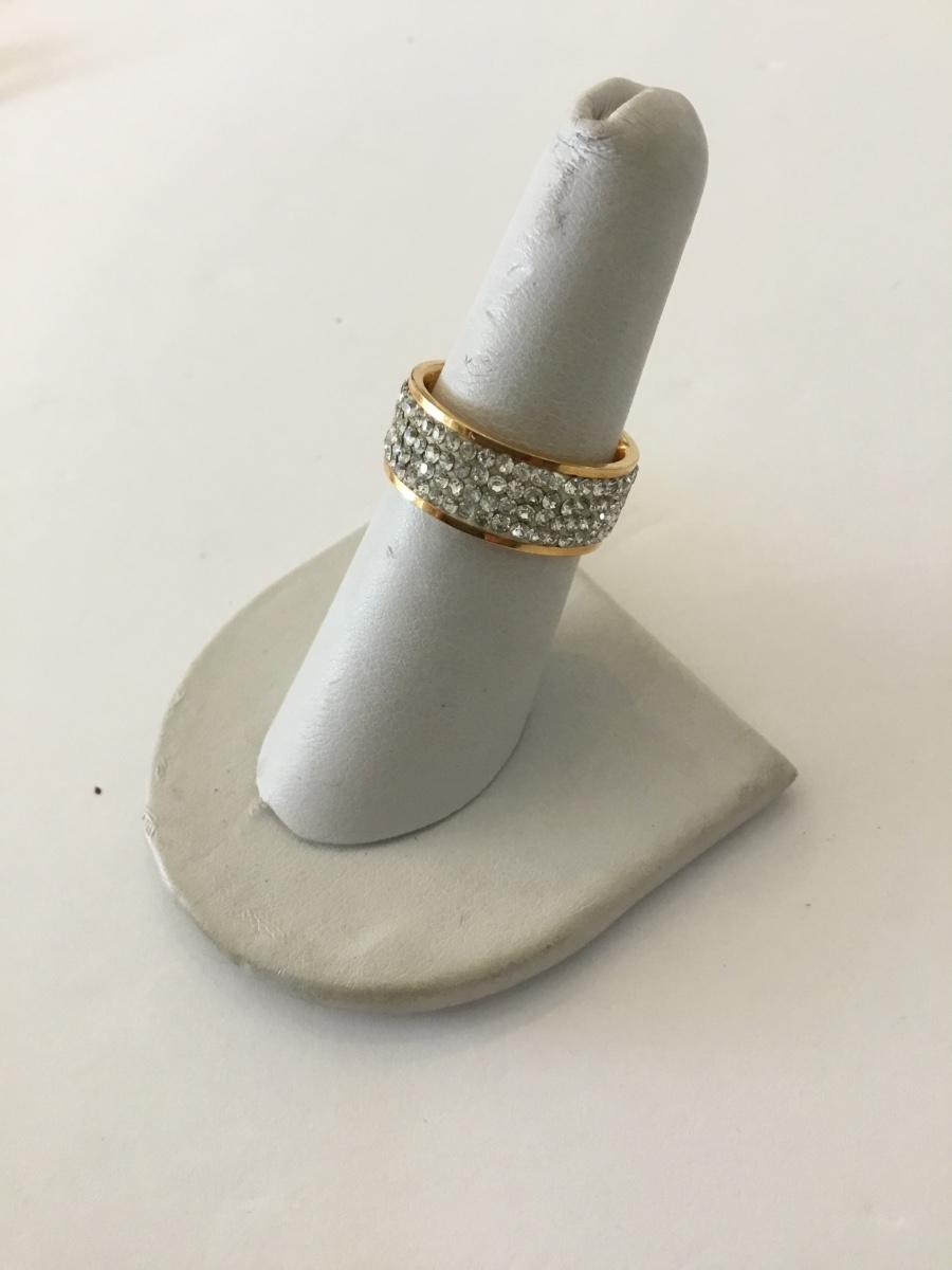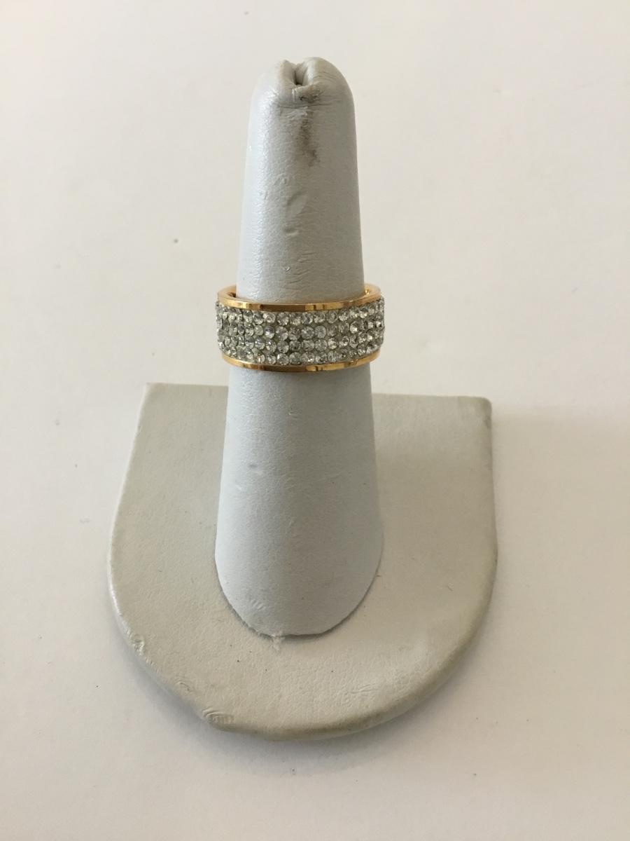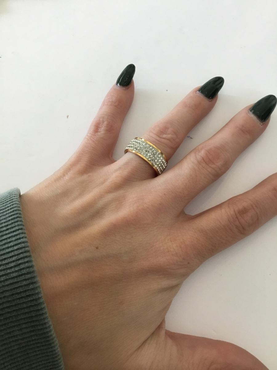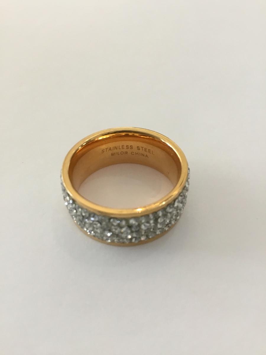 Milor stainless steel rose, gold pave, crystal band ring