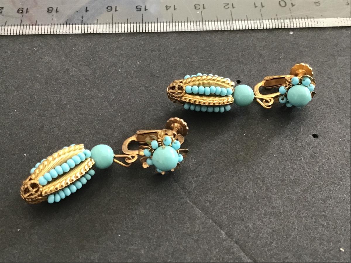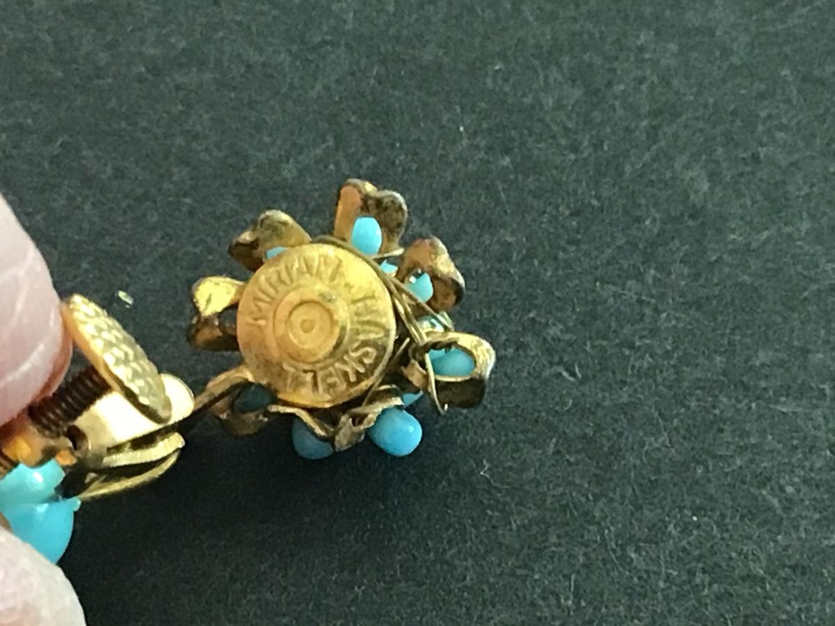 Miriam Haskell Turquoise And Gold Tone Clip on Earrings