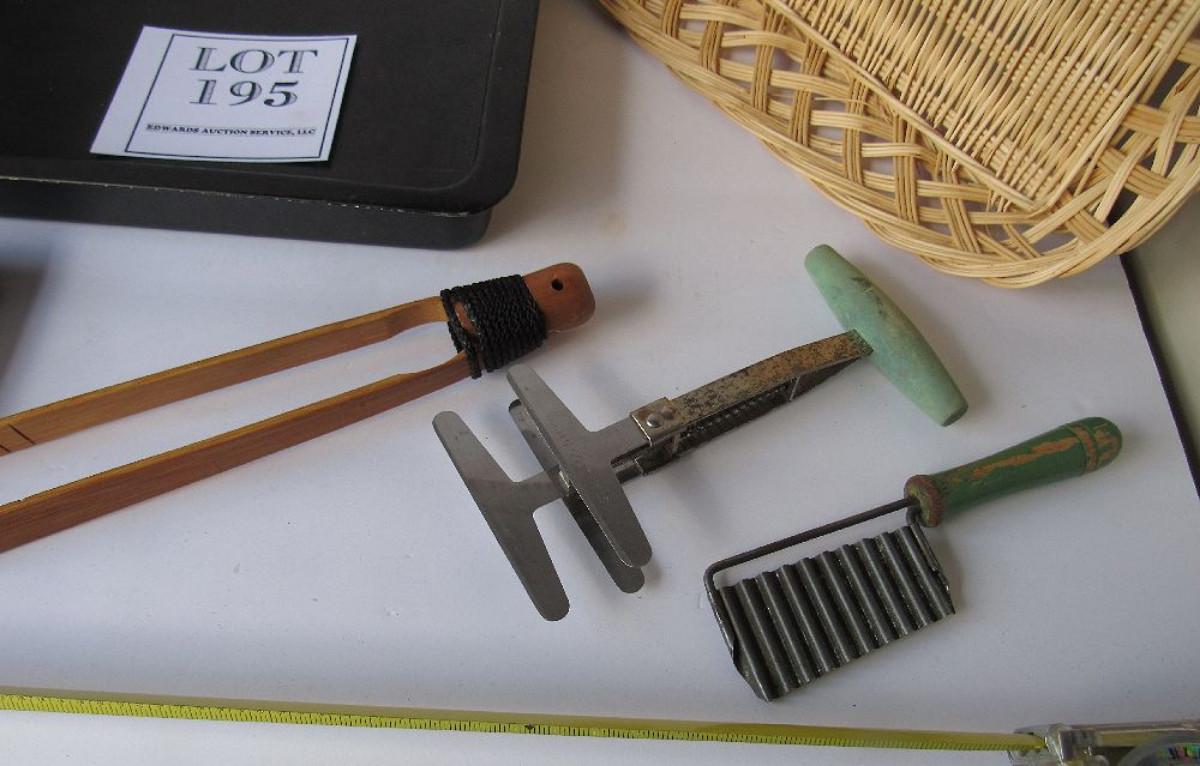 Misc Kitchen Stuff, Old Utensils, Basket, Can Sleeves