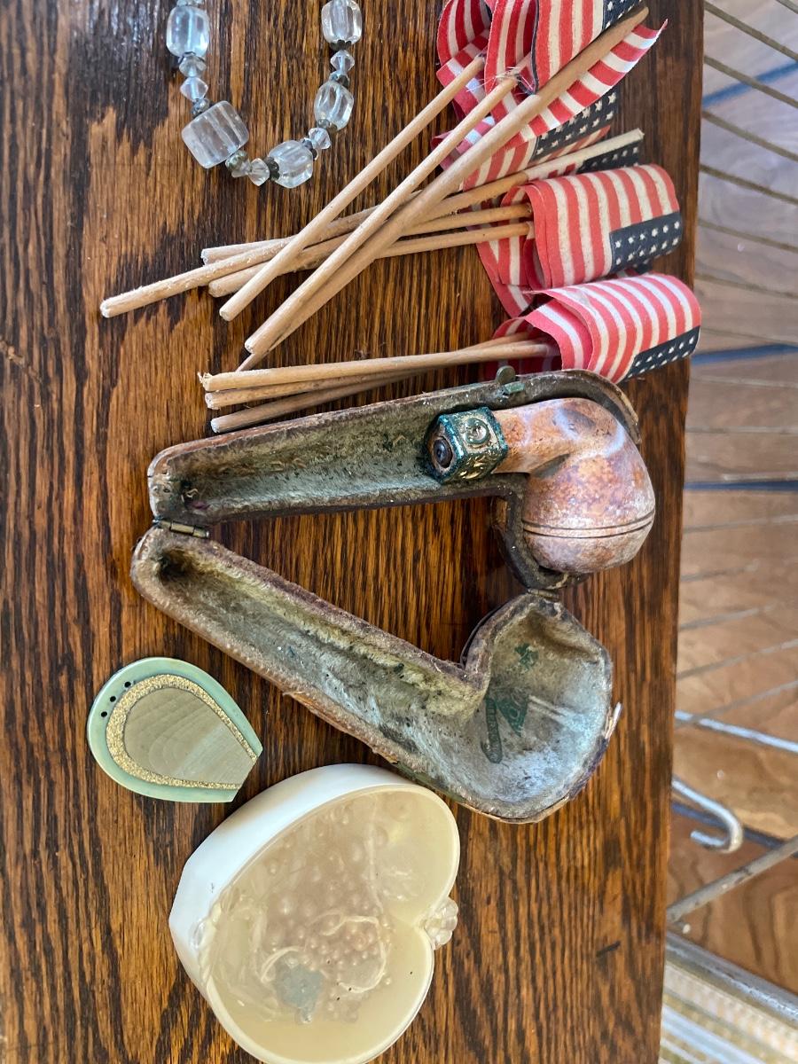 Misc vintage jewelry and pipe