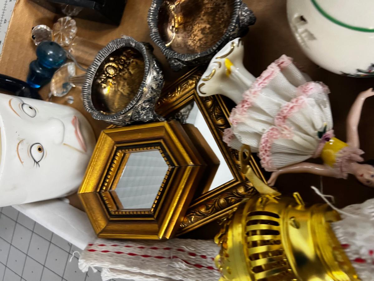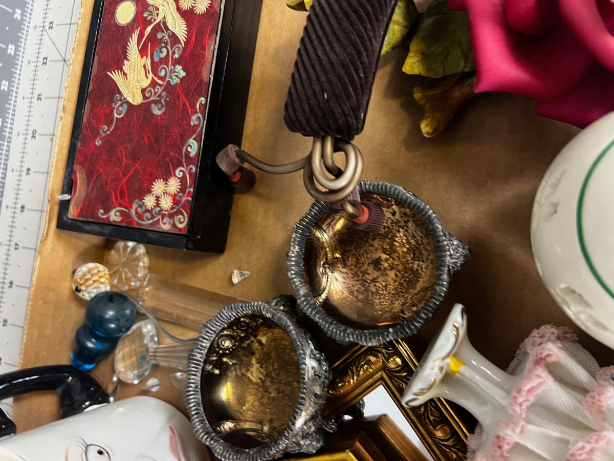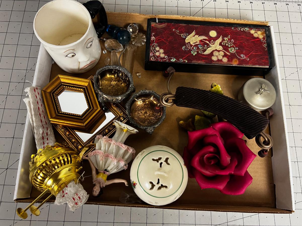 Mixed Lot of Decorative Items: Ceramic Rose, Asian Box, Mirrors