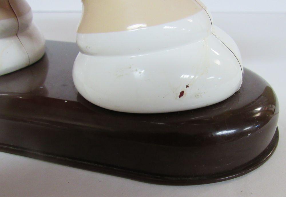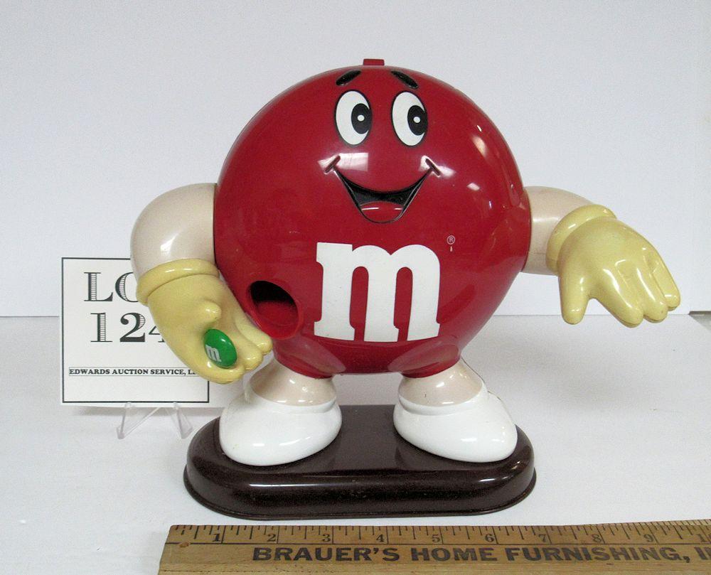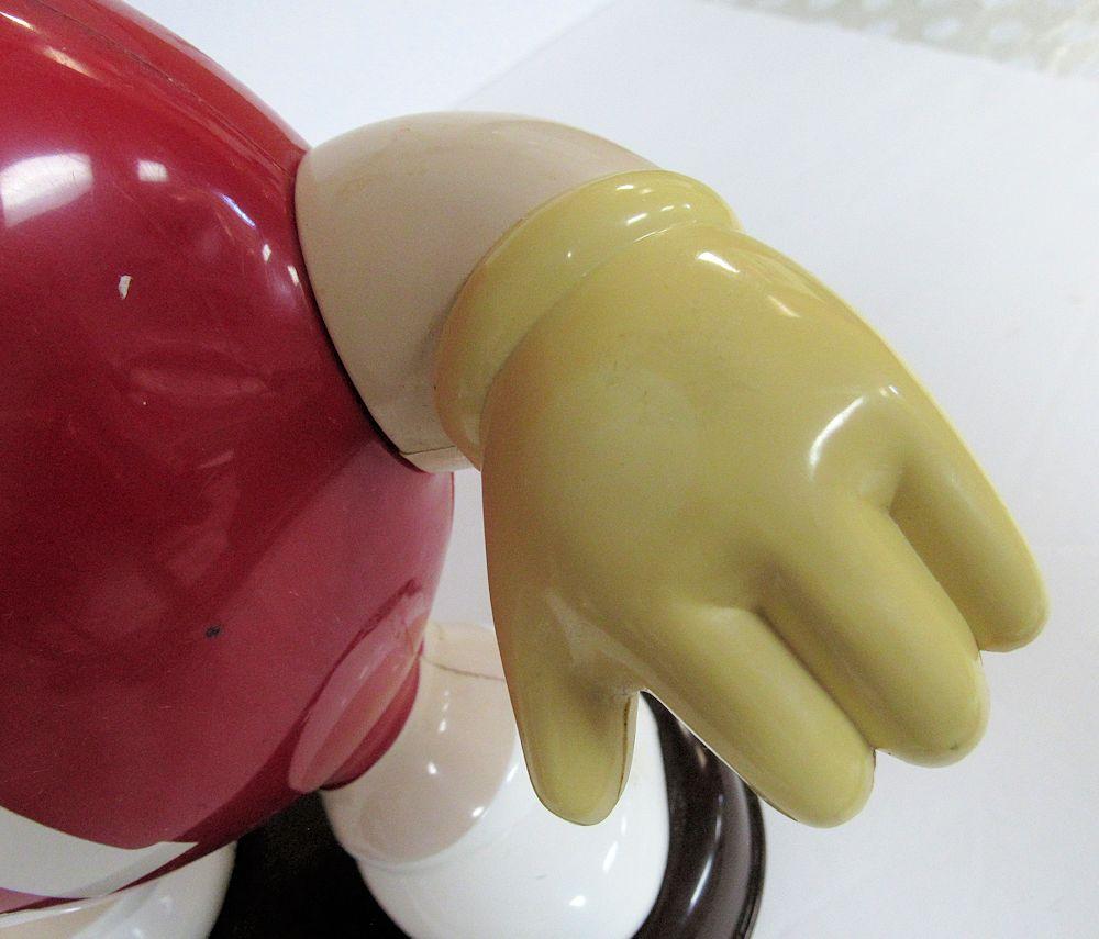 Some minor wear as seen in magnified photos. We did not try it with candy, but the arm does move the inside section where the candy comes out.