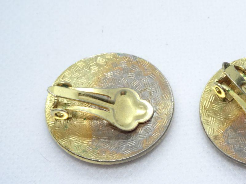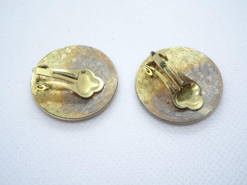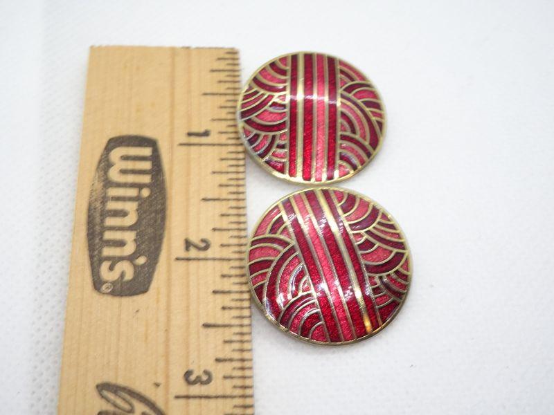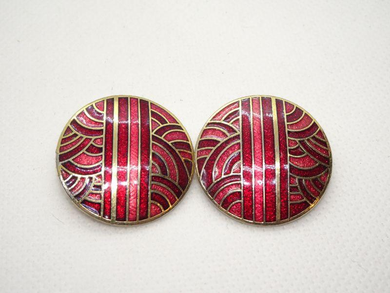 Mod Wavy Red & Gold Tone Cloisonné Clip on Earrings