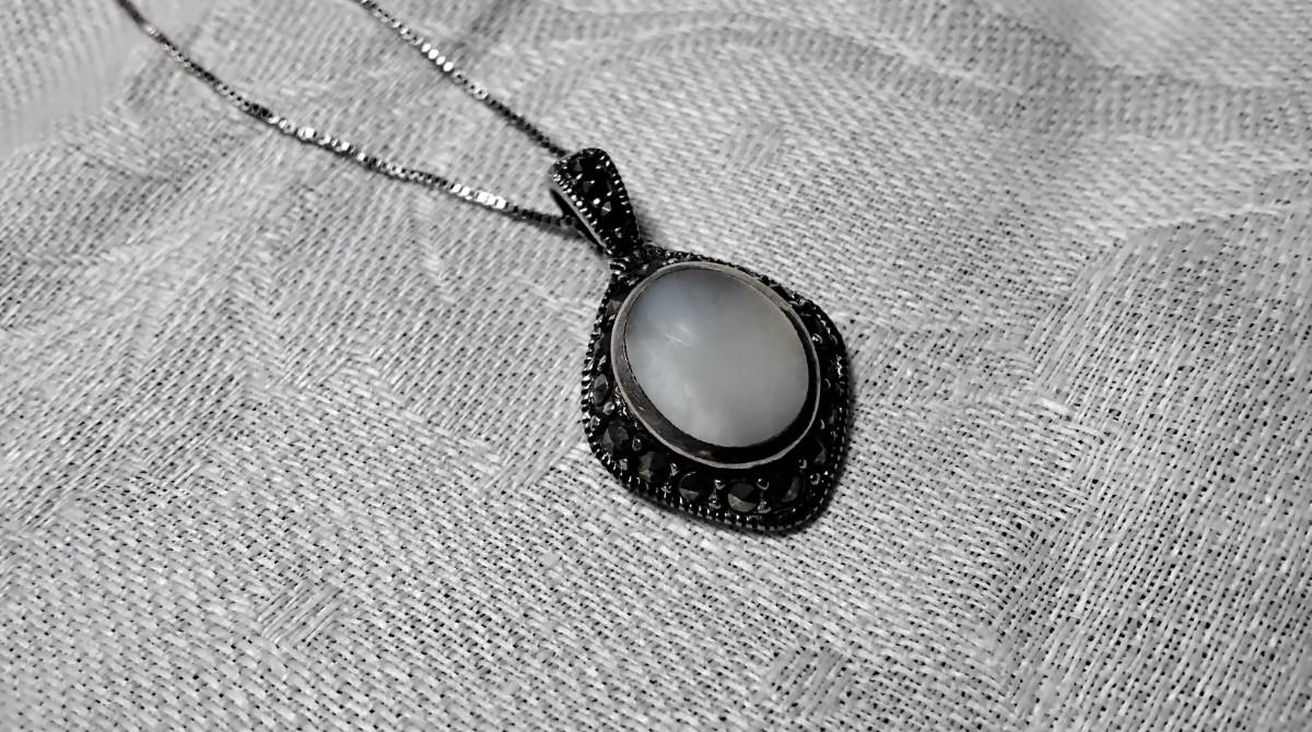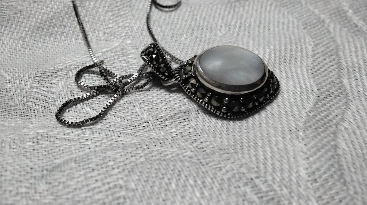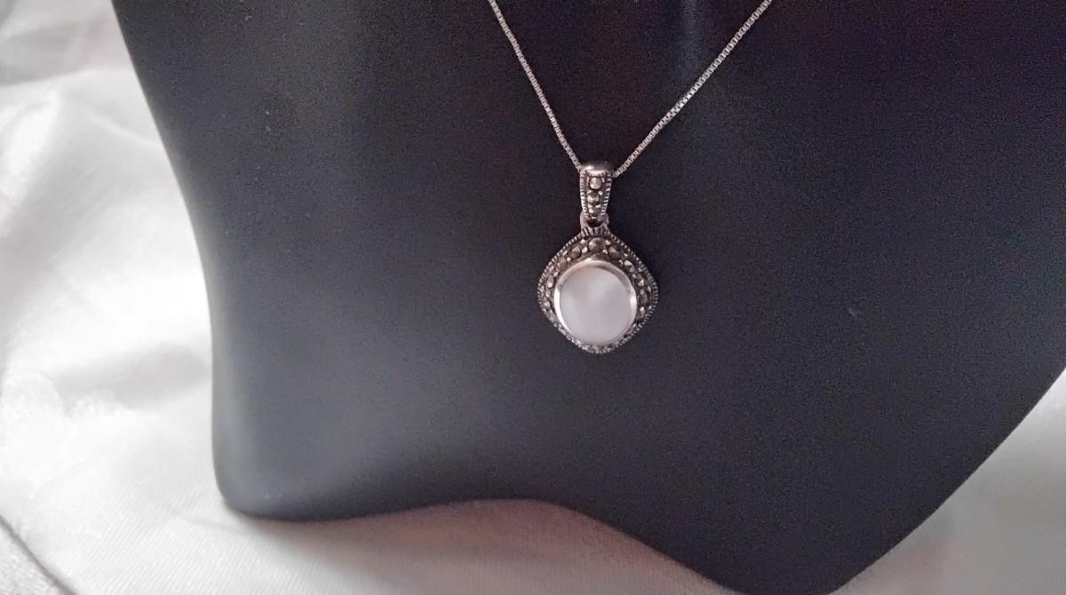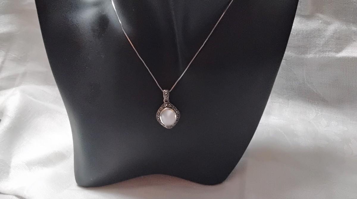 Vintage Mother Of Pearl And Marcasites 18" 925 Necklace