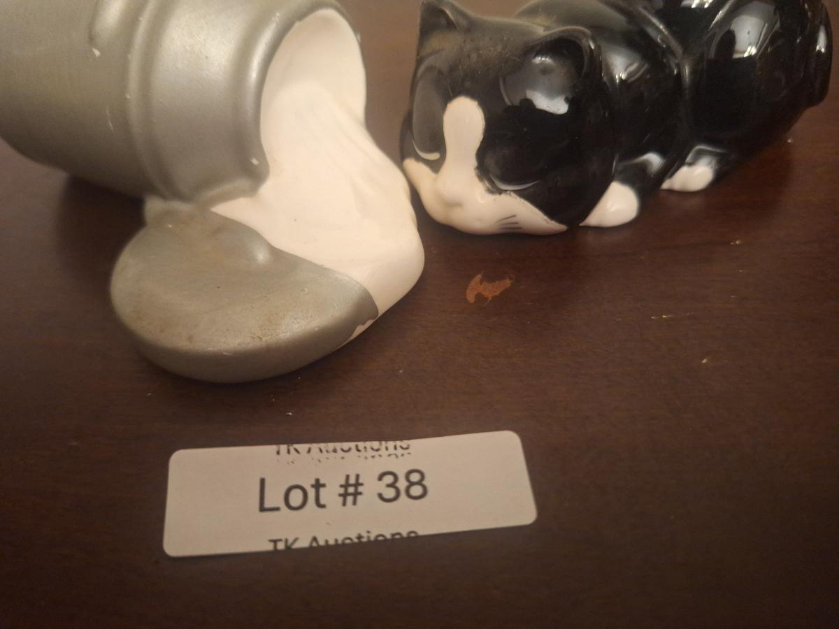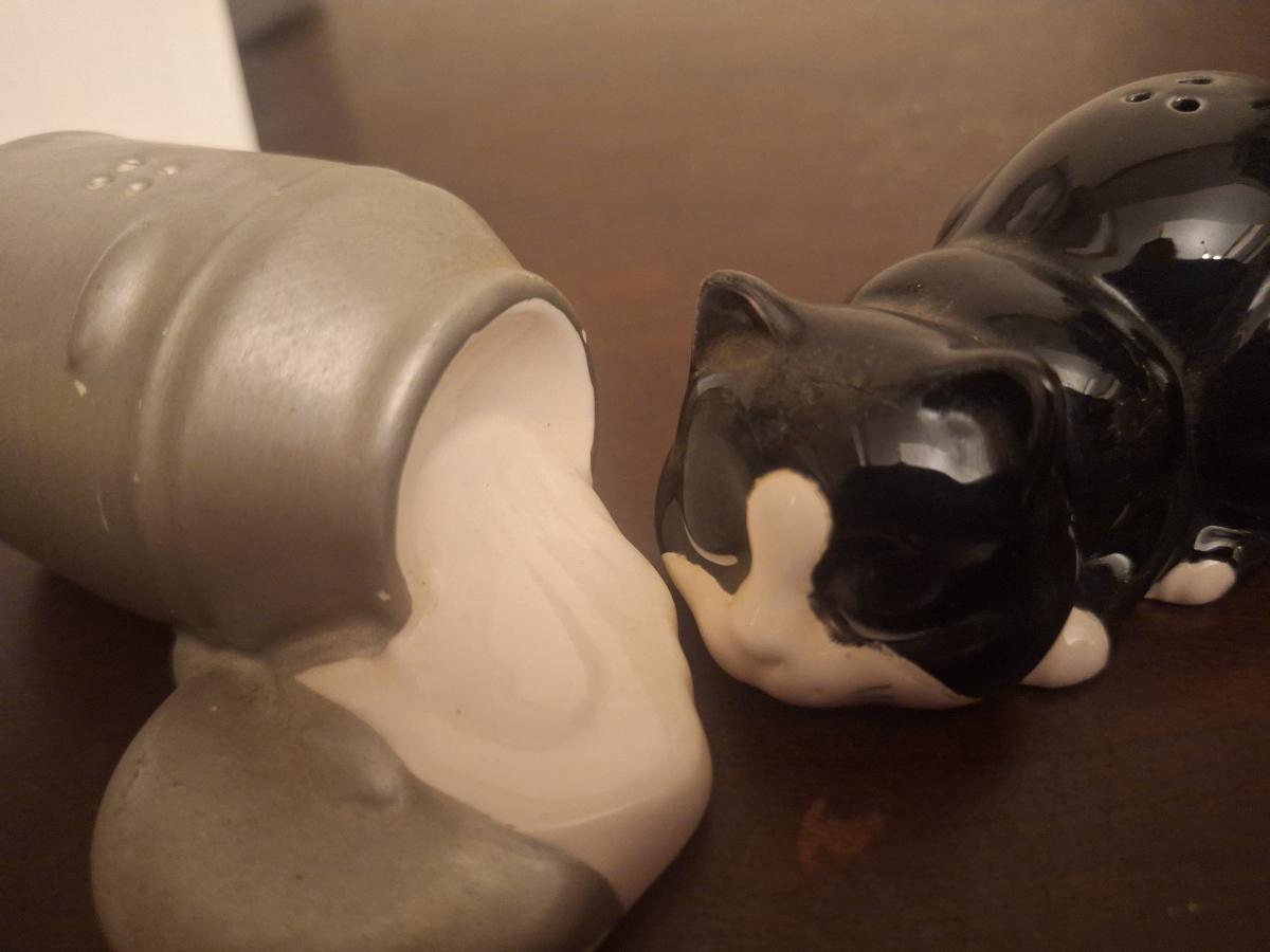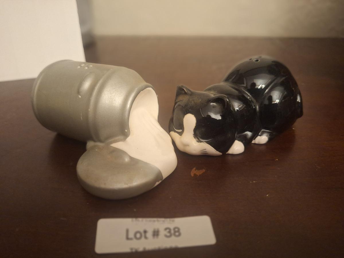 Cat and spilled milk salt and pepper shaker