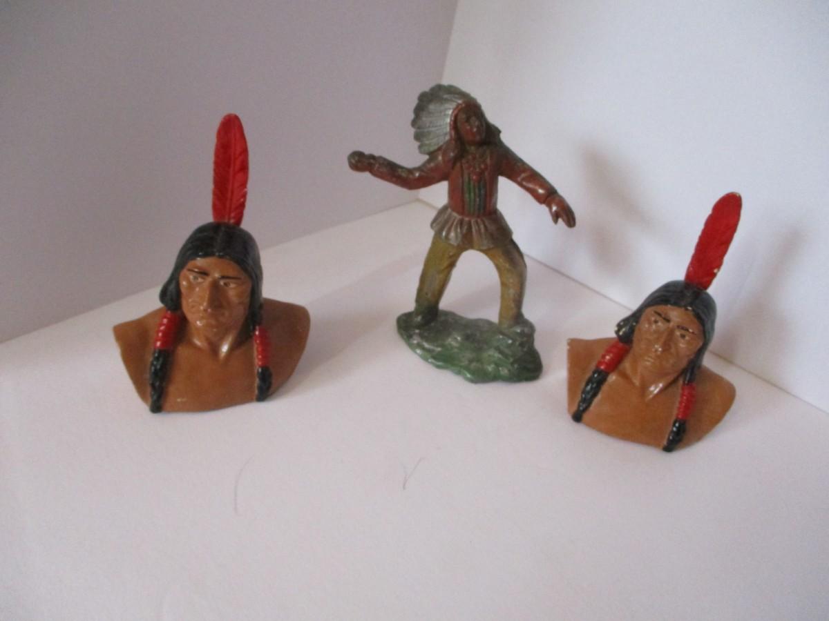Native American Cast Iron Figure Made In Japan & National Shawmut Bank Figural Paperweight